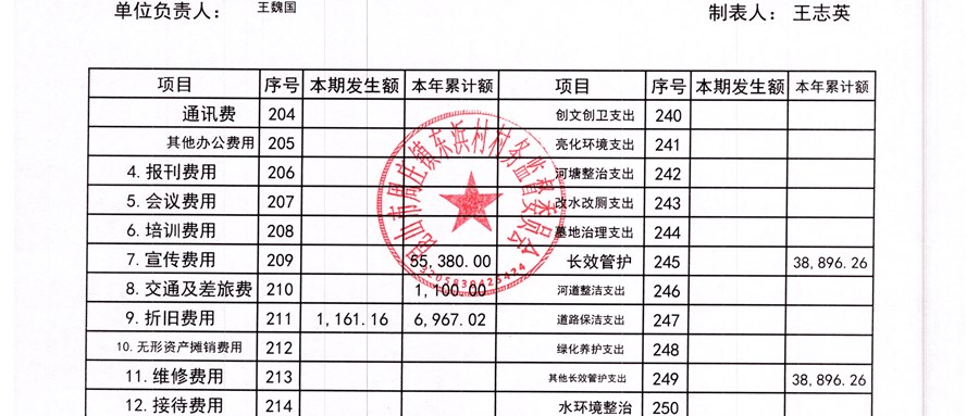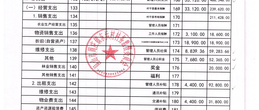 东浜村村委会2025年第二季度财务公开(6月份)