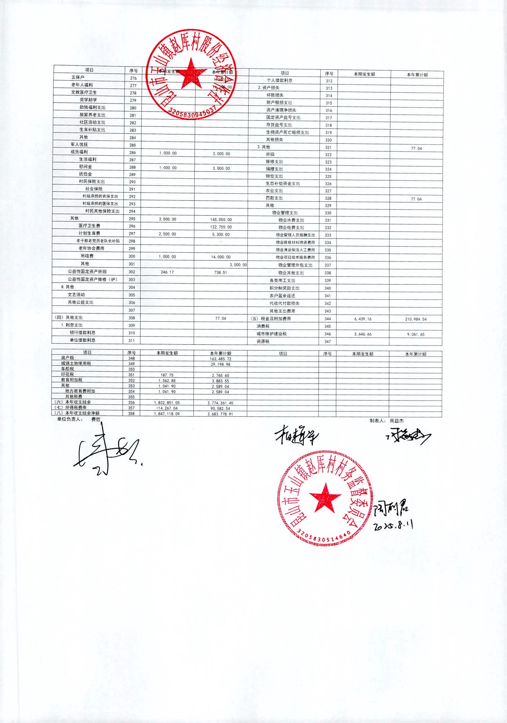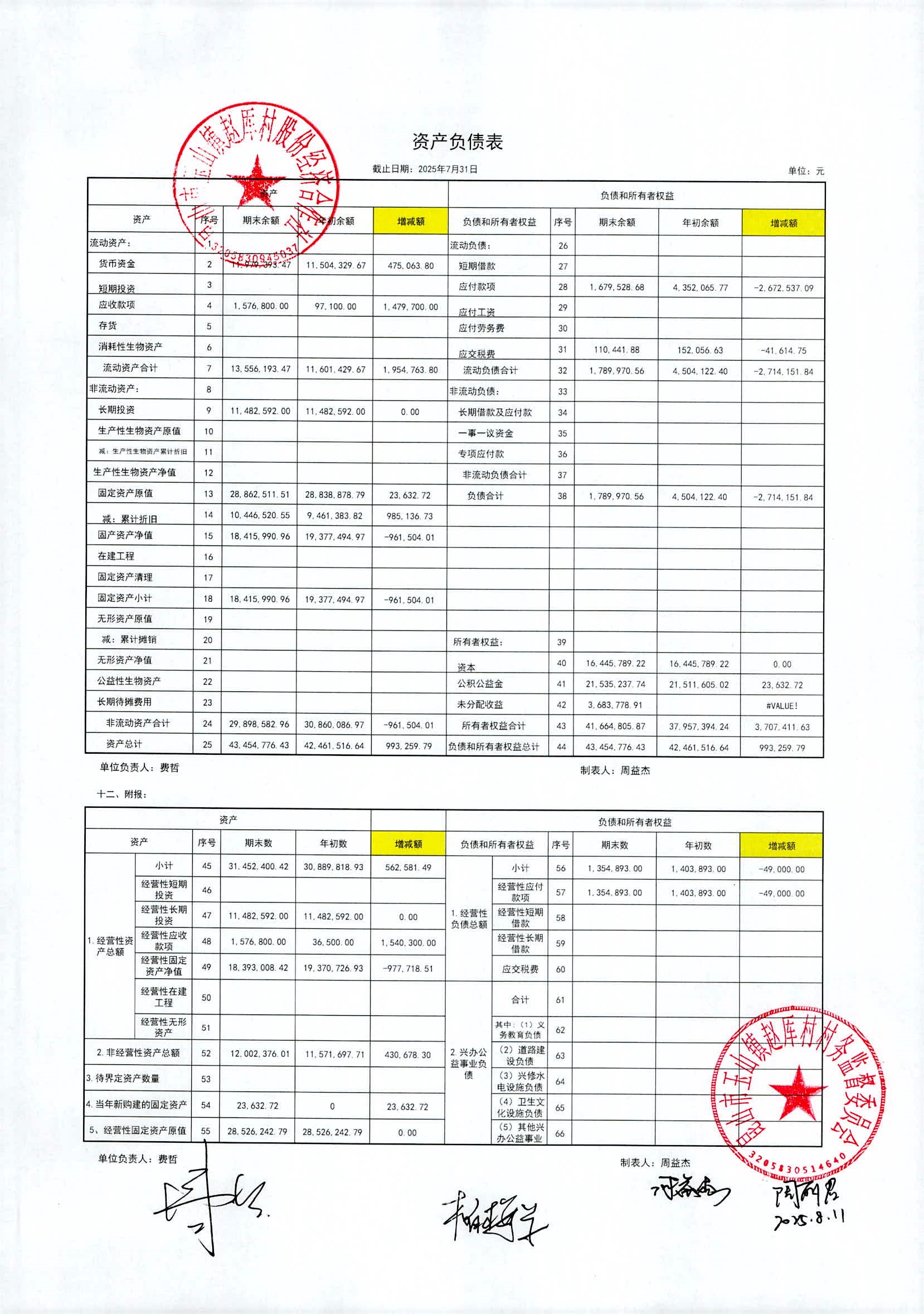 2025年赵厍村股份经济合作社8月财务公开及公示照片