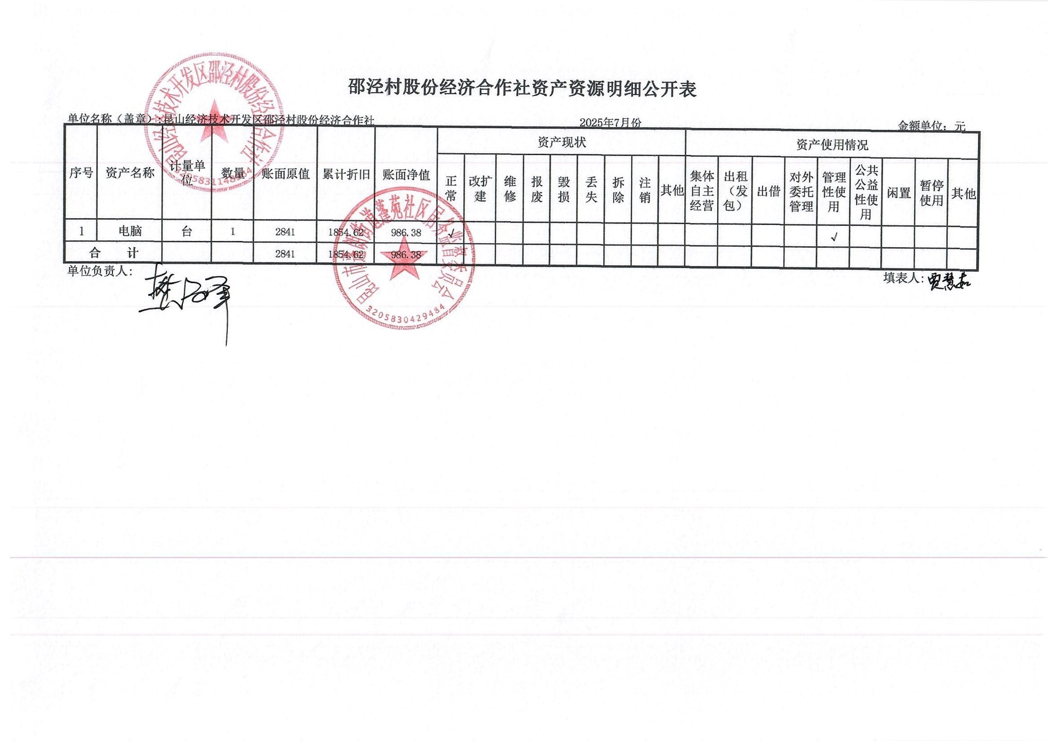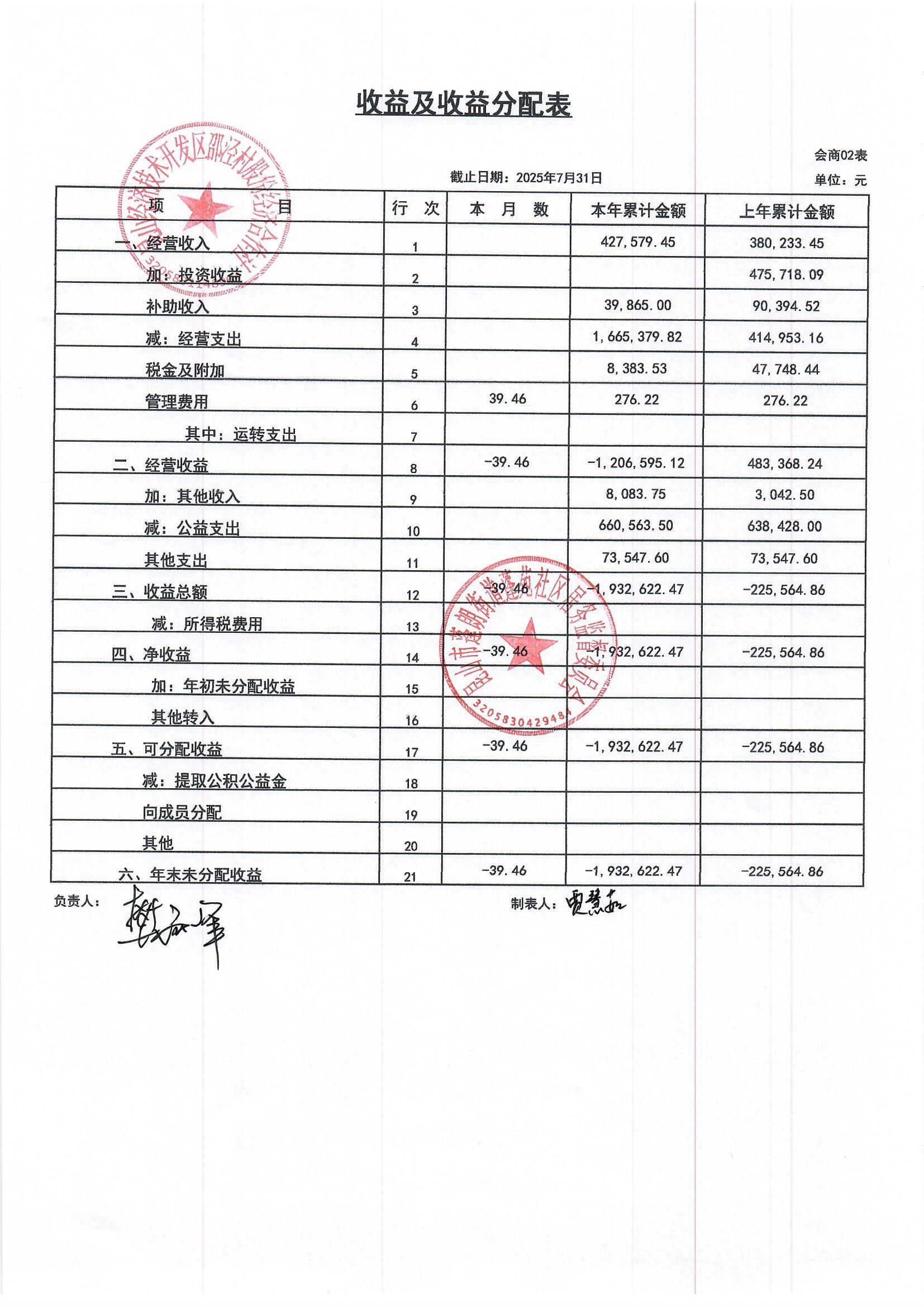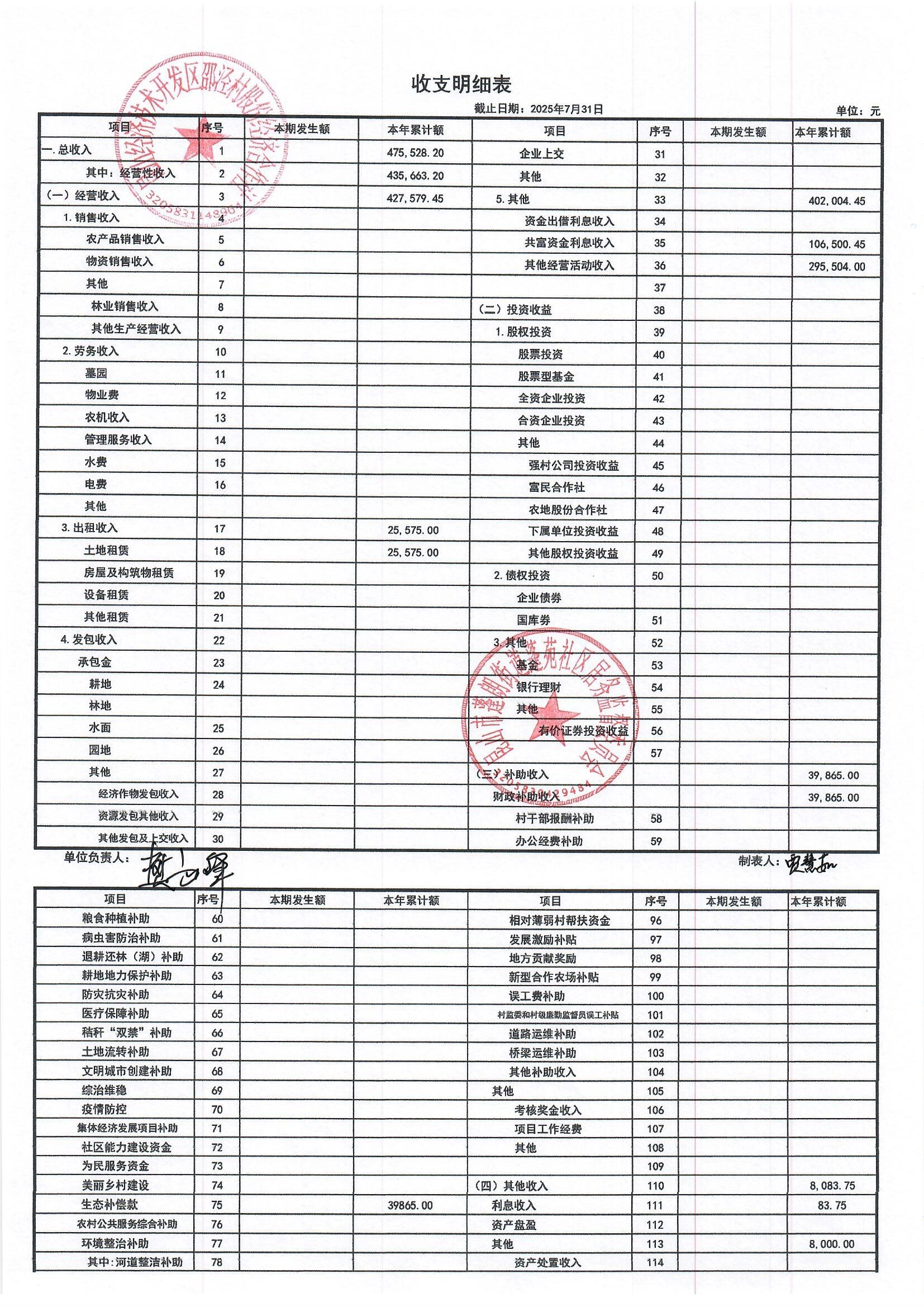 邵泾村股份经济合作社2025年7月财务公开