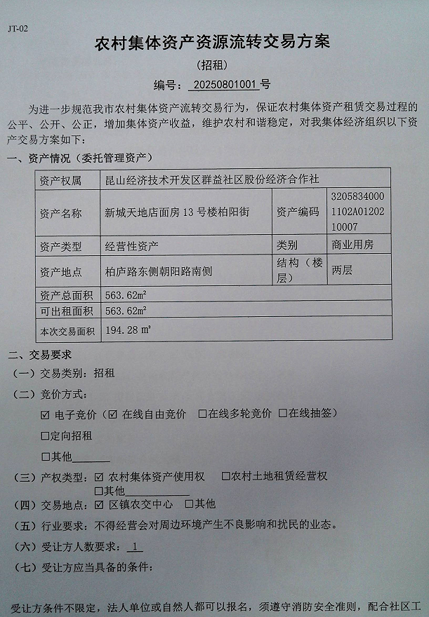 新城天地店面房13号楼柏阳街资产流转交易(招租)(编号20250801001号)