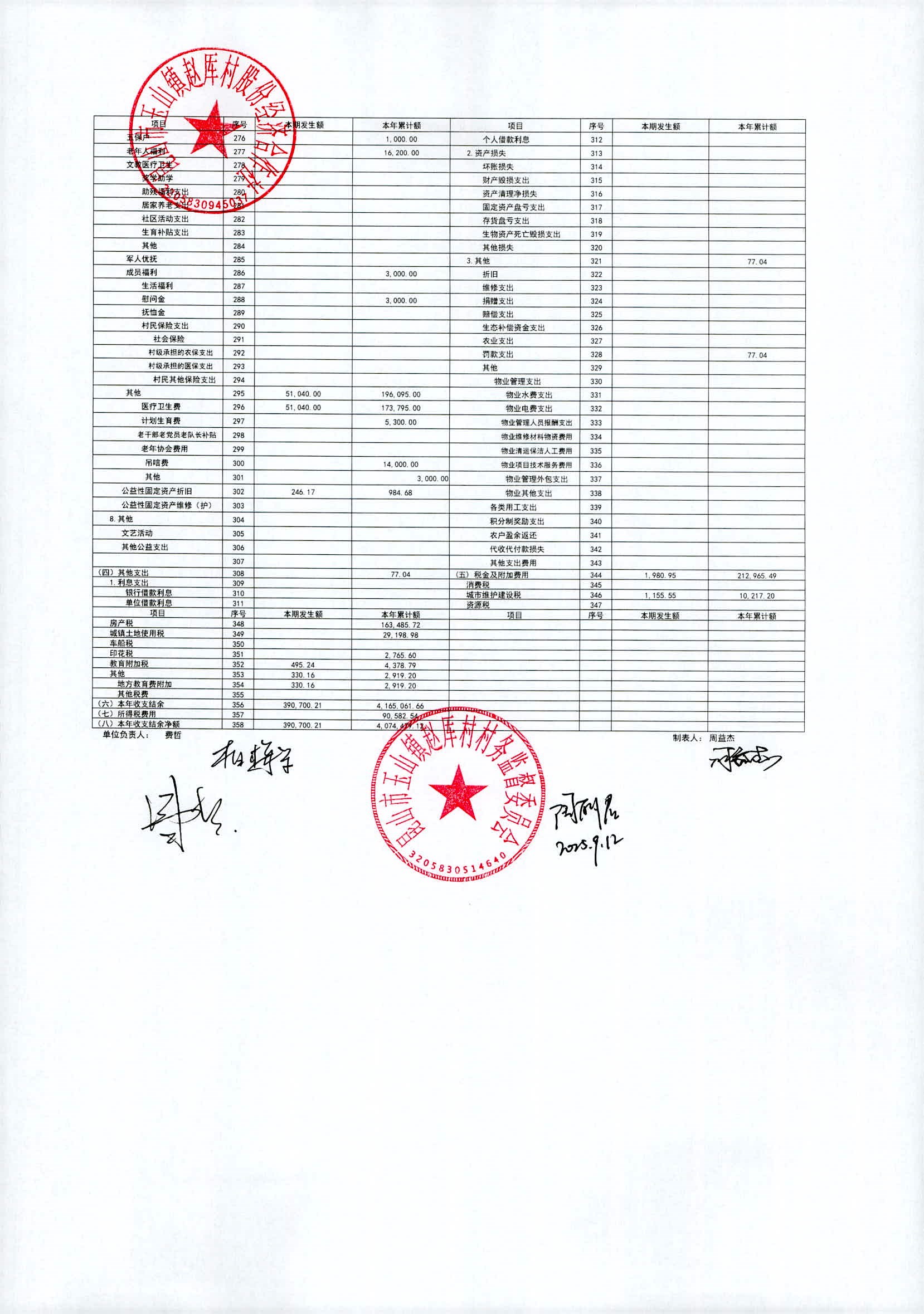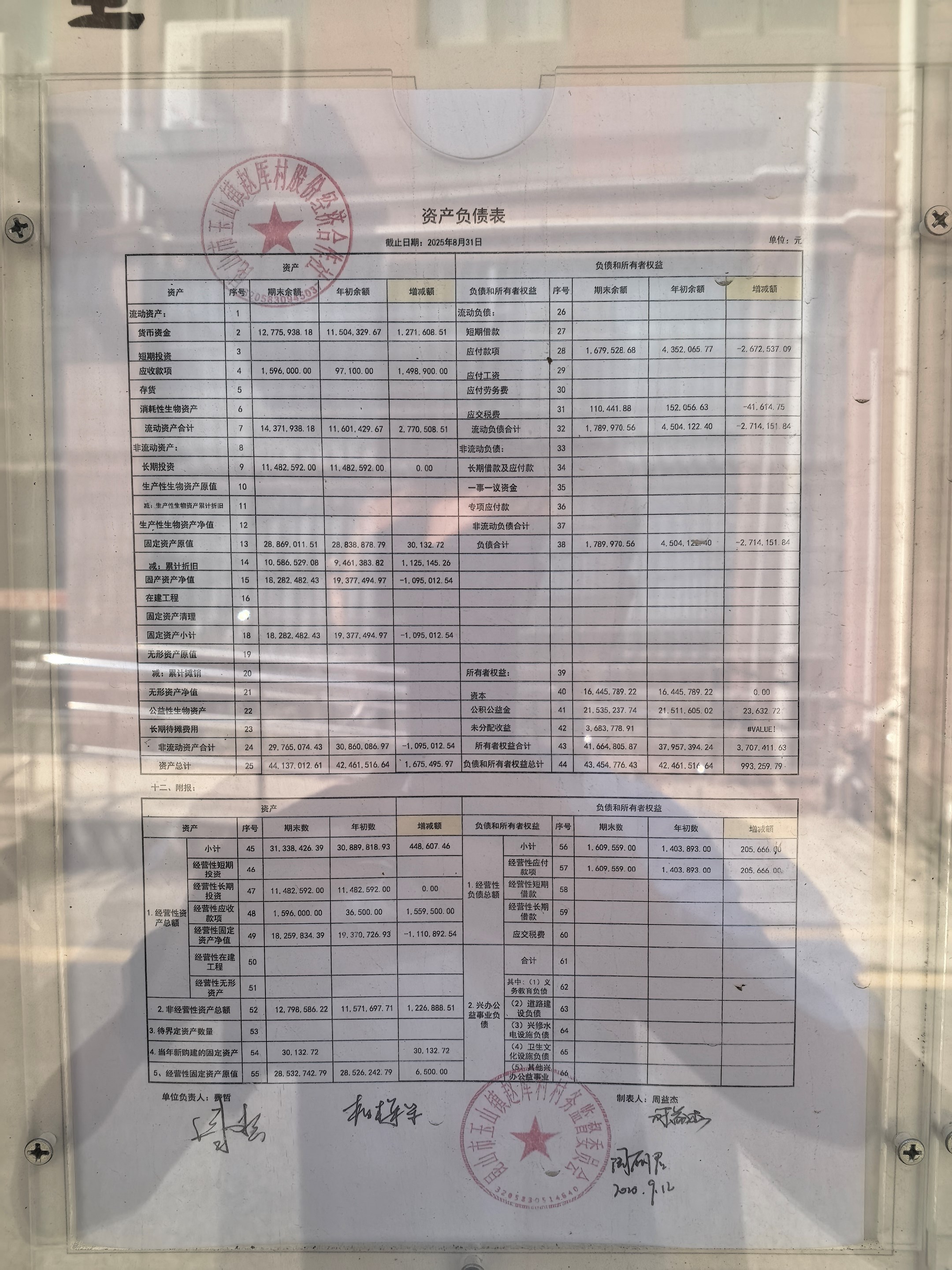 2025年赵厍村股份经济合作社9月财务公开及公示照片