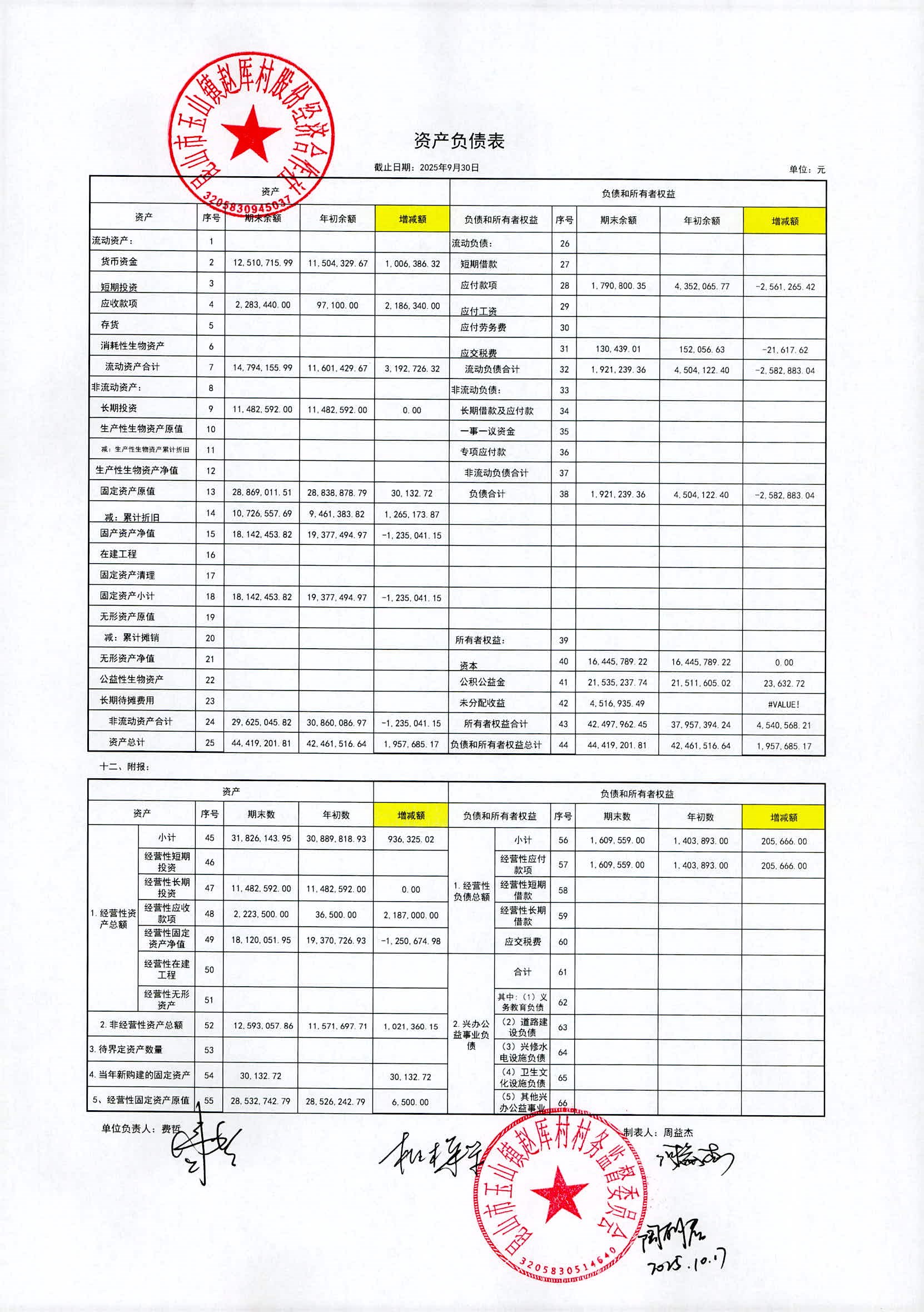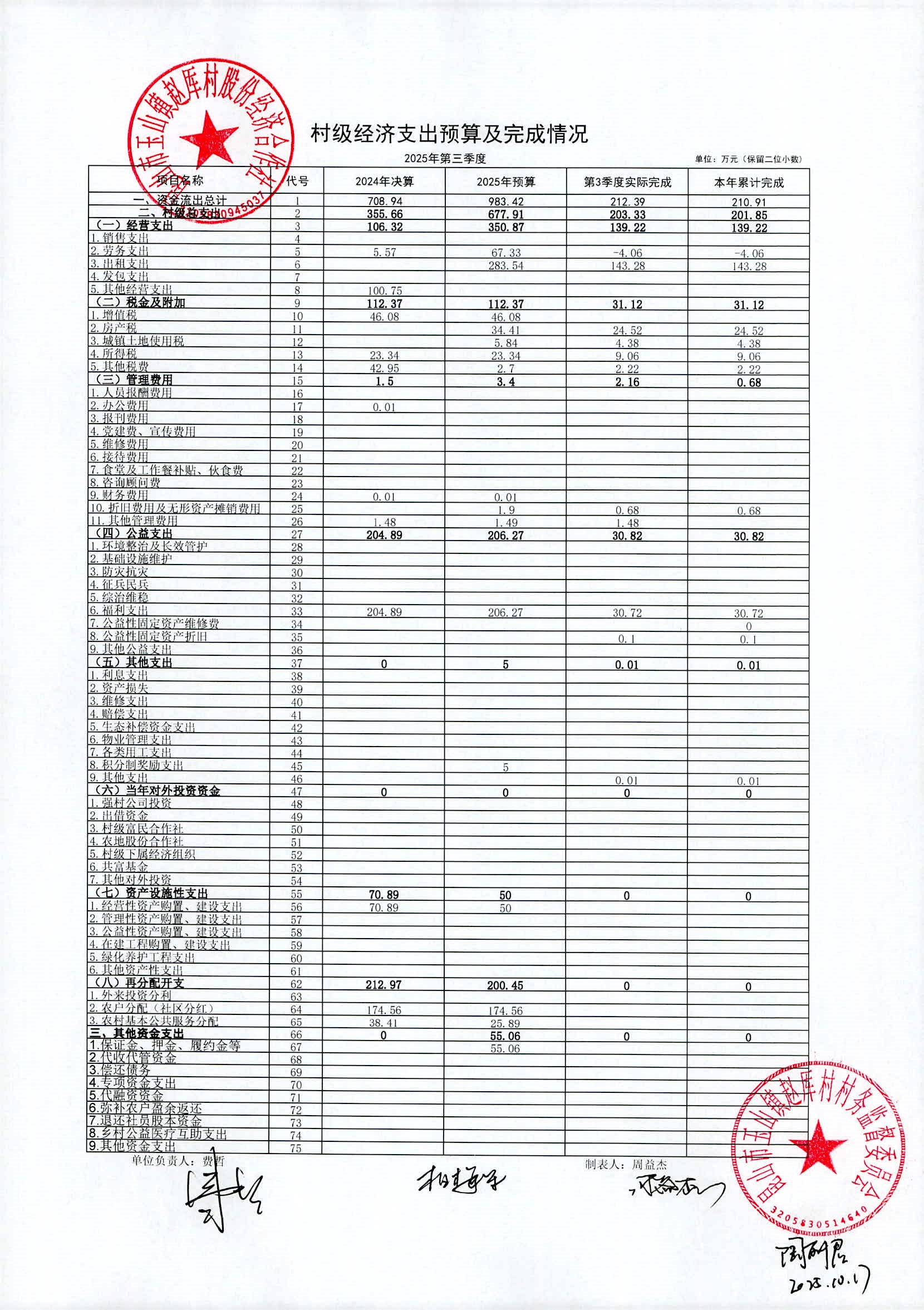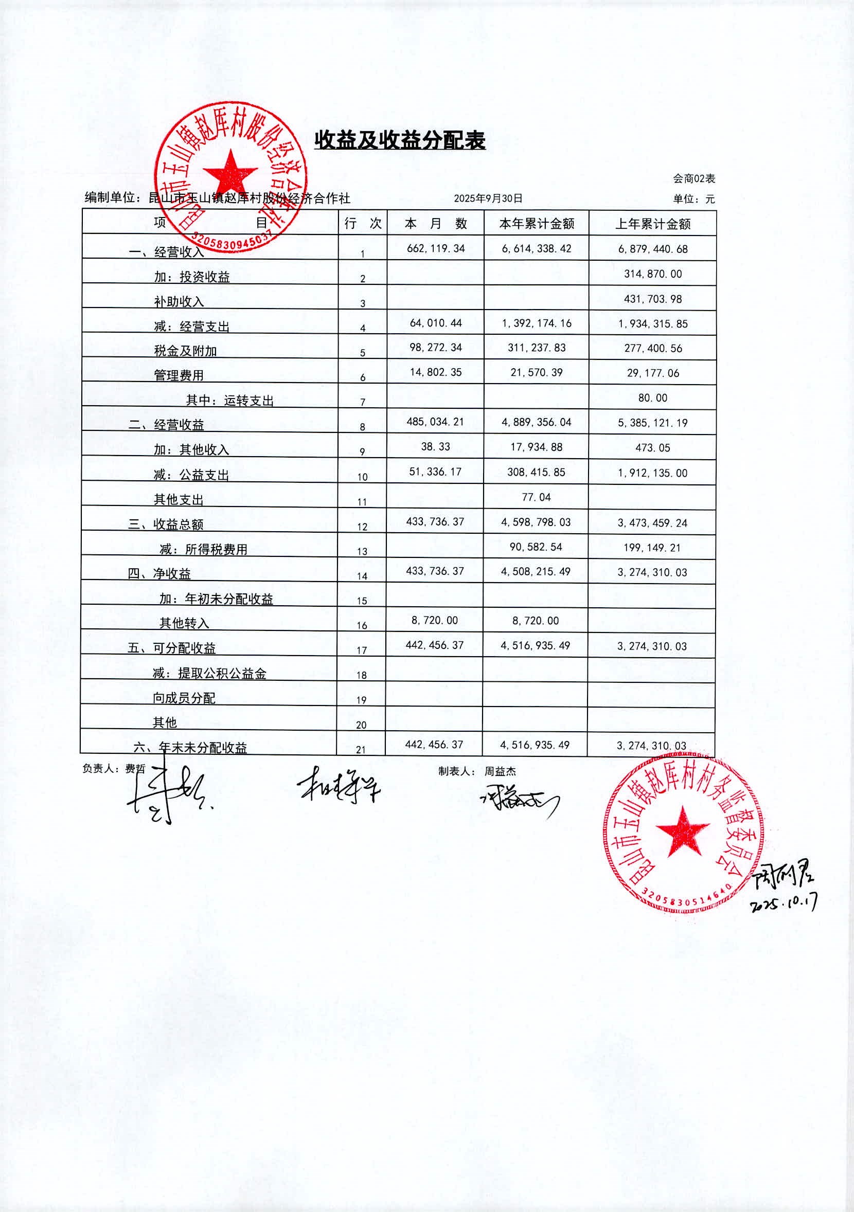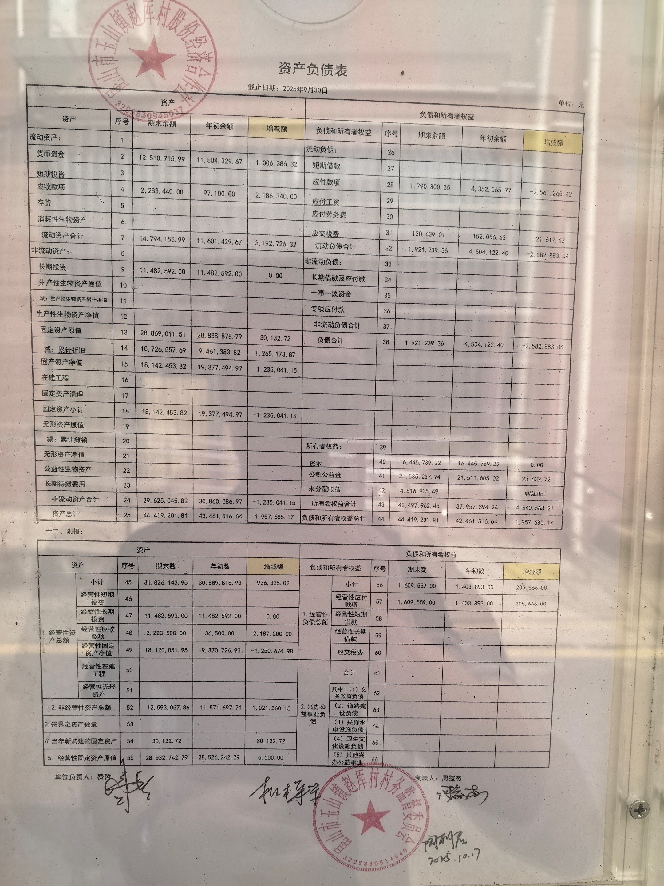 2025年赵厍村股份经济合作社10月财务公开及公示照片