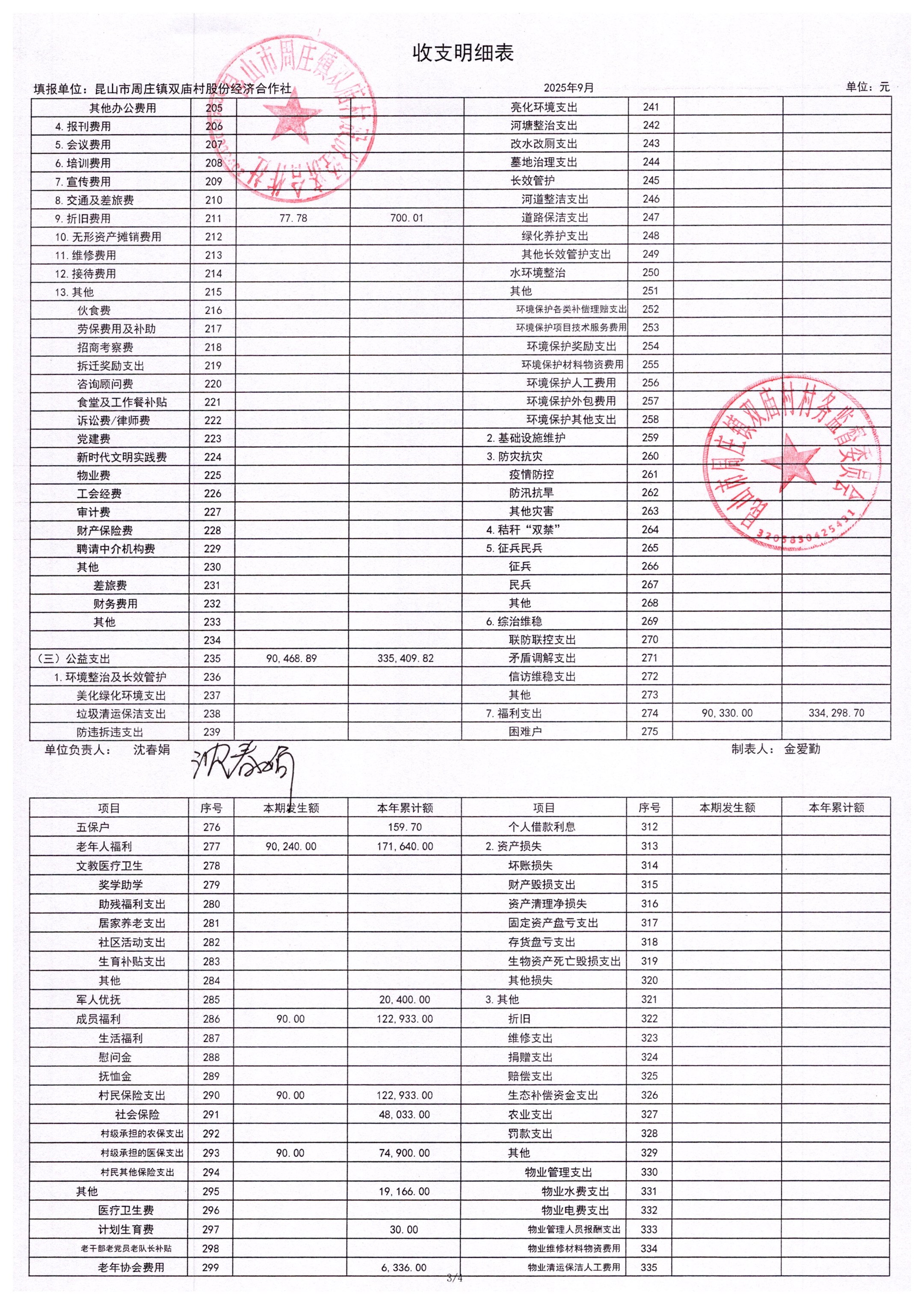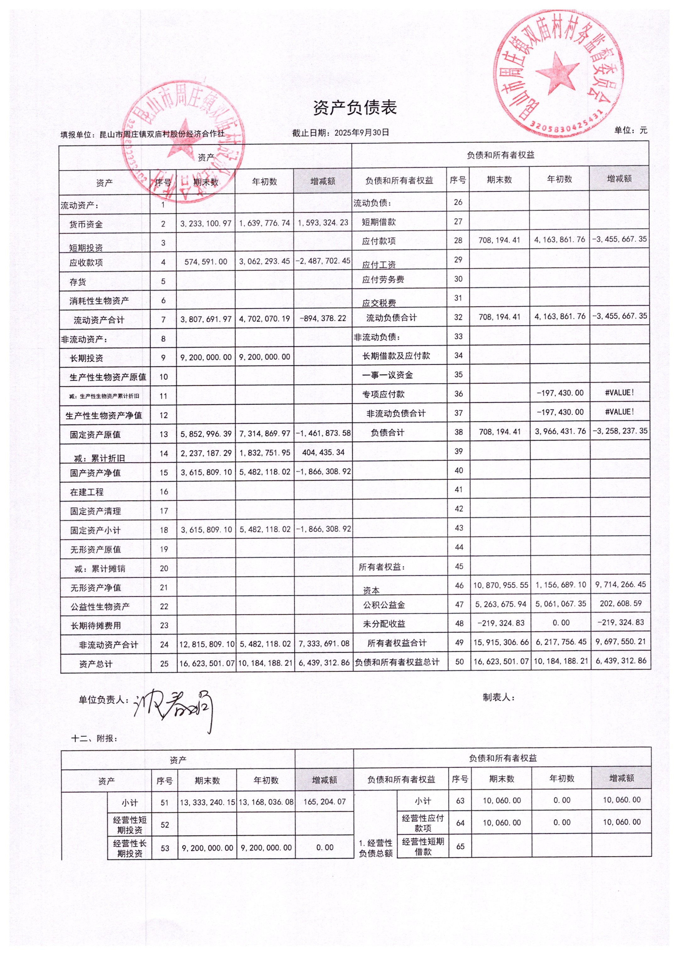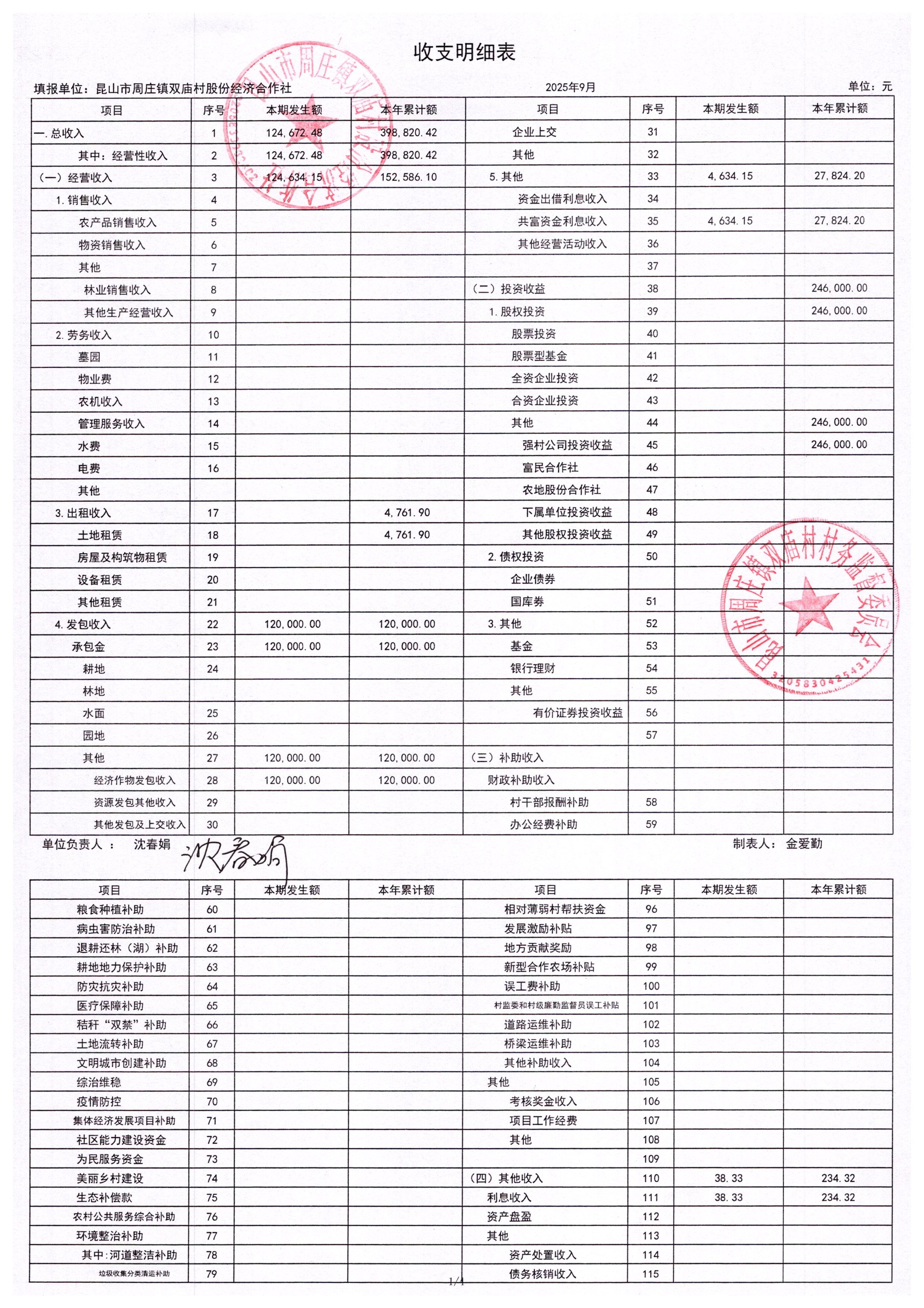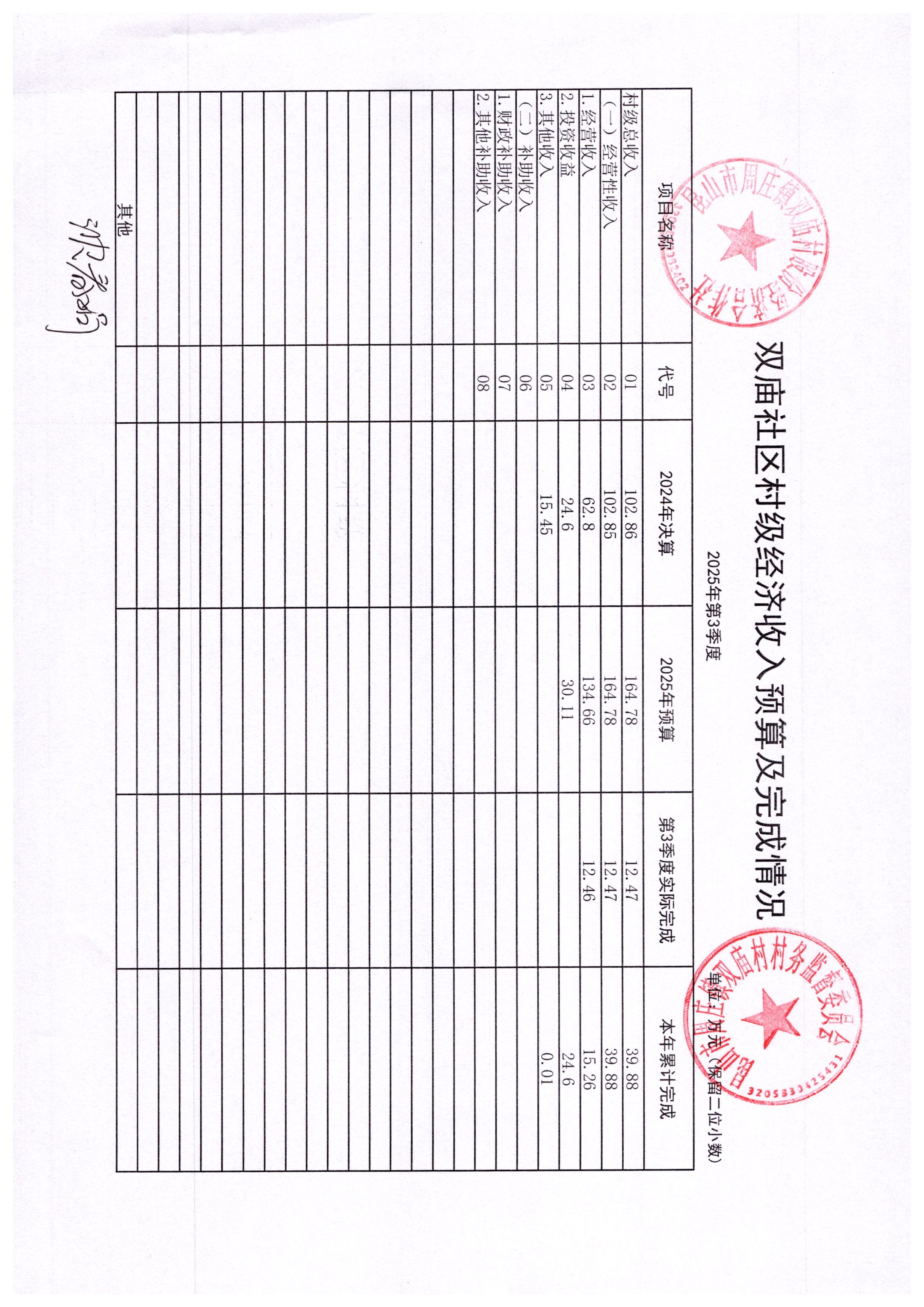 2025年第3季度财务公开-双庙村股份经济合作社财务公开