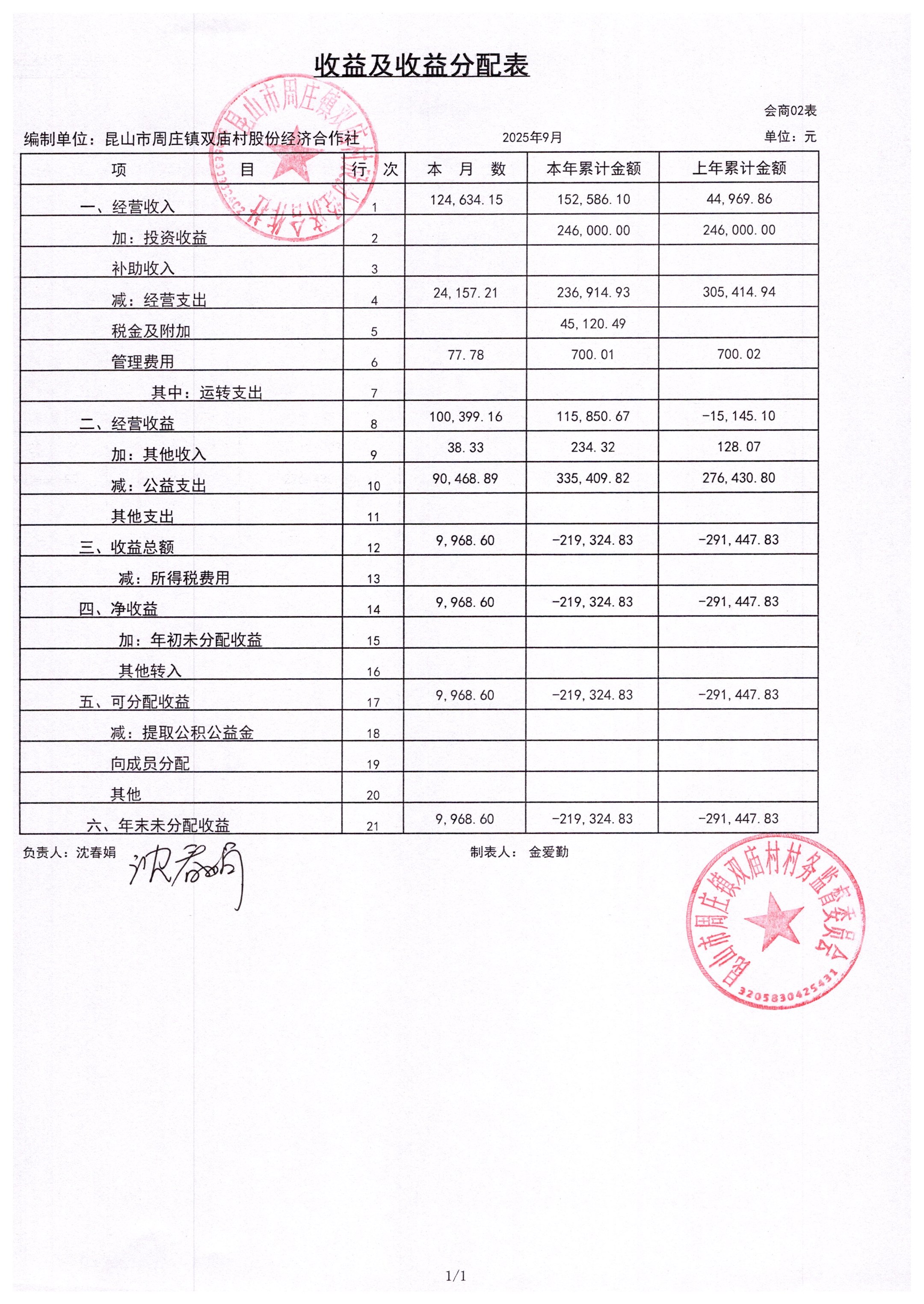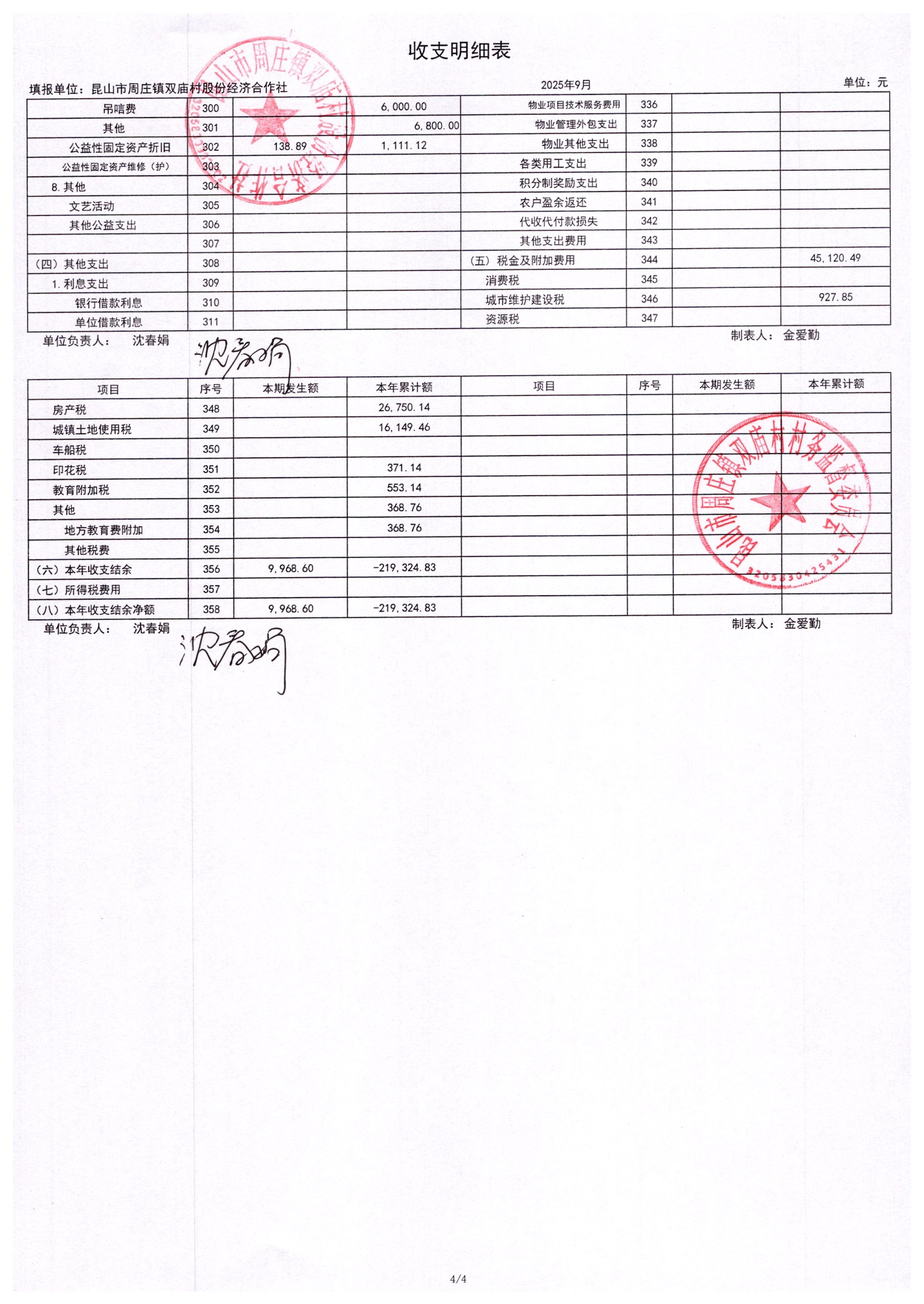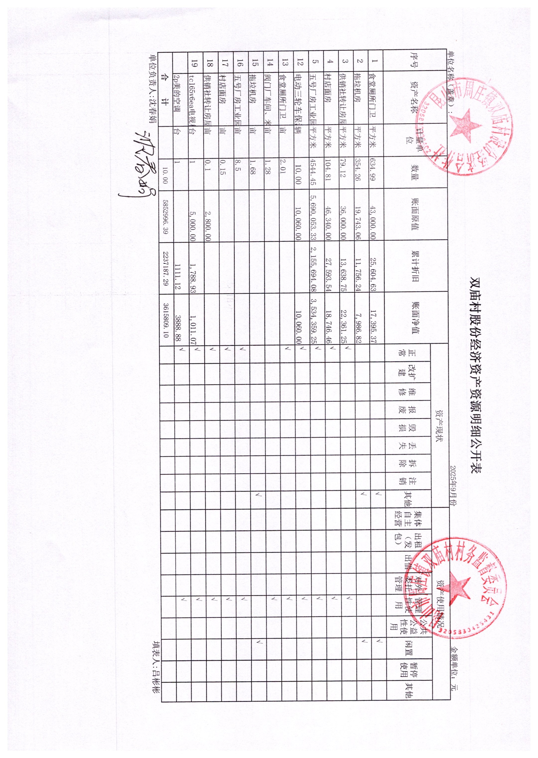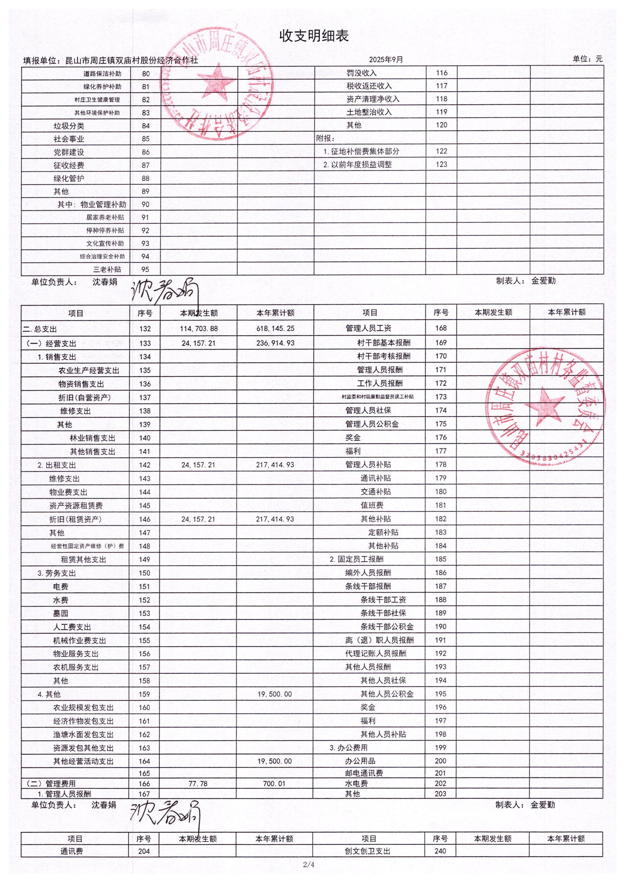 2025年第3季度财务公开-双庙村股份经济合作社财务公开