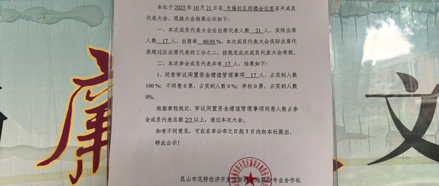 新胡农地股份专业合作社成员代表大会会后公告