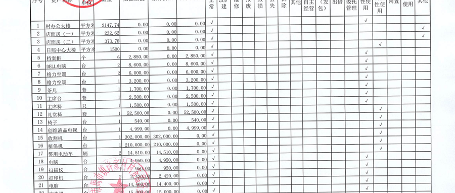 村盖章事项名录