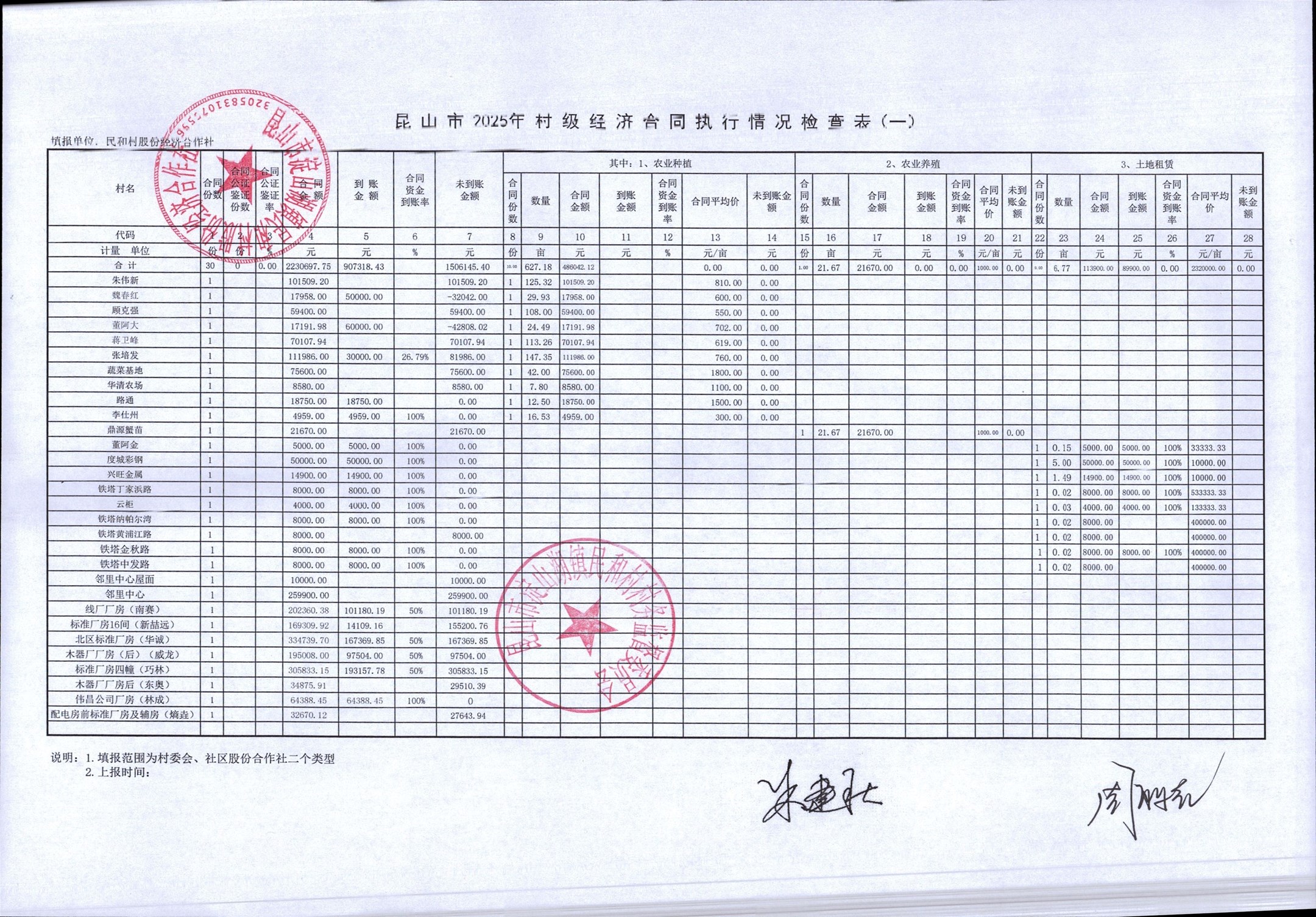 2025年第三季度民和村村级经济合同执行情况表公示