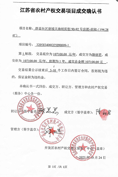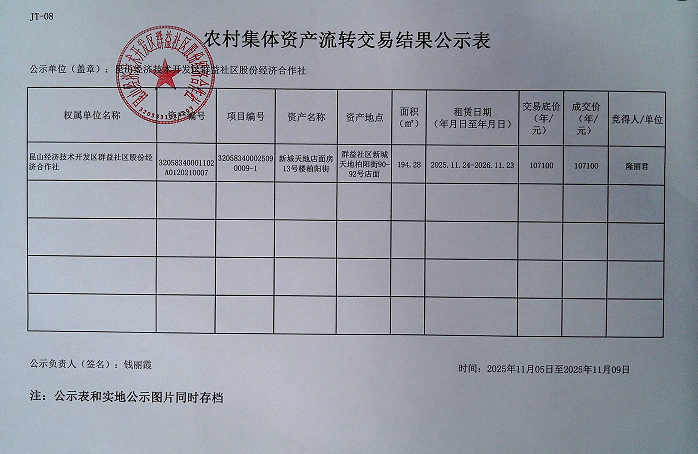 农村集体资产流转交易结果公示(柏阳街90-92号)
