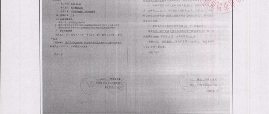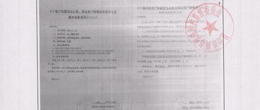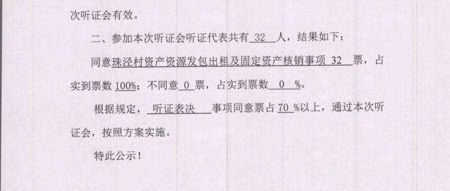珠泾村资产资源发包出租及固定资产核销等理事会、社员代表大会公示