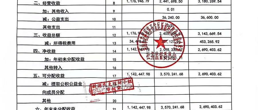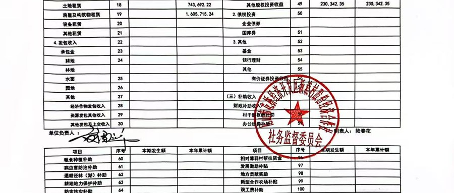 2025年新浦村股份经济合作社10月定期财务公示