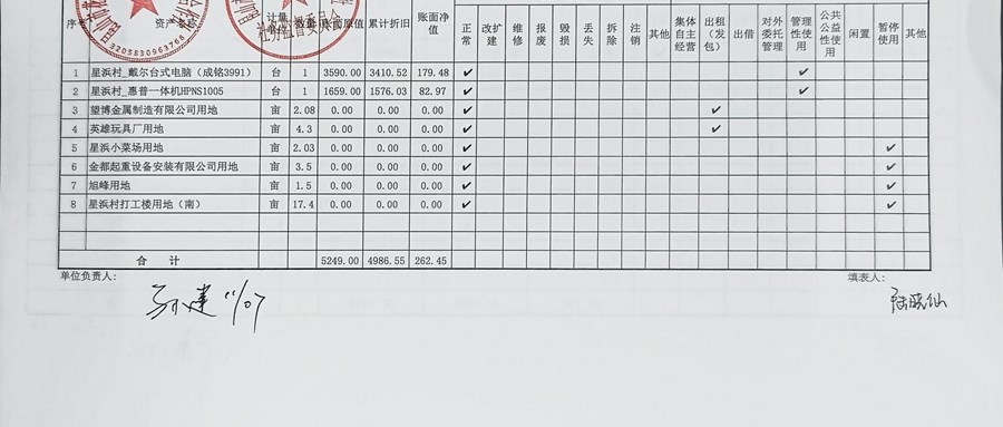 村盖章事项名录