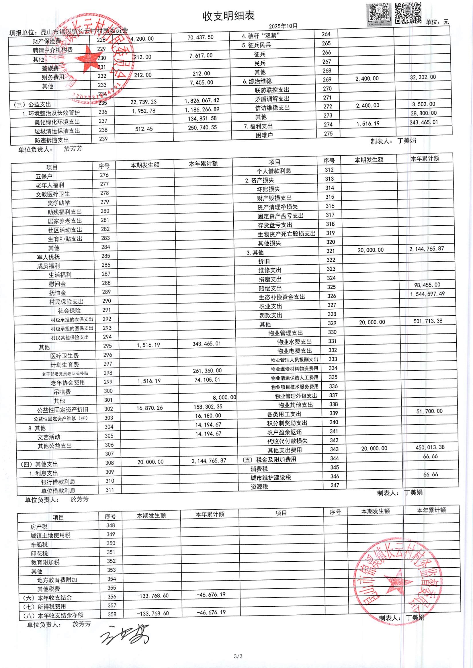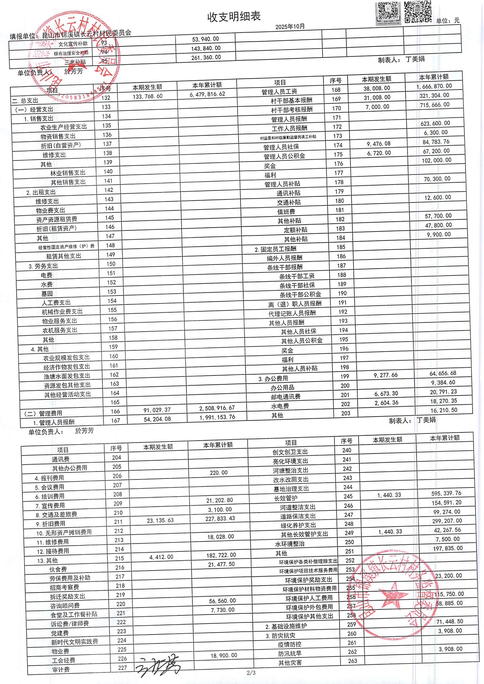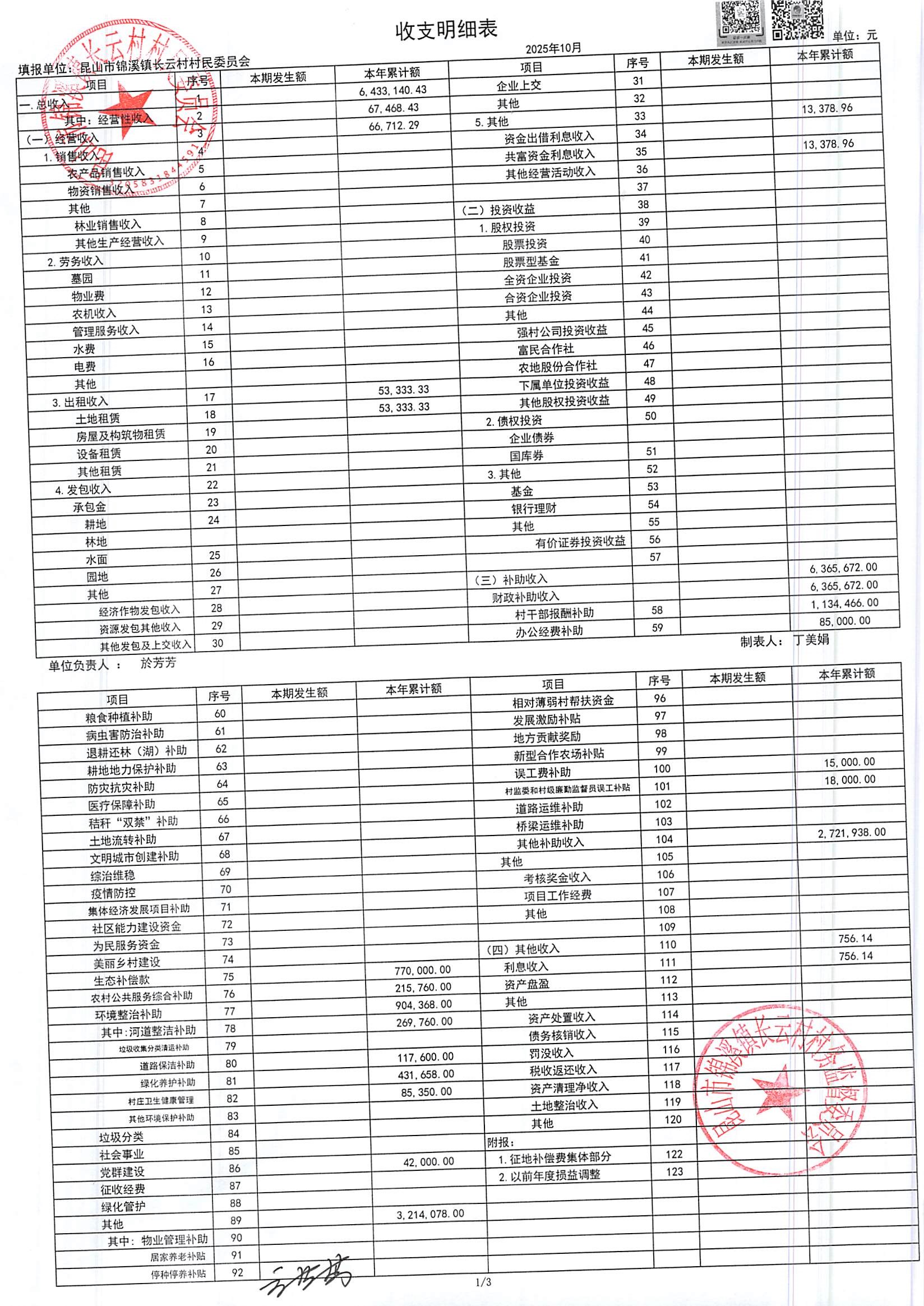 2025年第四季度财务公开定期公开(村委会)(10月份)
