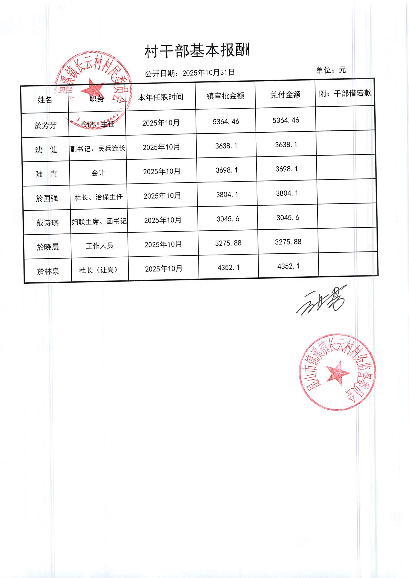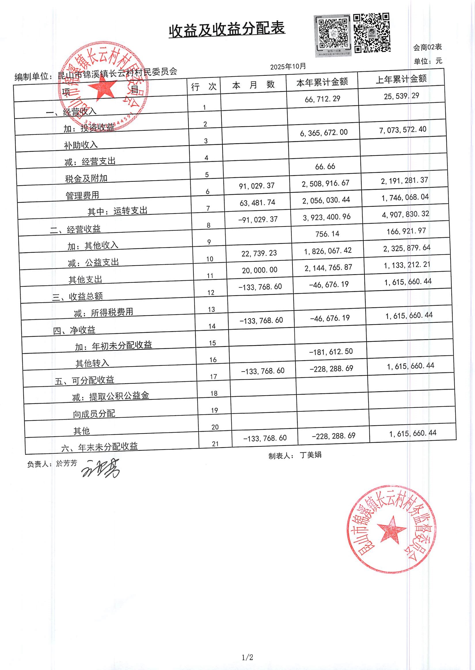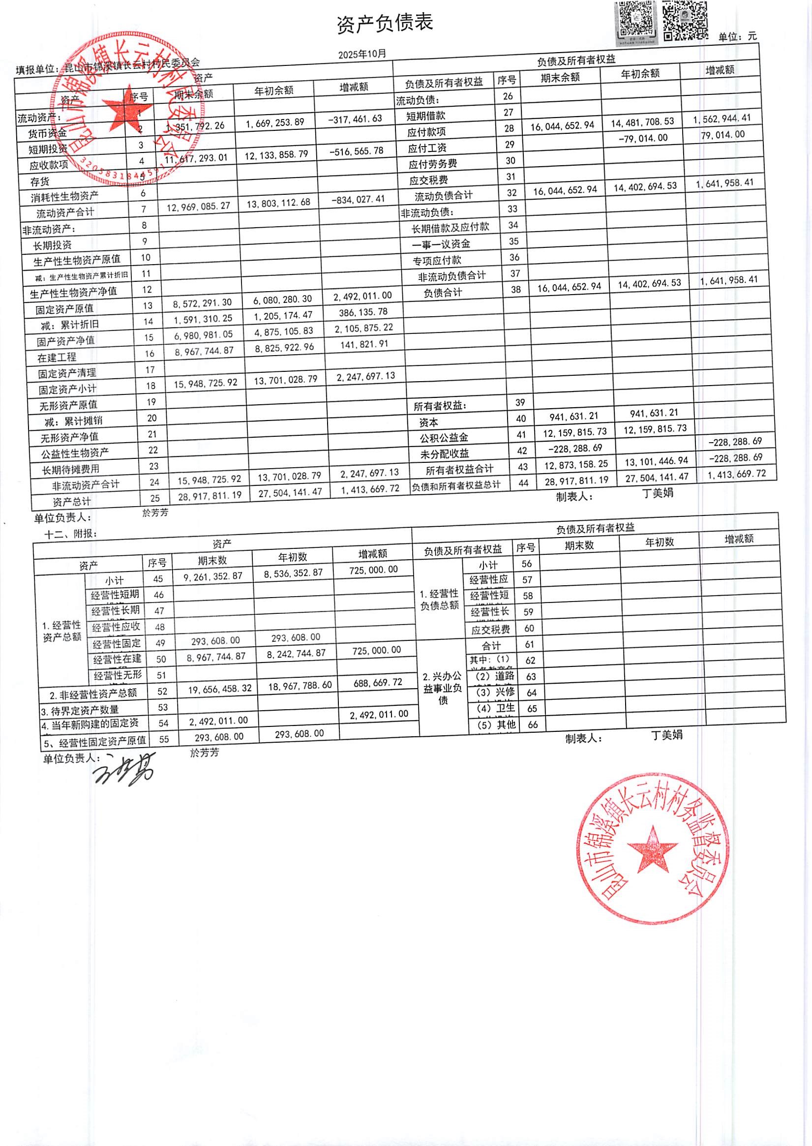 2025年第四季度财务公开定期公开(村委会)(10月份)