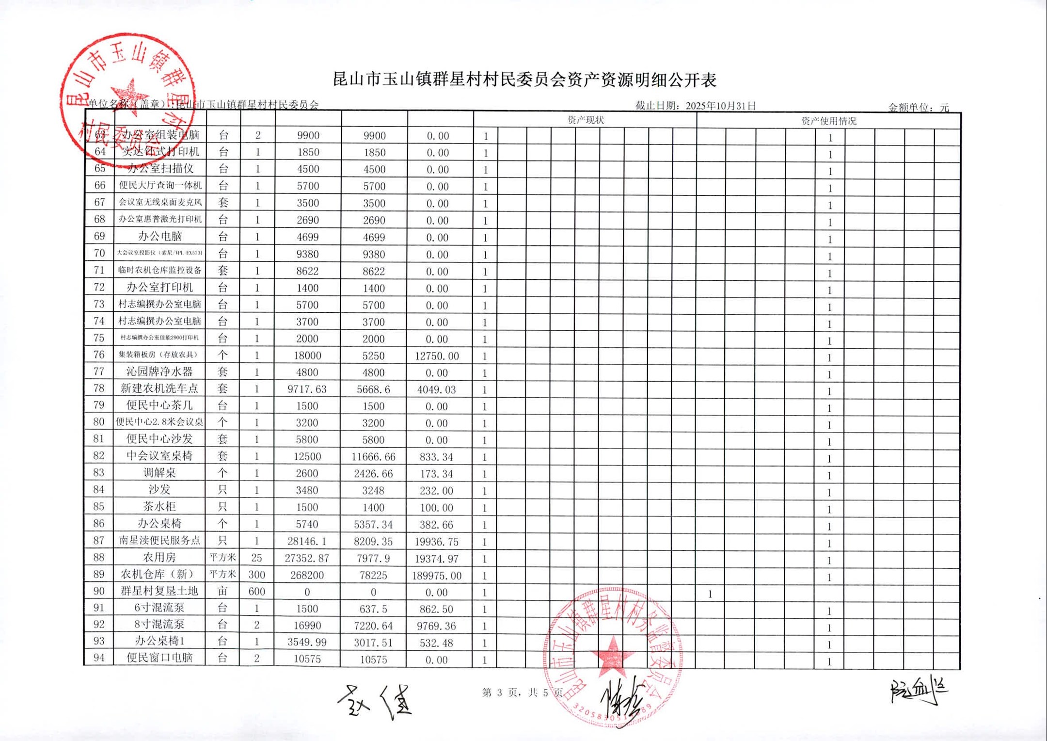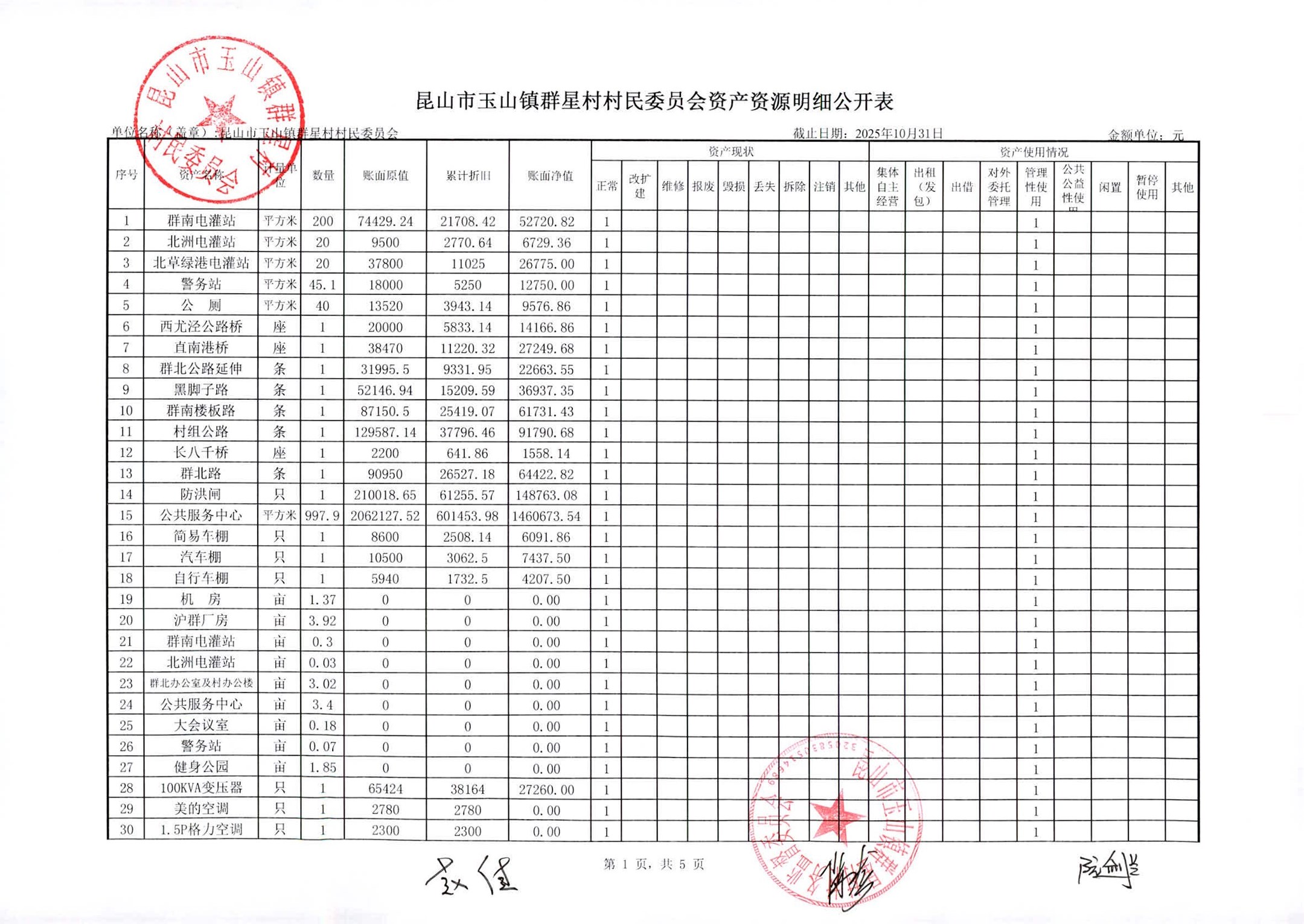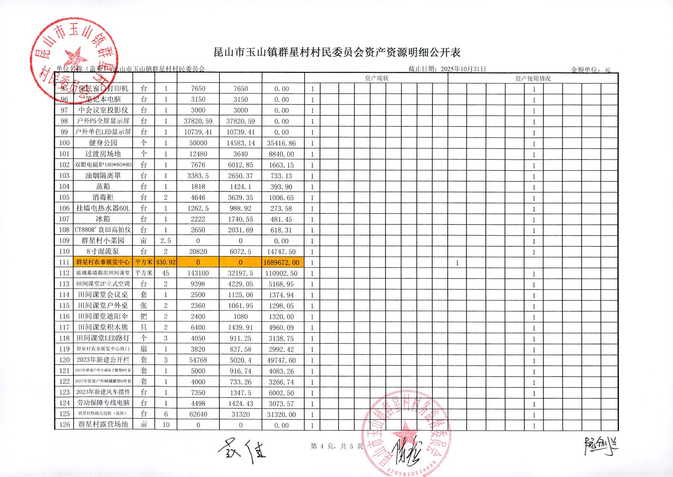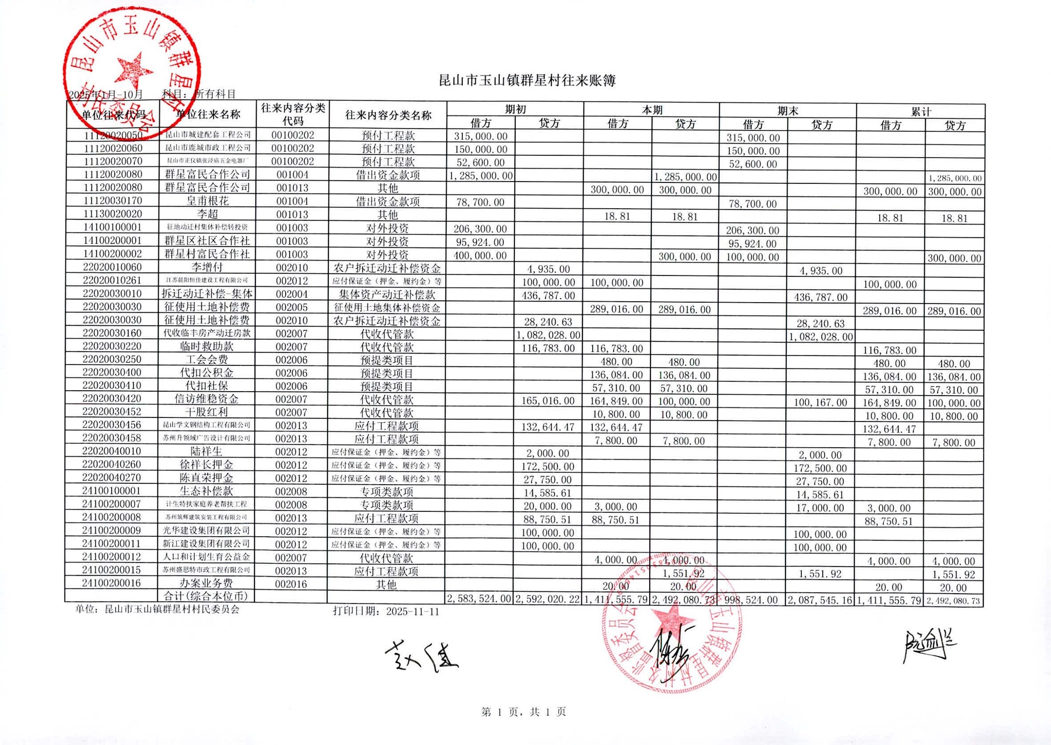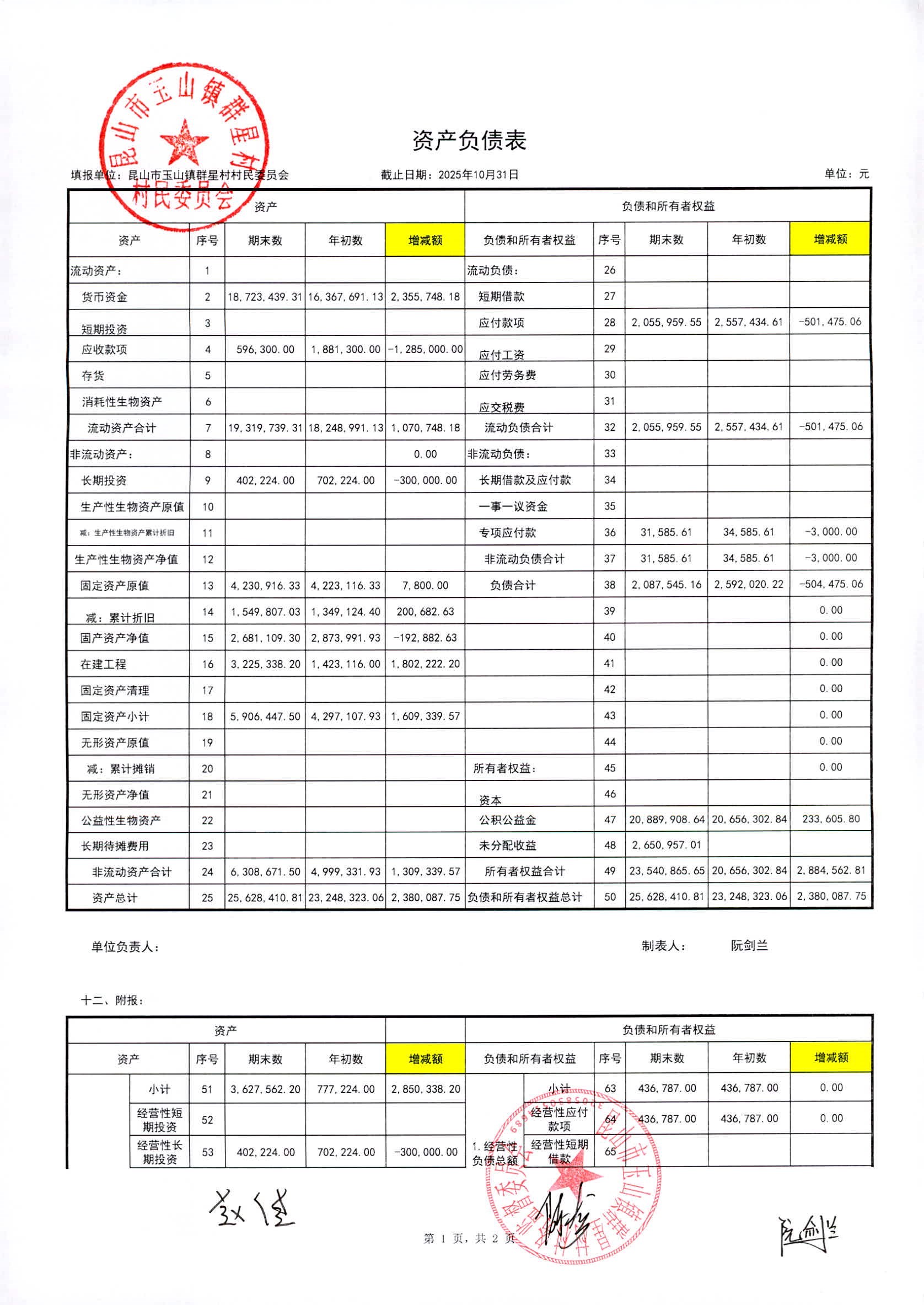 昆山高新区群星村2025年11月份公开村民委员会10月财务信息