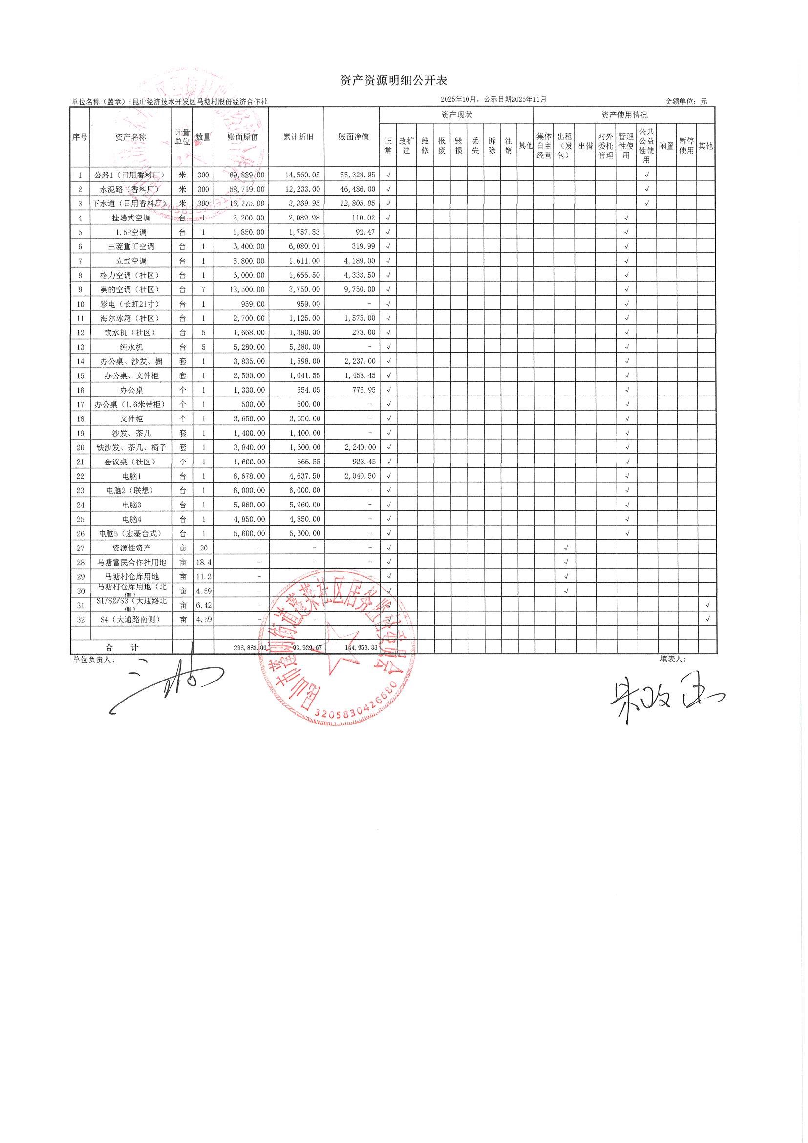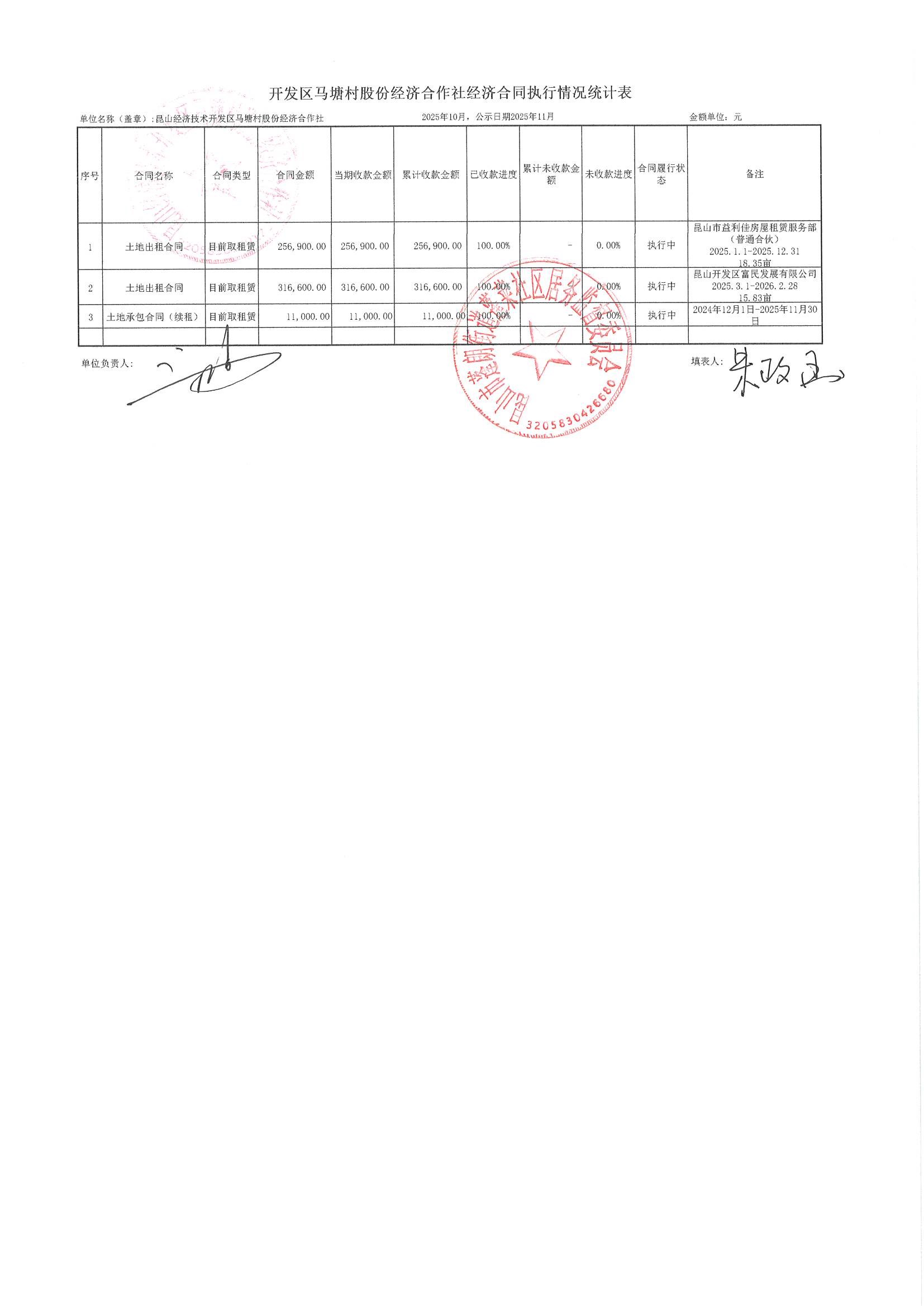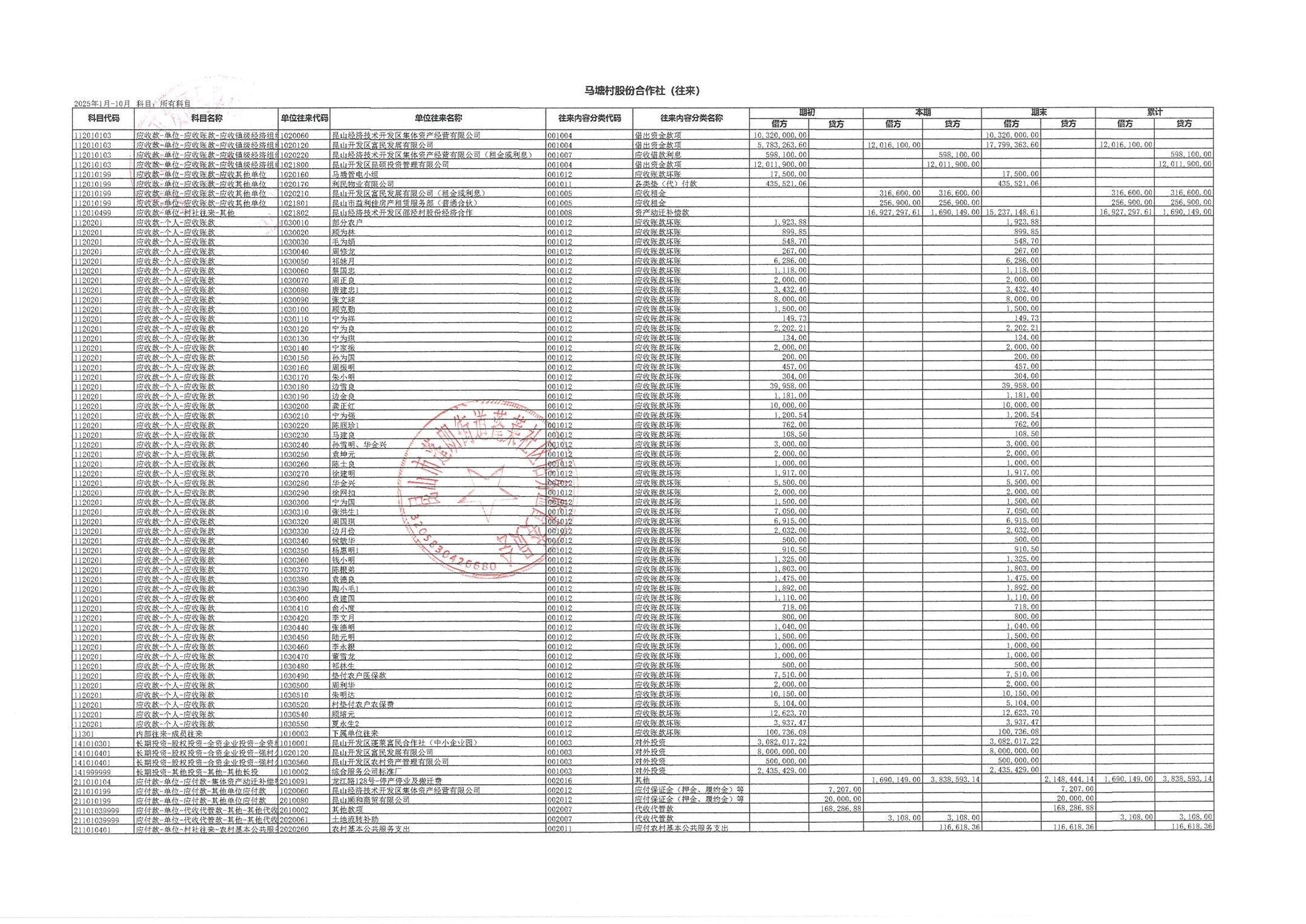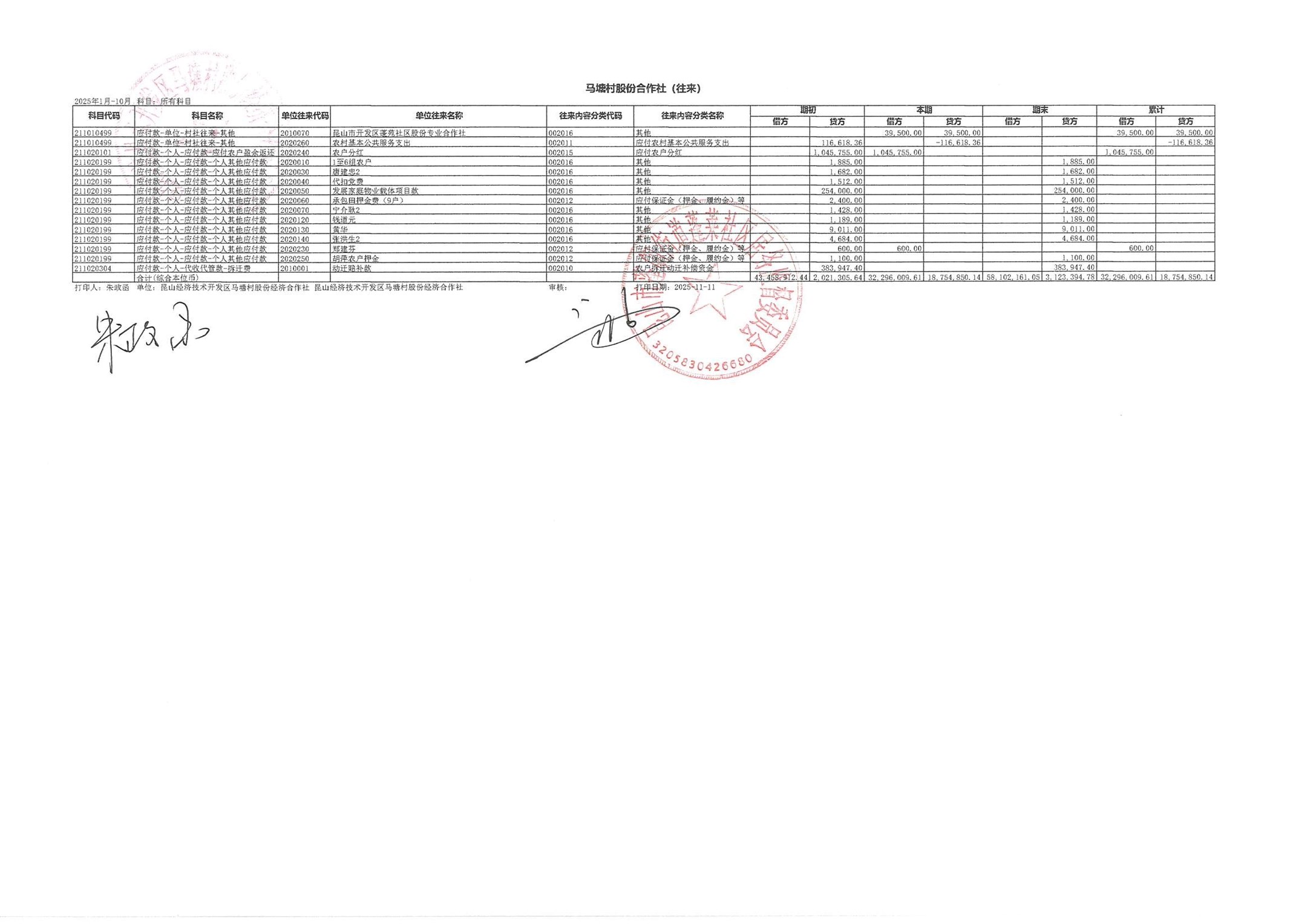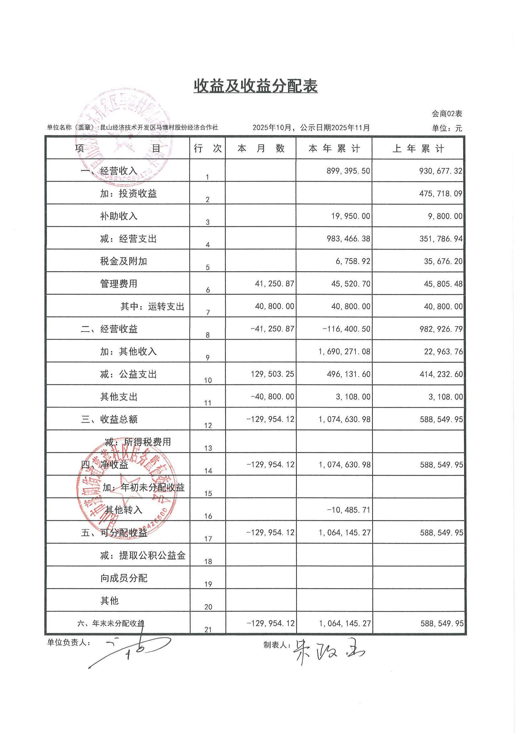 2025年10月财务公开(马塘村股份经济合作社)