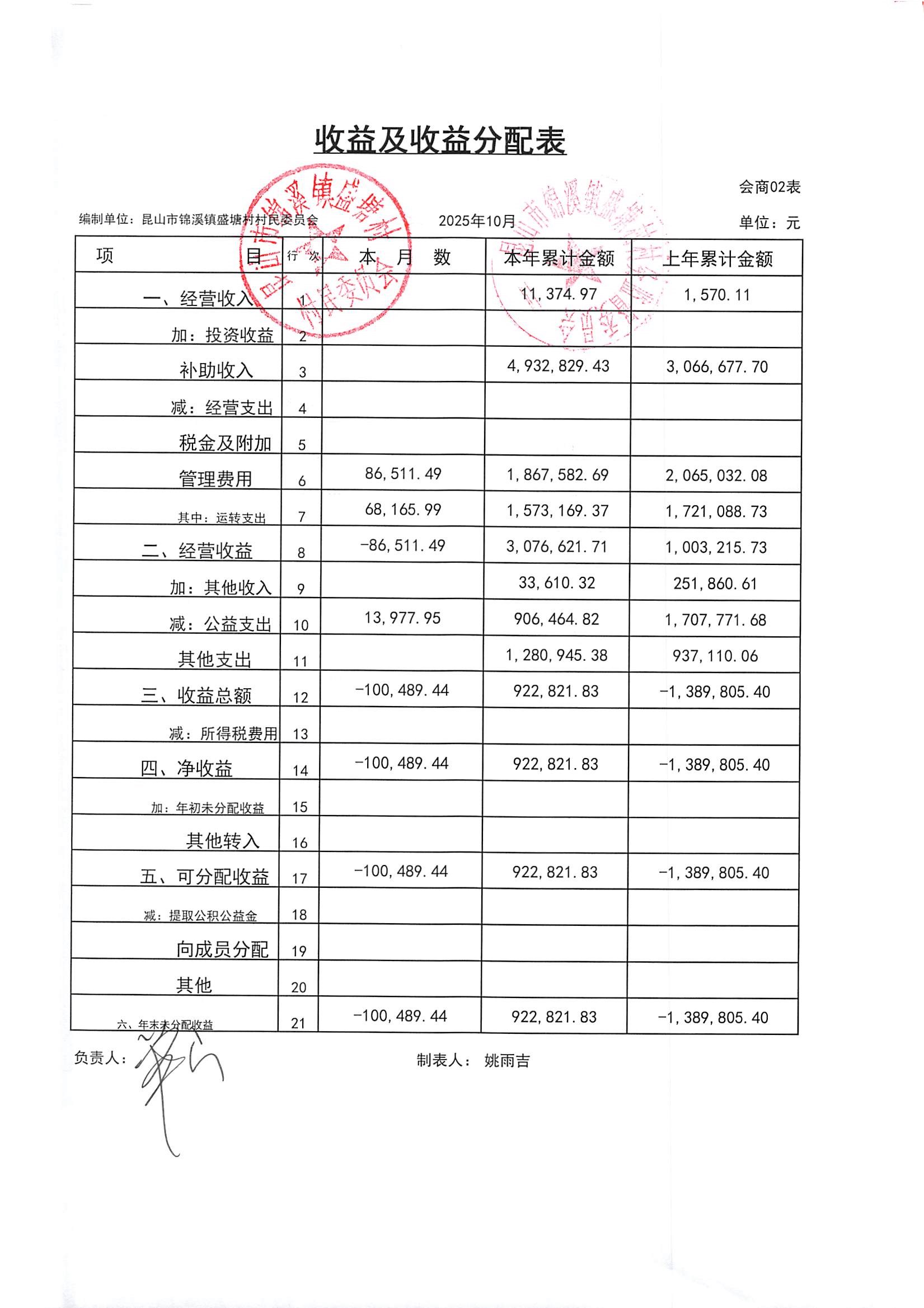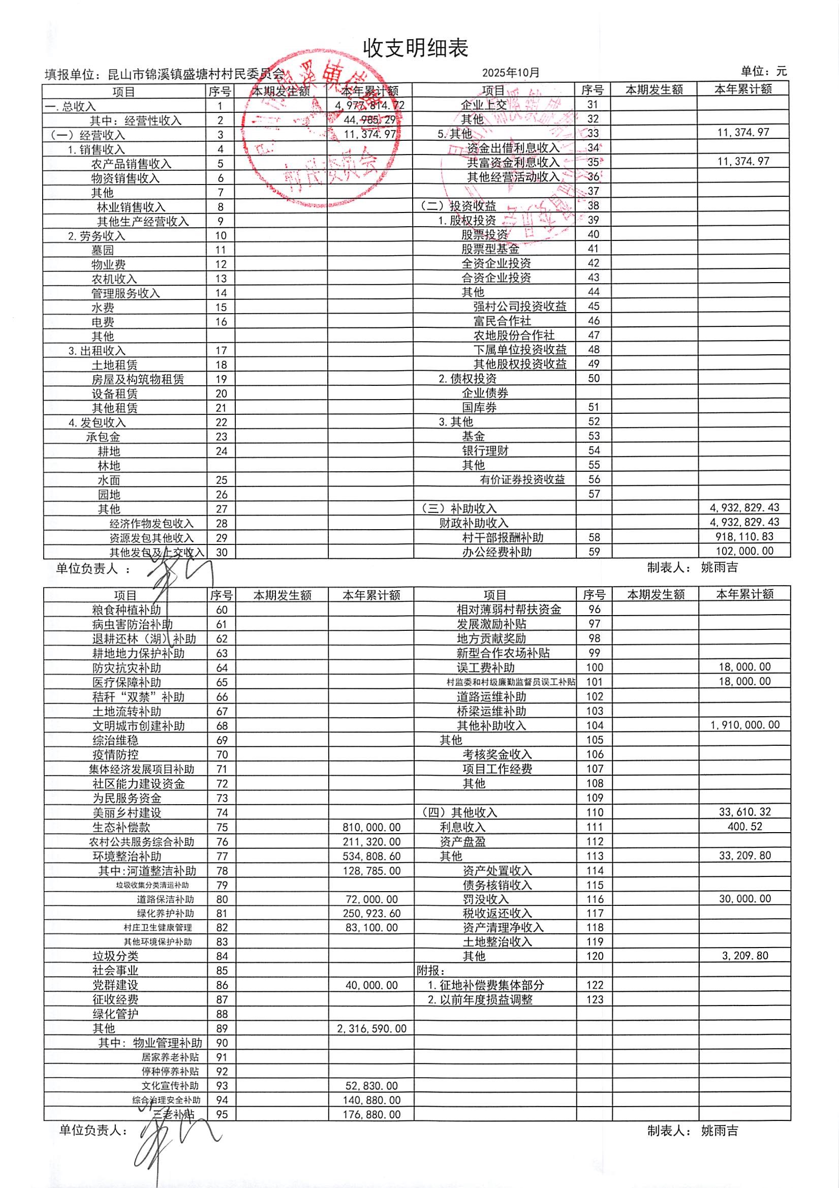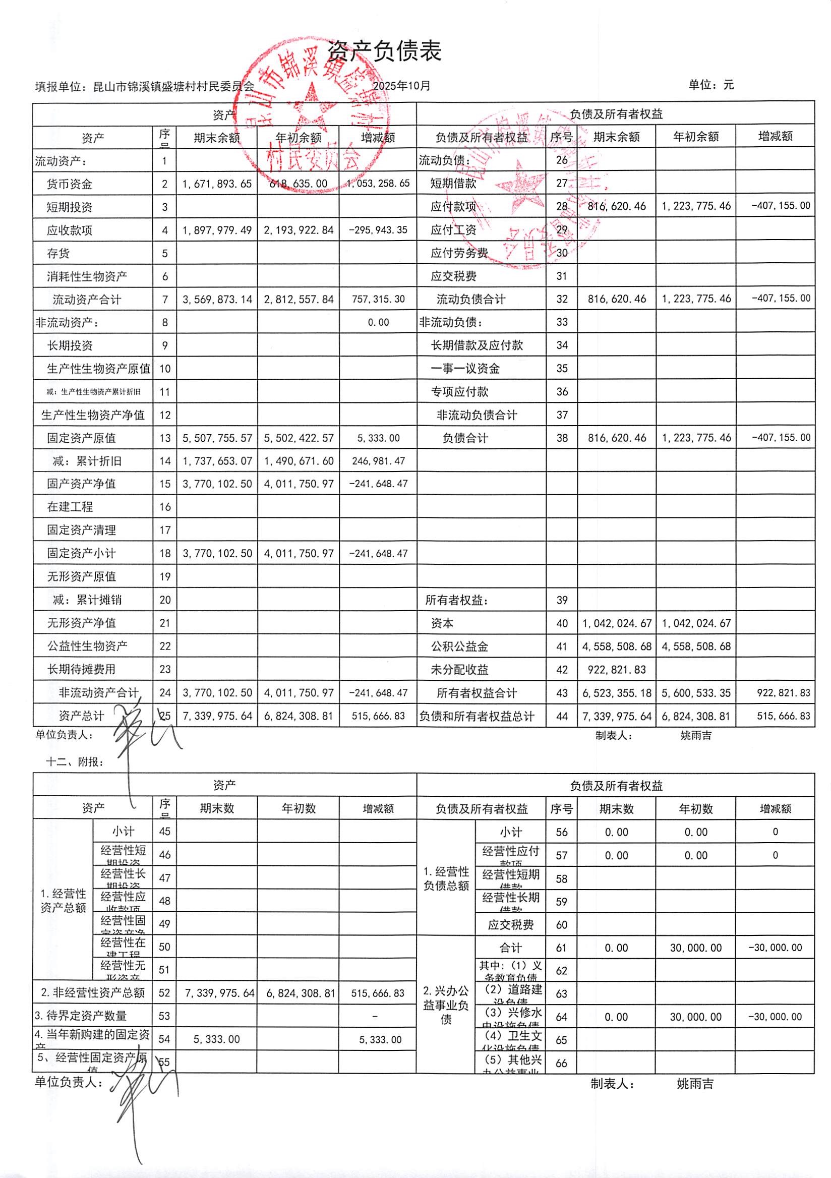 昆山市锦溪镇盛塘村2025年第四季度10月村财务公开资料