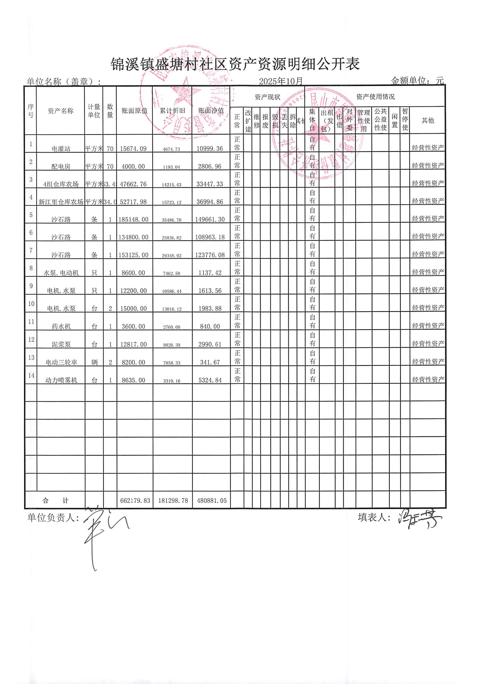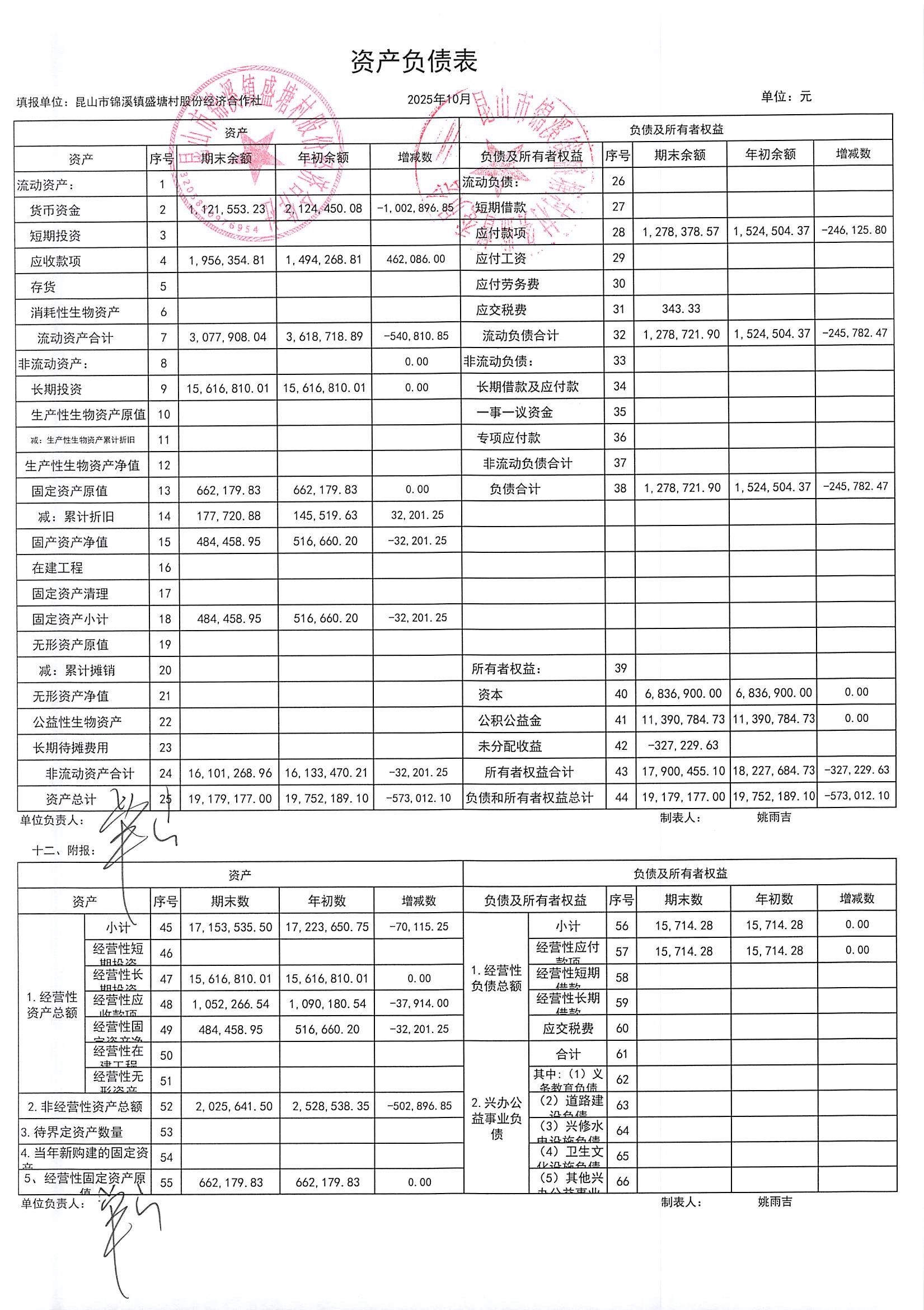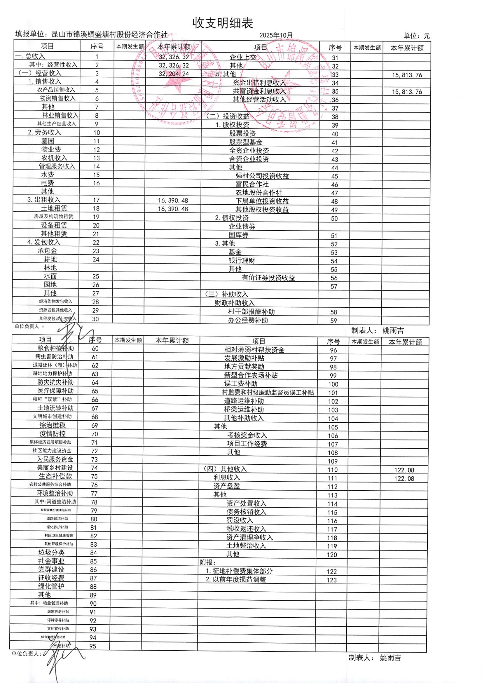 昆山市锦溪镇盛塘村2025年第四季度10月社区财务公开资料