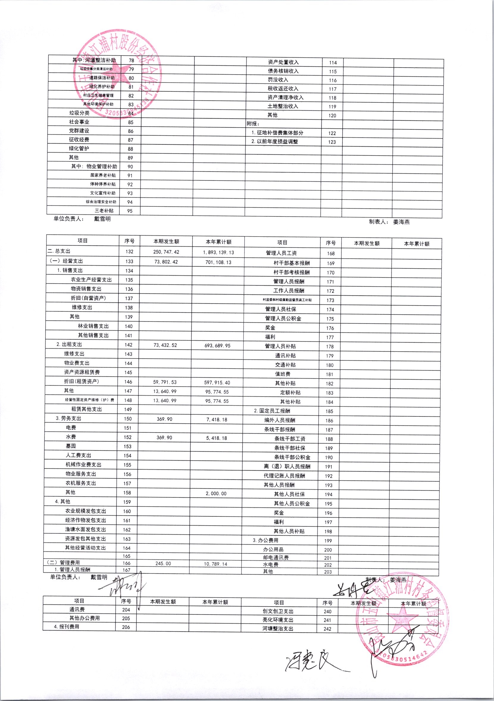 2025年江浦村股份经济合作社11月份财务公开及公示照片
