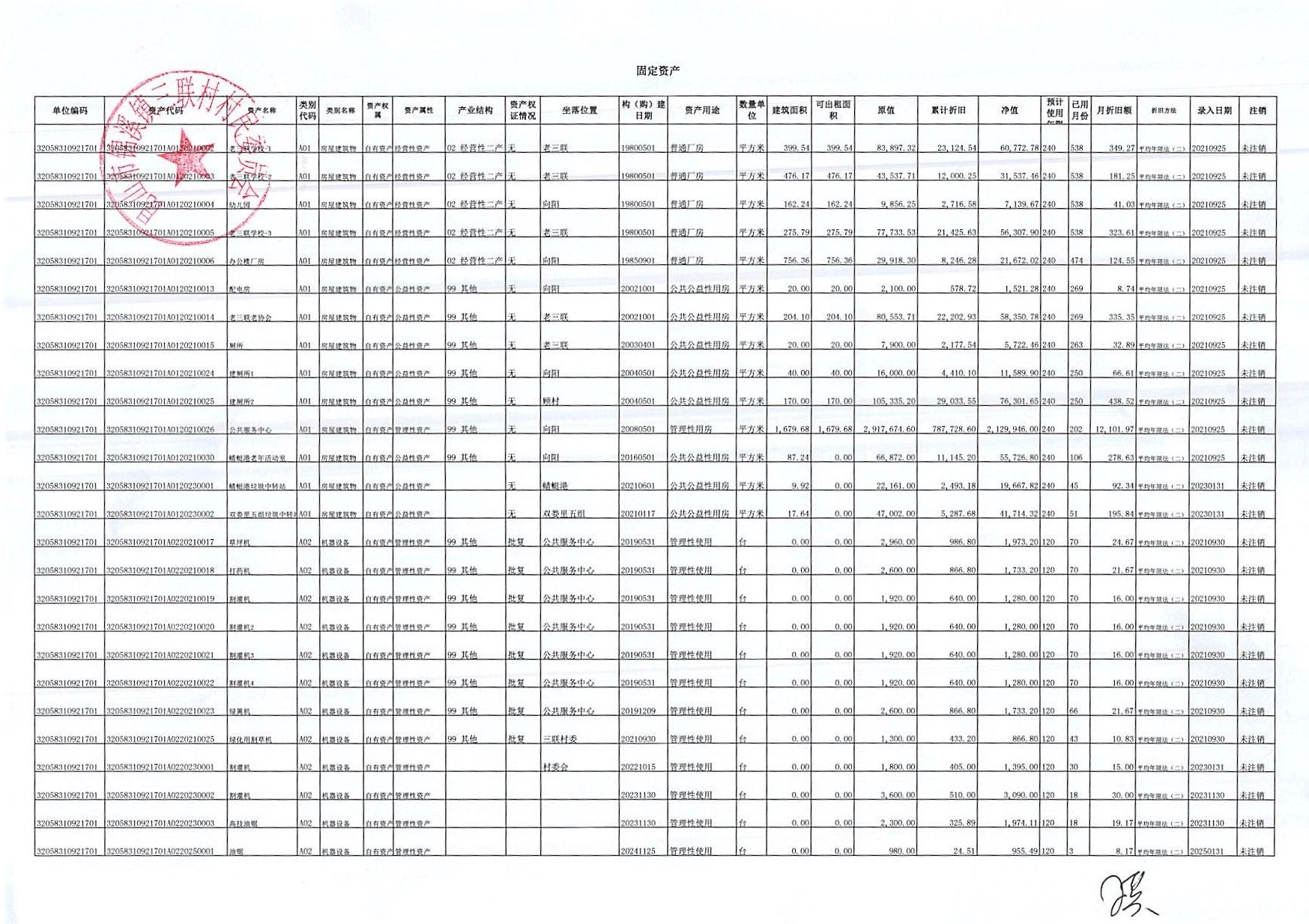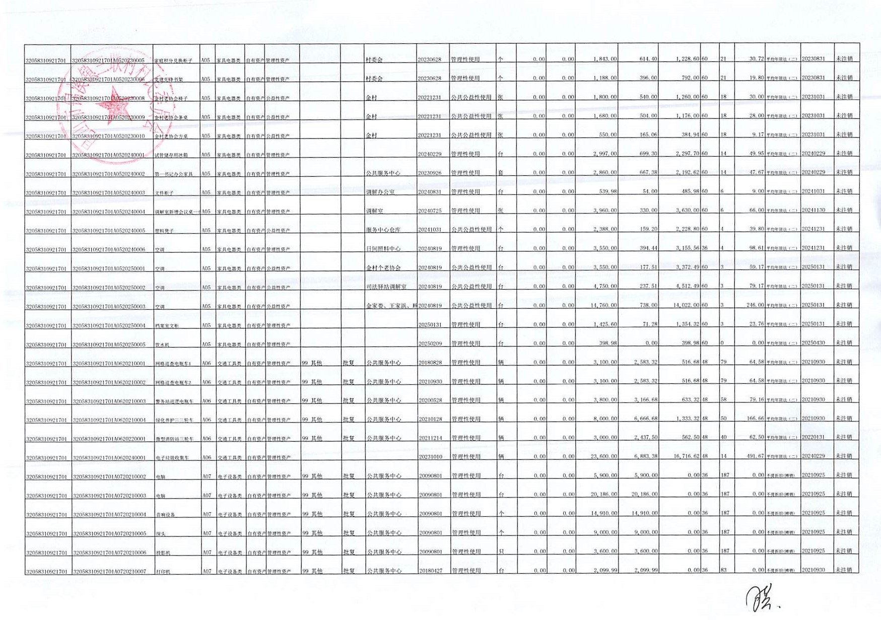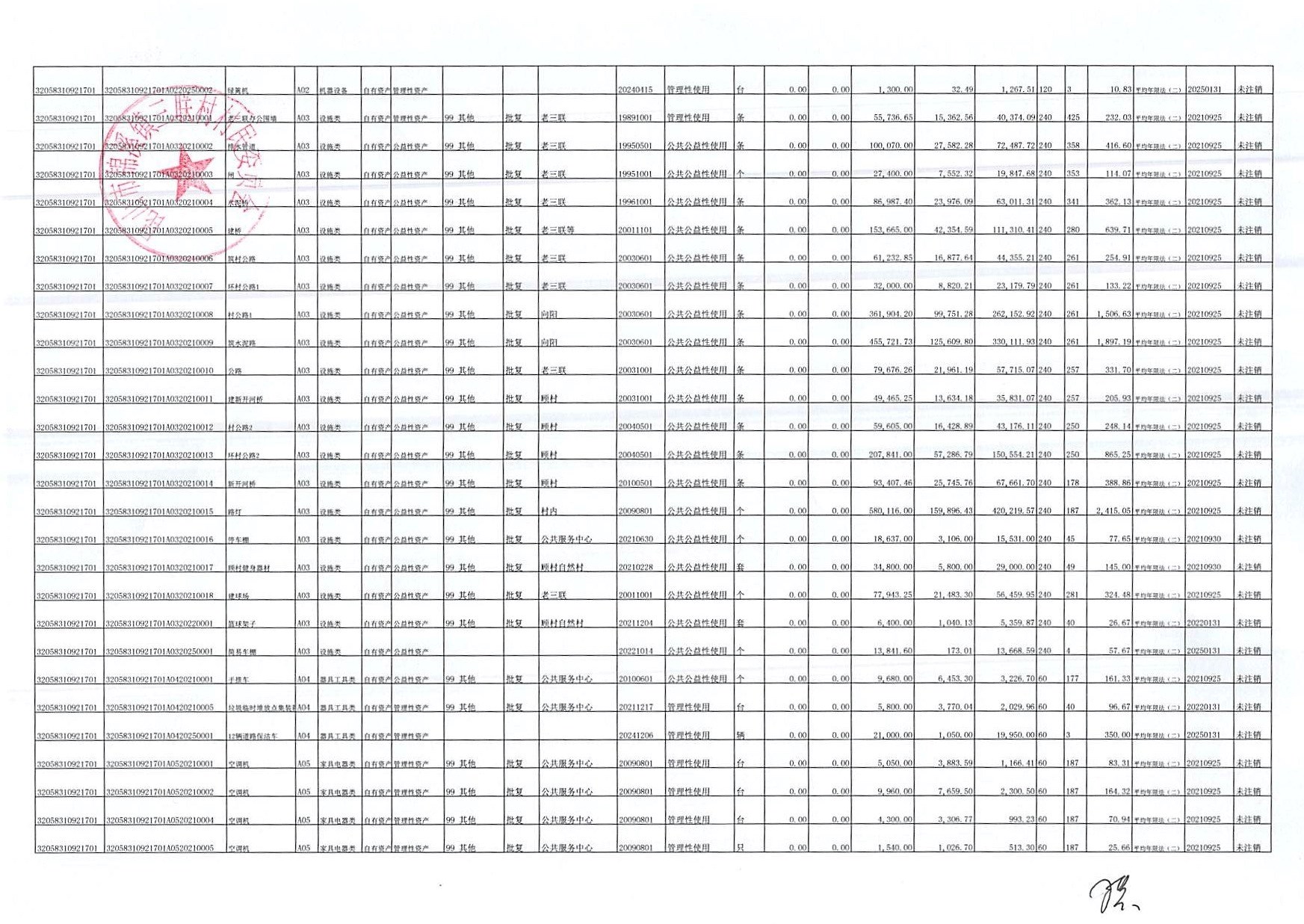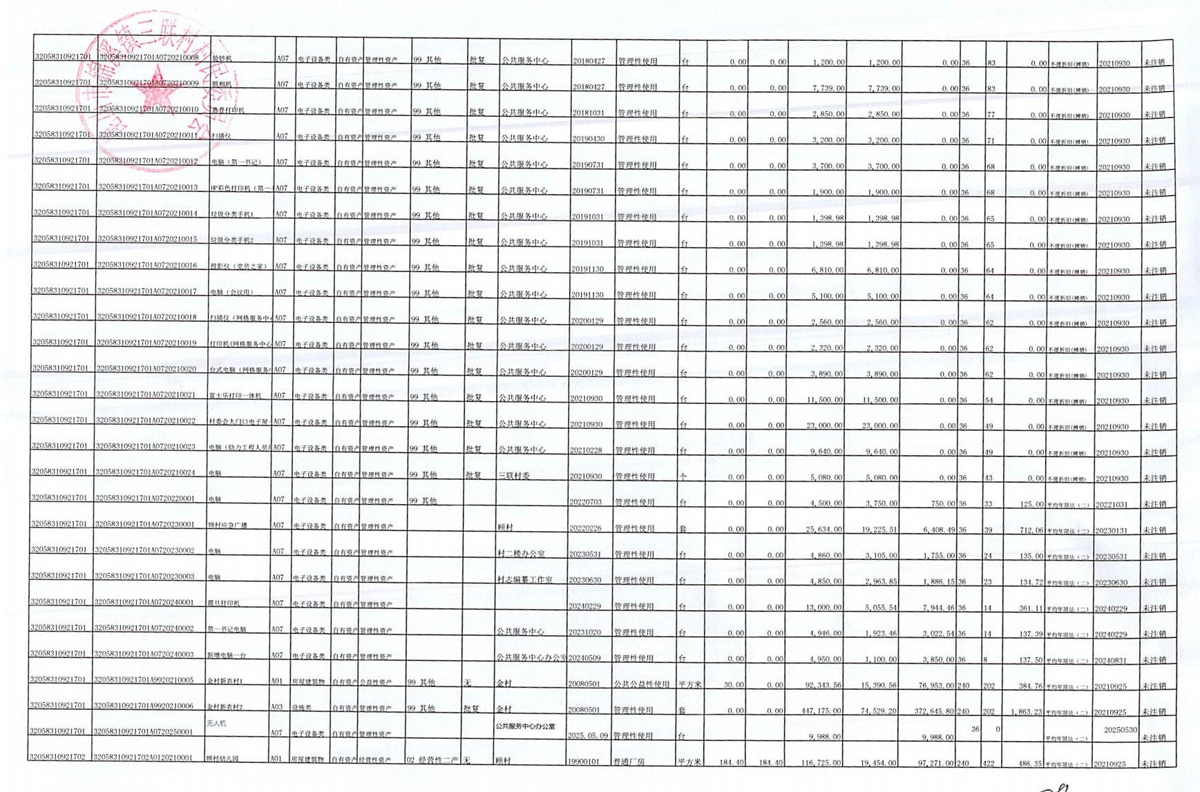村盖章事项名录