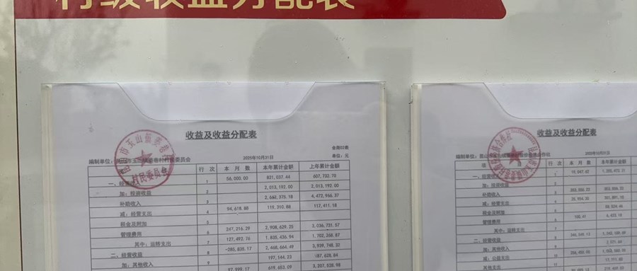 姜巷村村委会2025年11月份财务公开