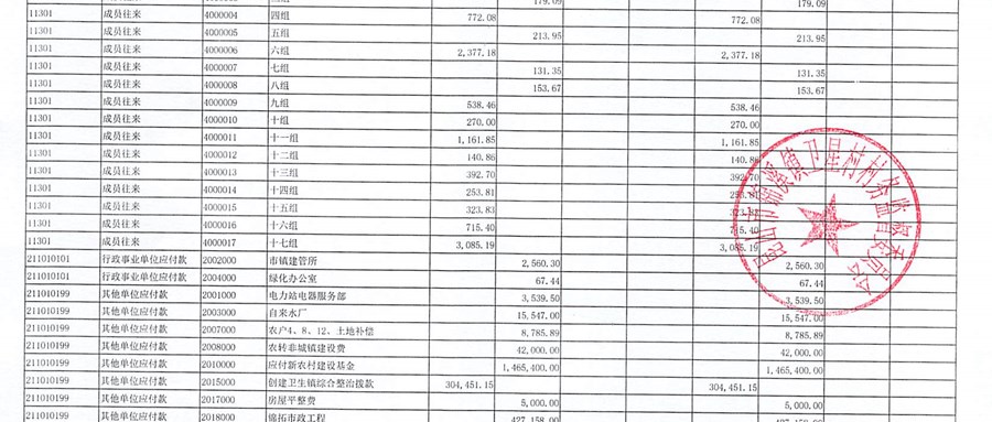 卫星村2025年10月财务公开:单位往来
