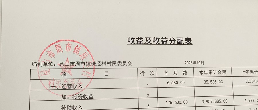 2025年11月珠泾村村民委员会财务公开(定期公开)