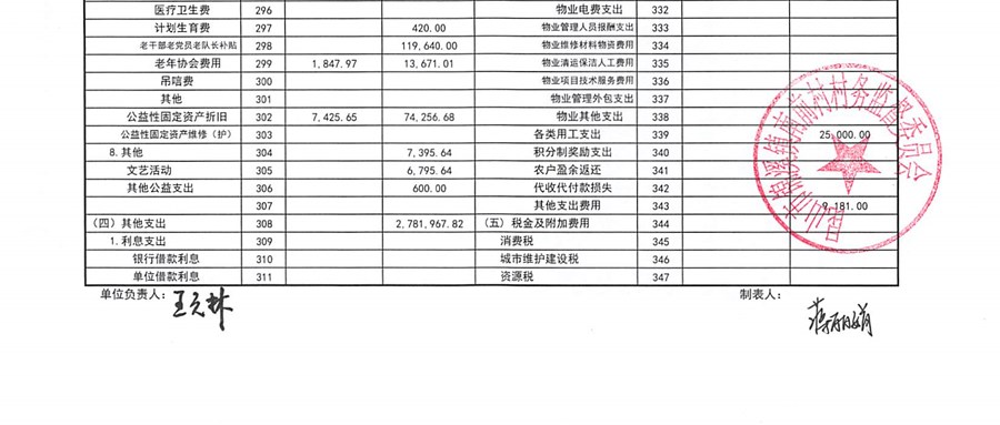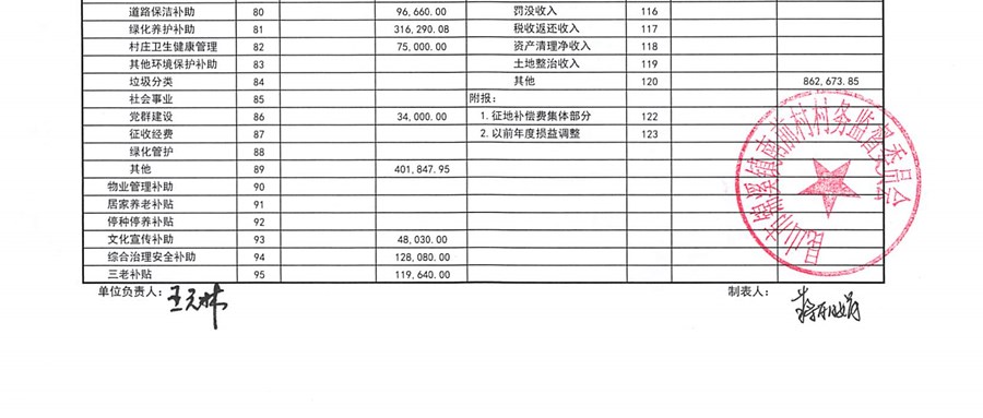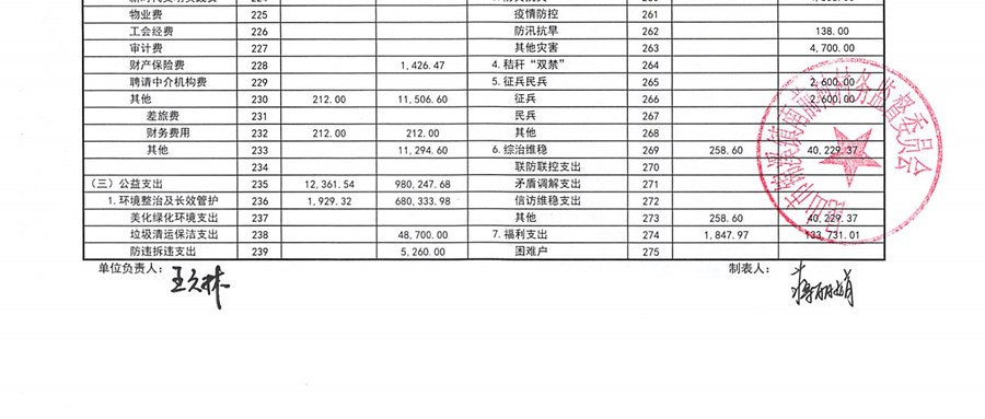 南前村村委会10月份财务公开