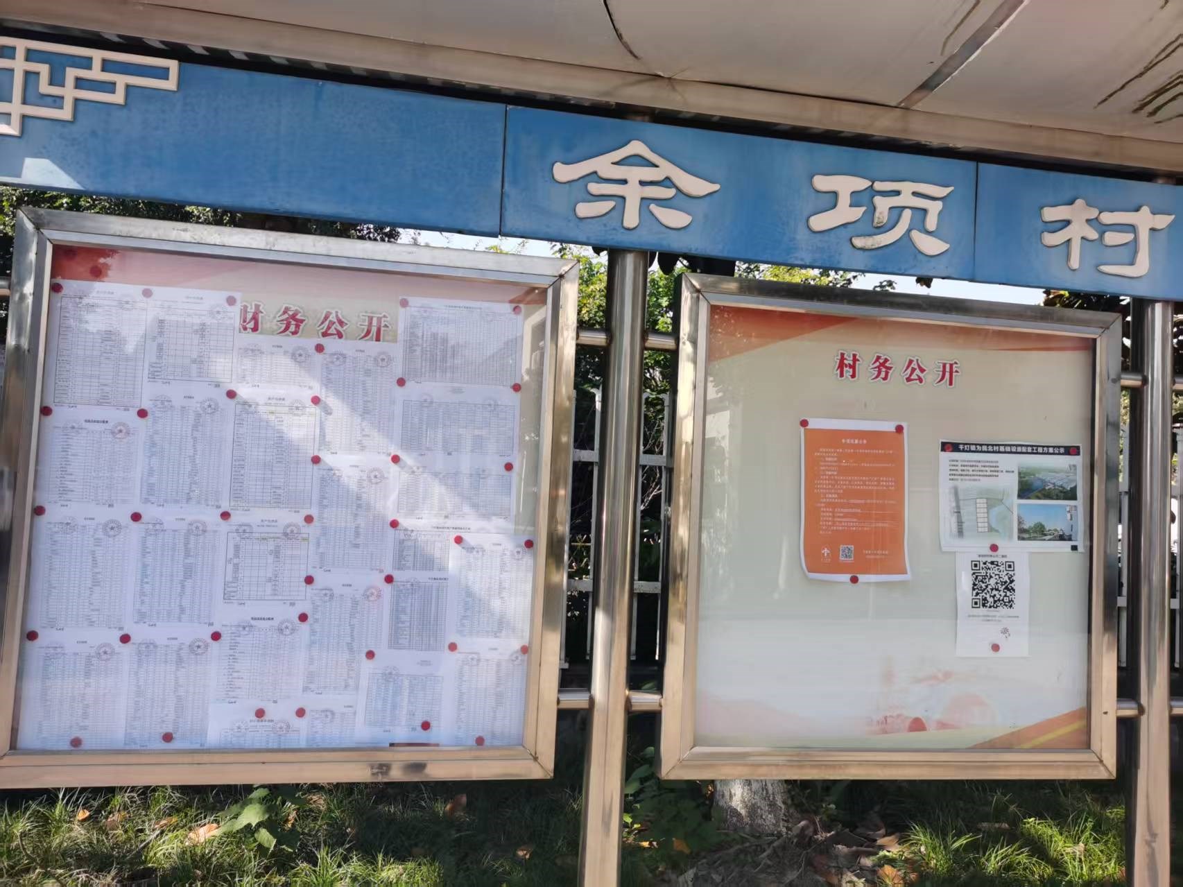 2025年10月余项村、股份经济合作社财务公开公示栏照片