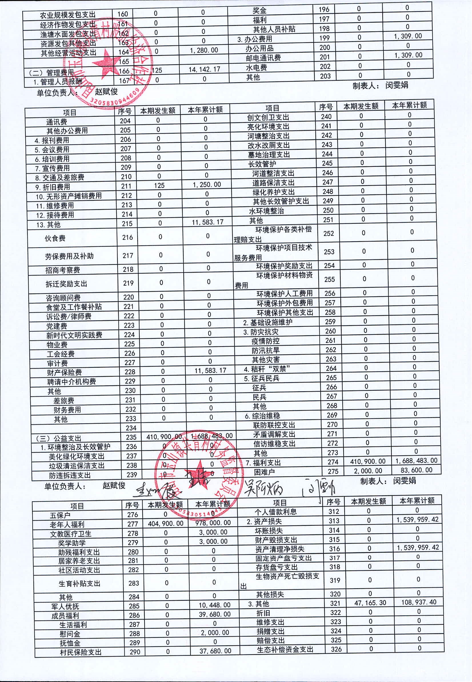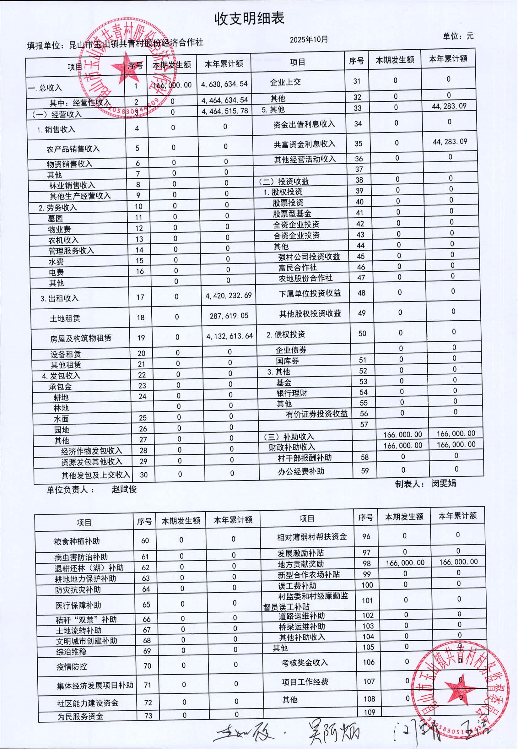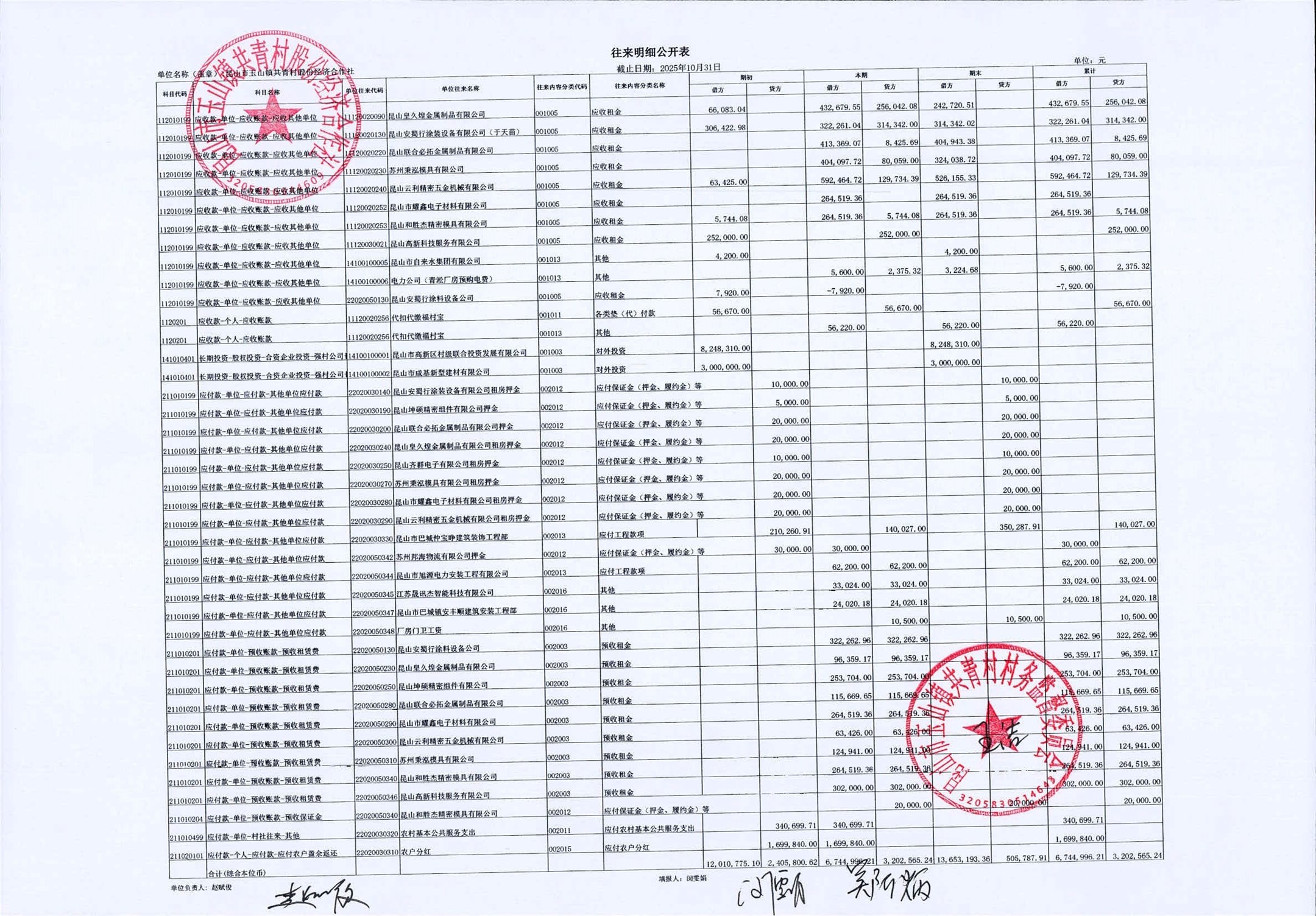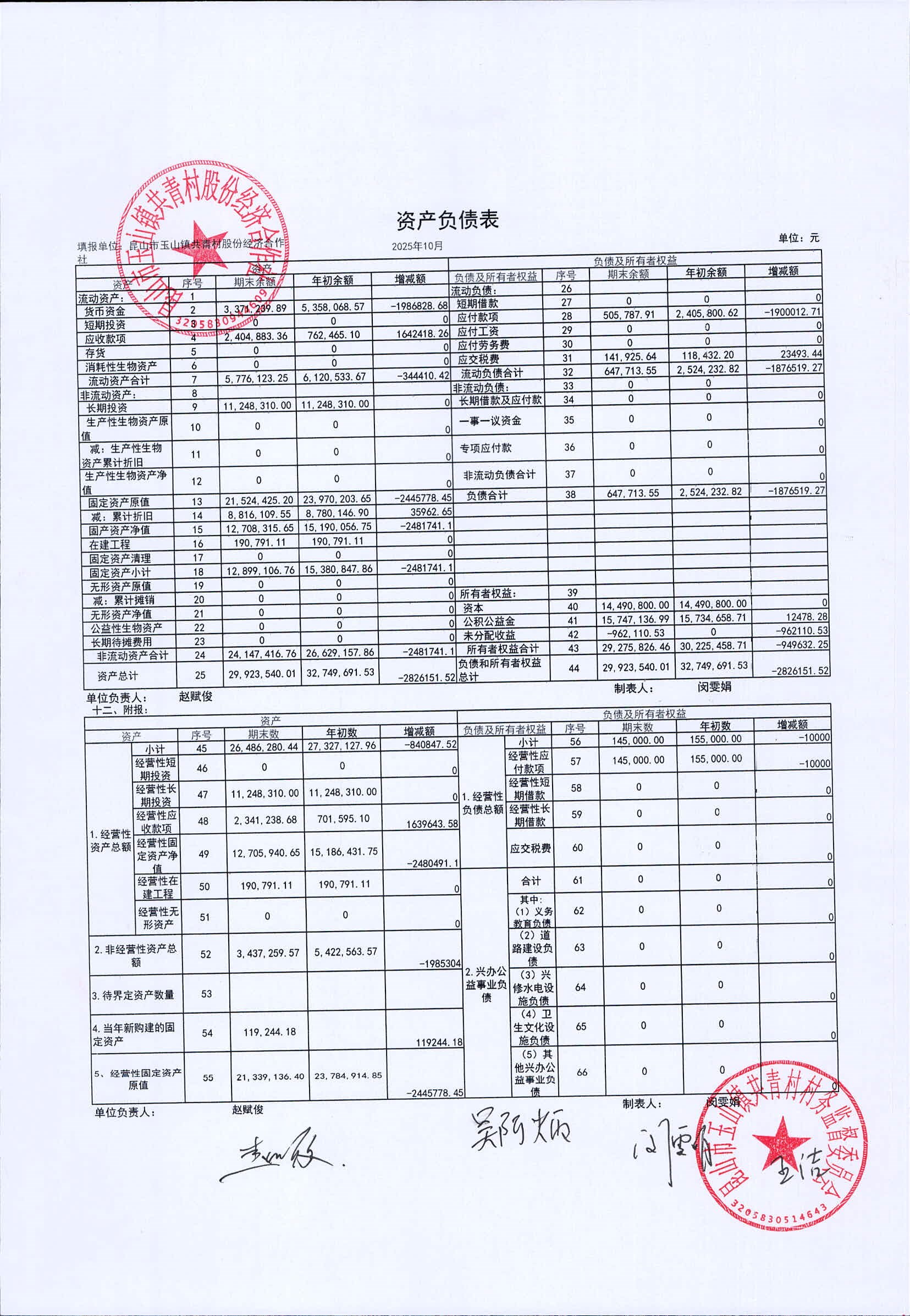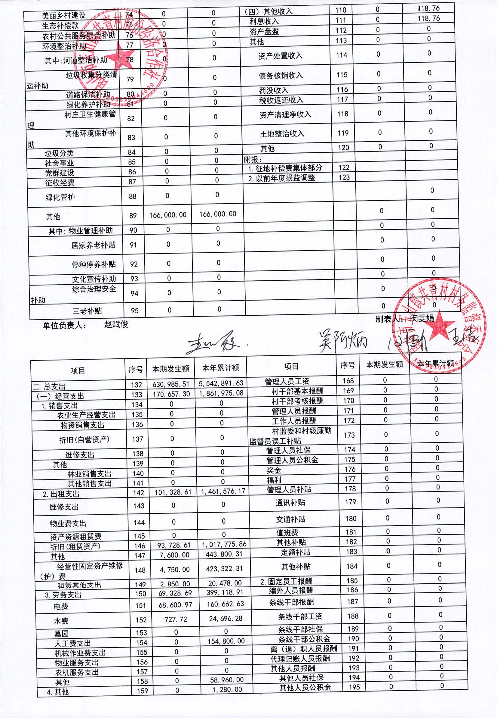 2025年11月共青村经济合作社财务公开