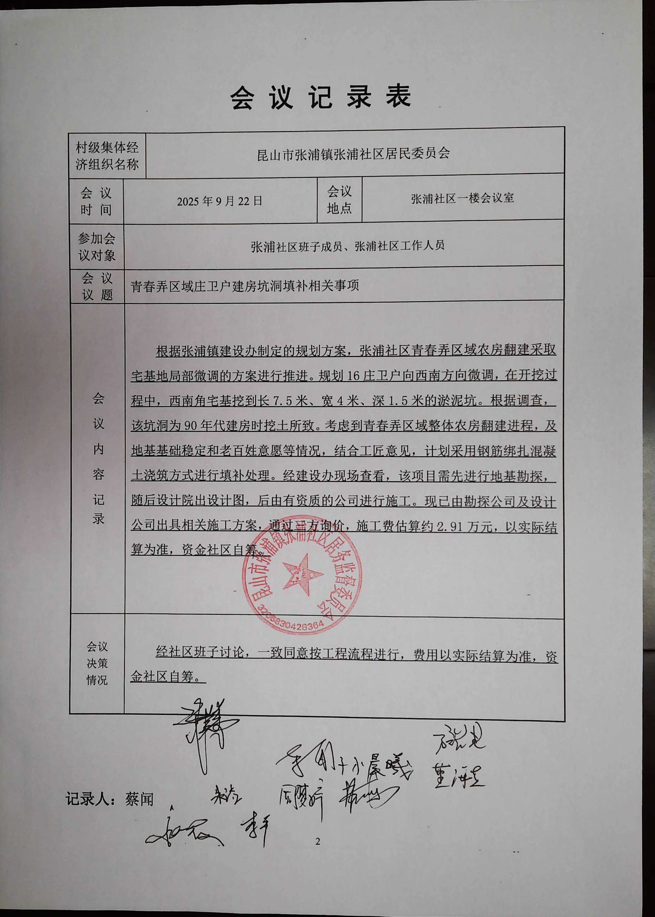 关于青春弄区域庄卫户建房坑洞填补相关事项会议决策