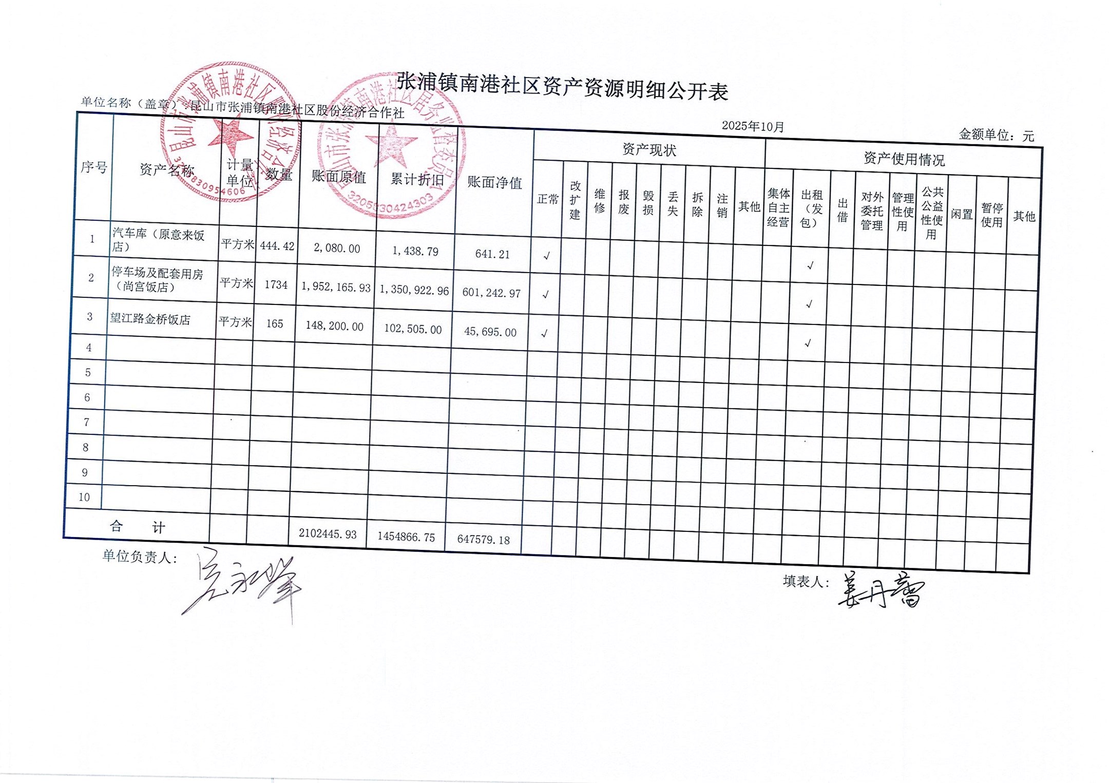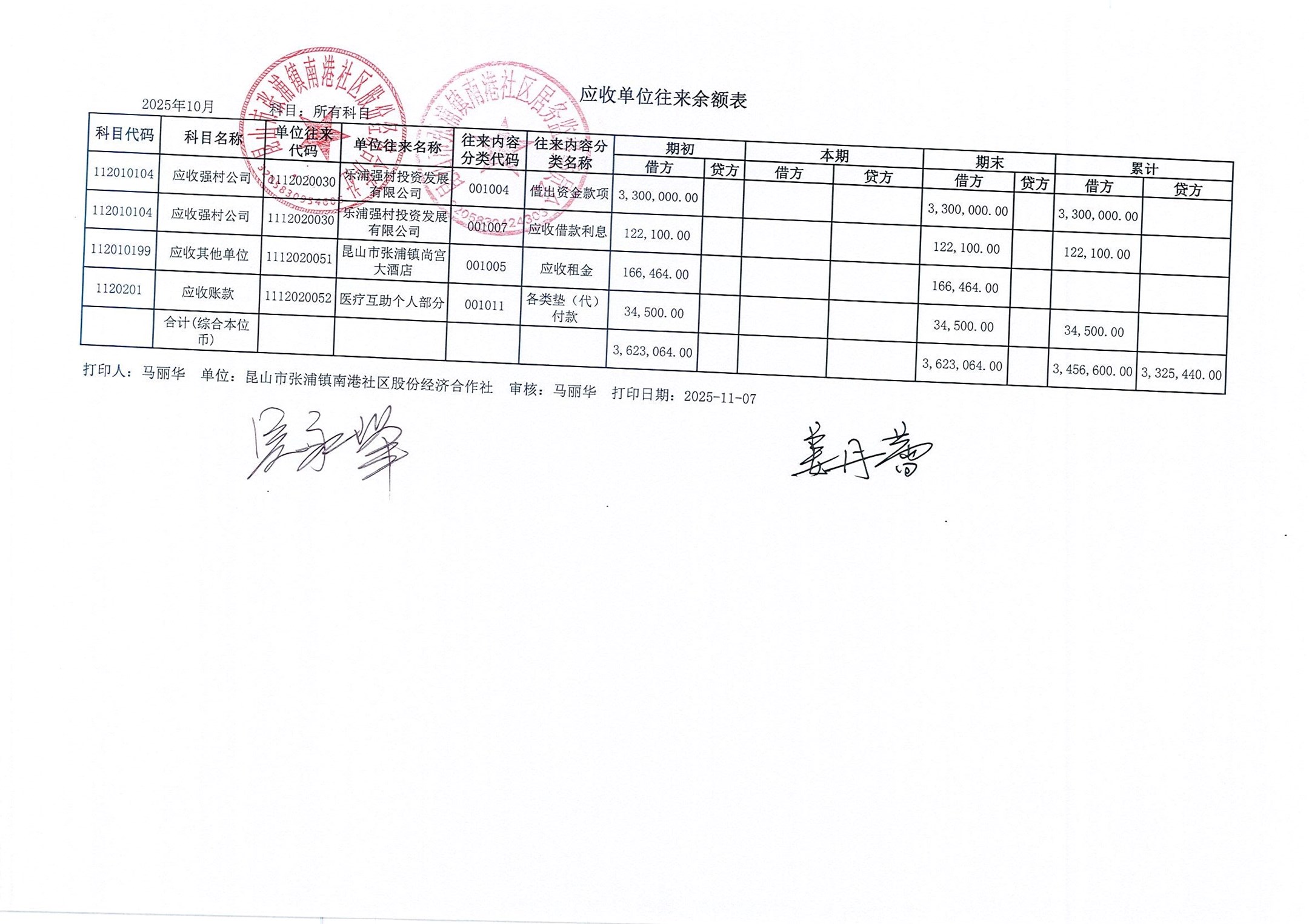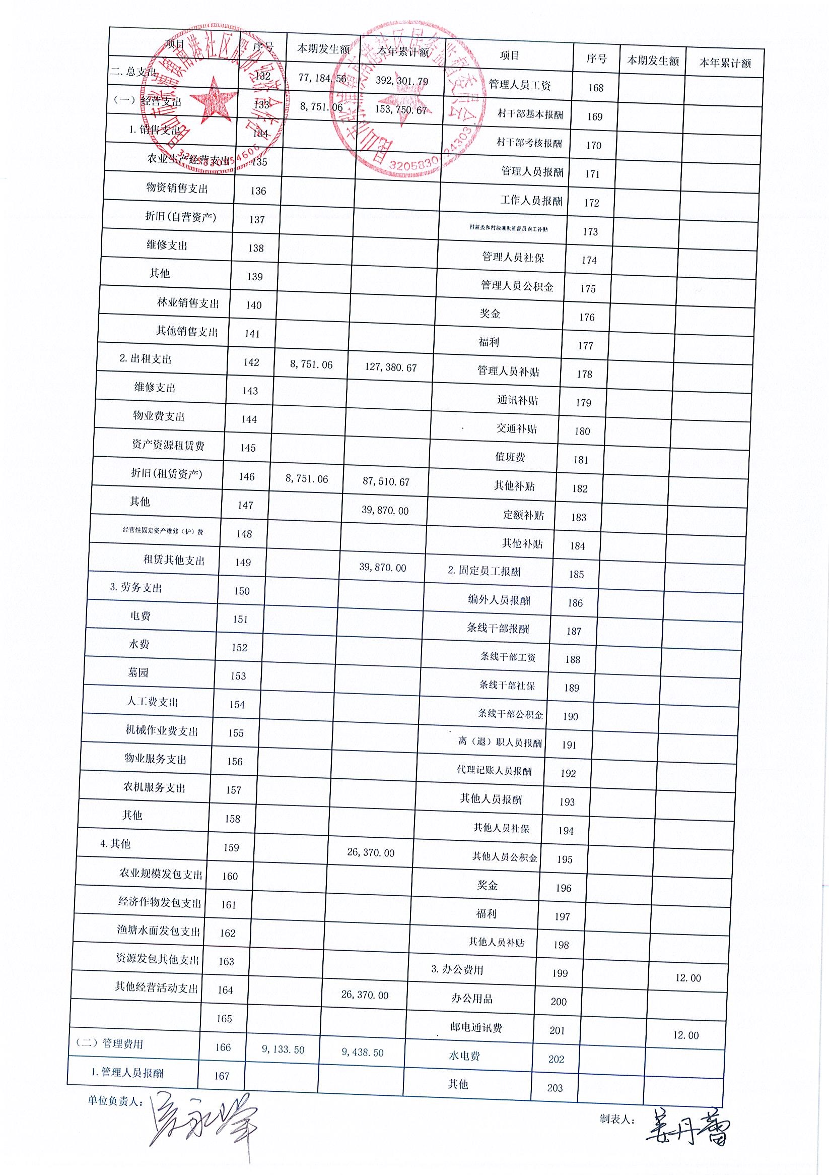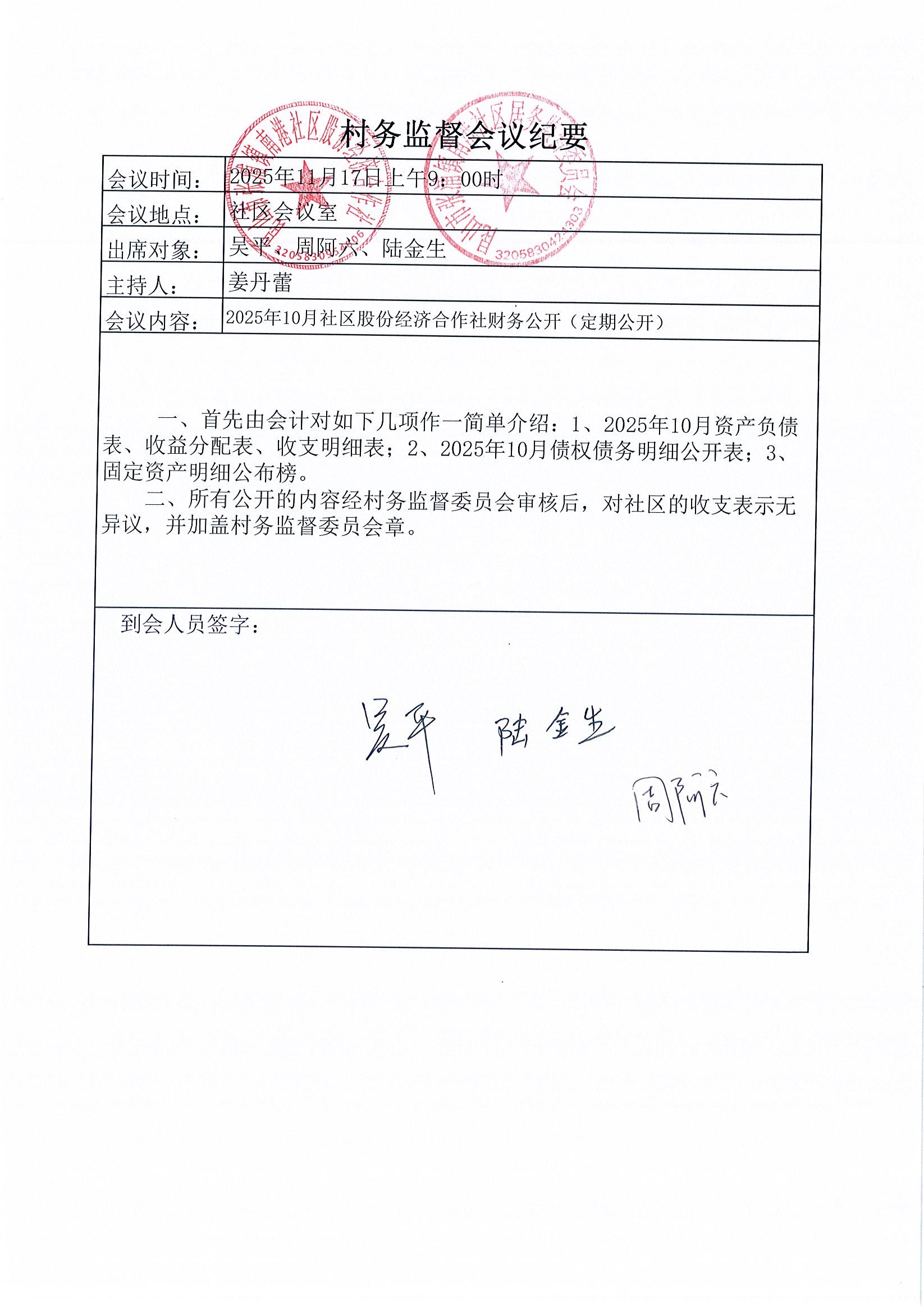 南港社区股份经济合作社2025年10月财务公开(定期公开)