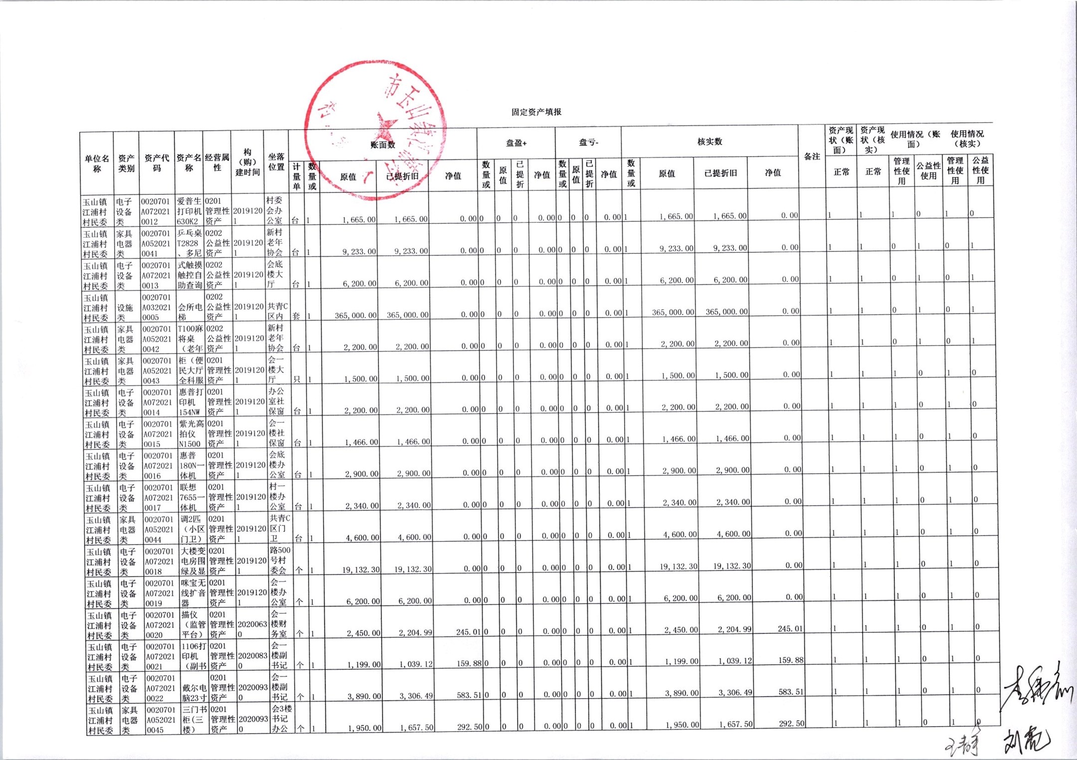 村盖章事项名录