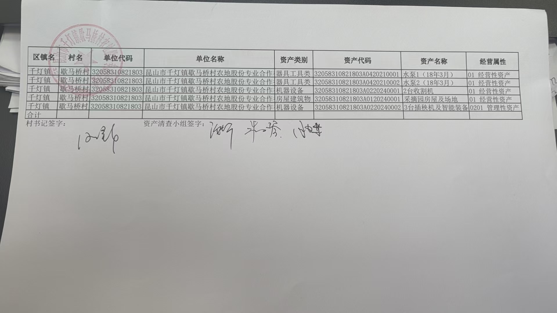 清产核资清查结果公示(农地合作社)