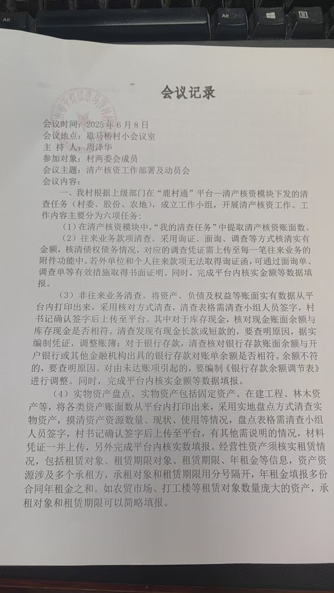 成立歇马桥村农村集体资产“清产核资”工作小组及会议记录公示