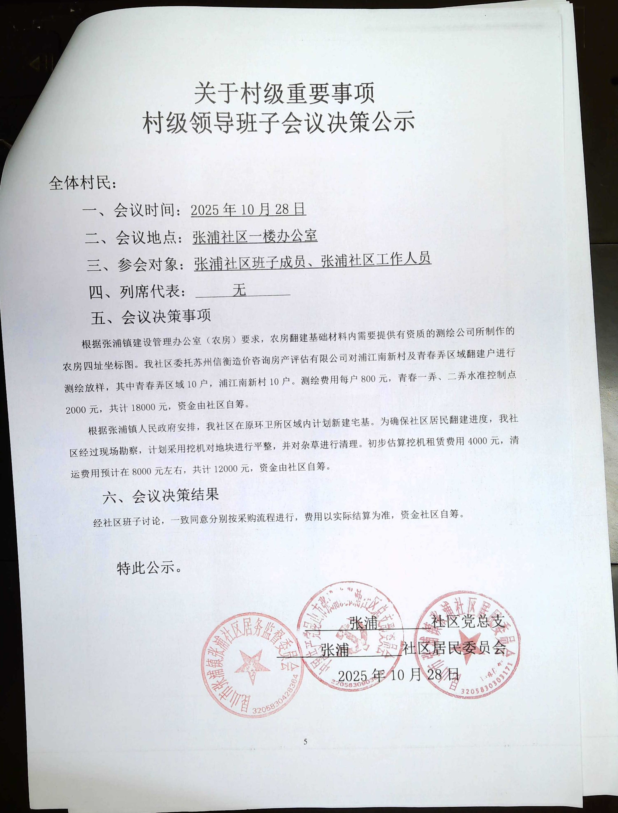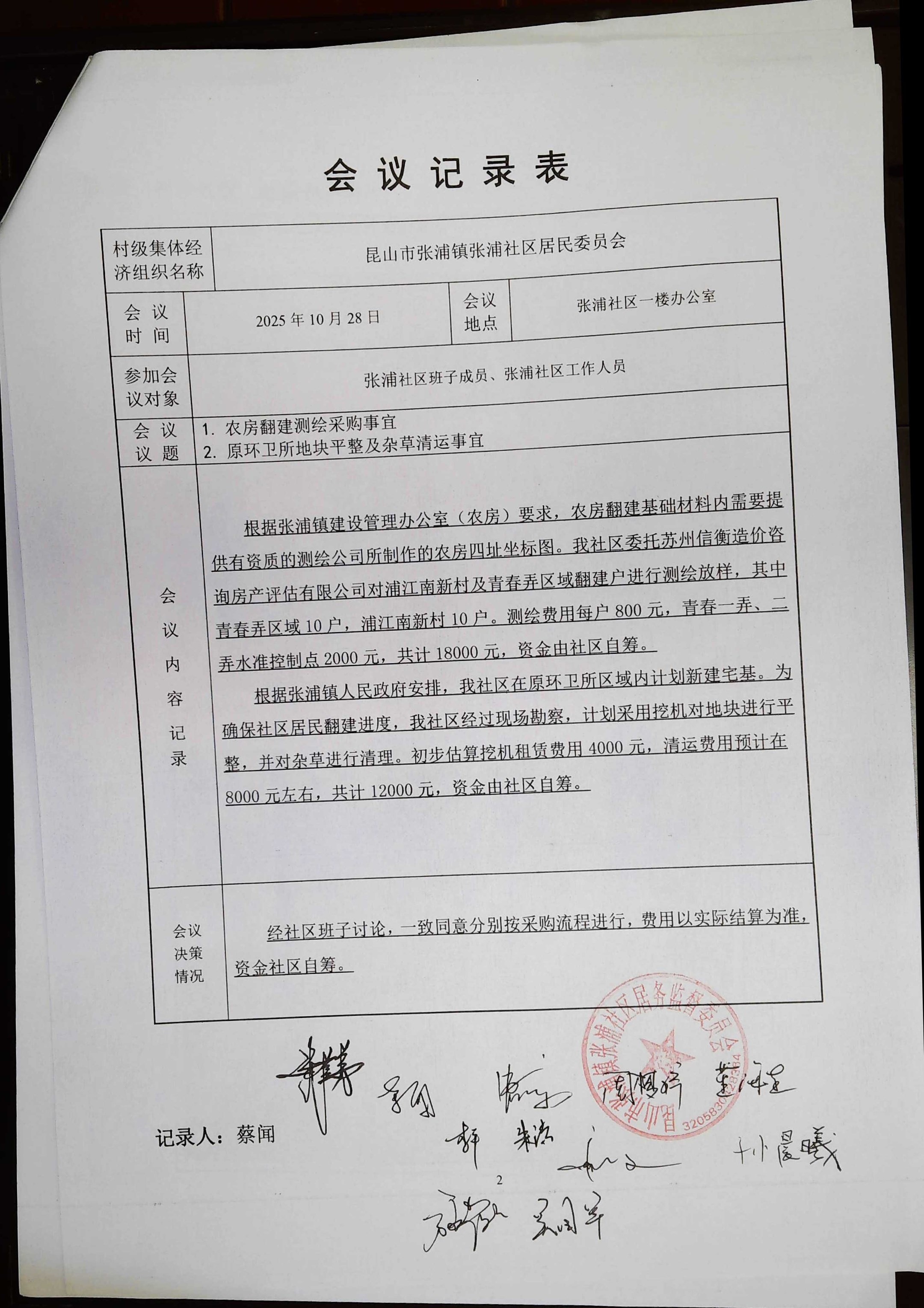 关于农房翻建测绘、原环卫所地块平整及清运事项会议决策
