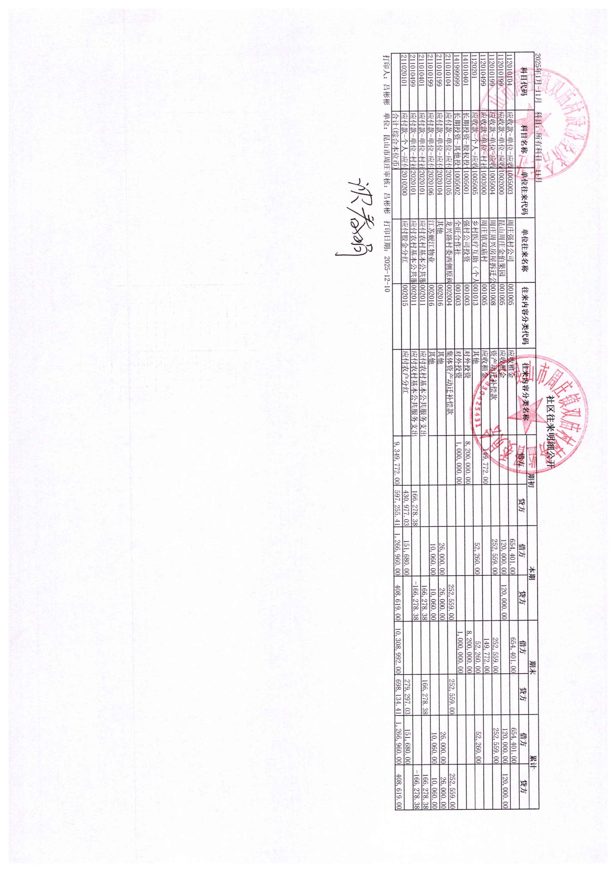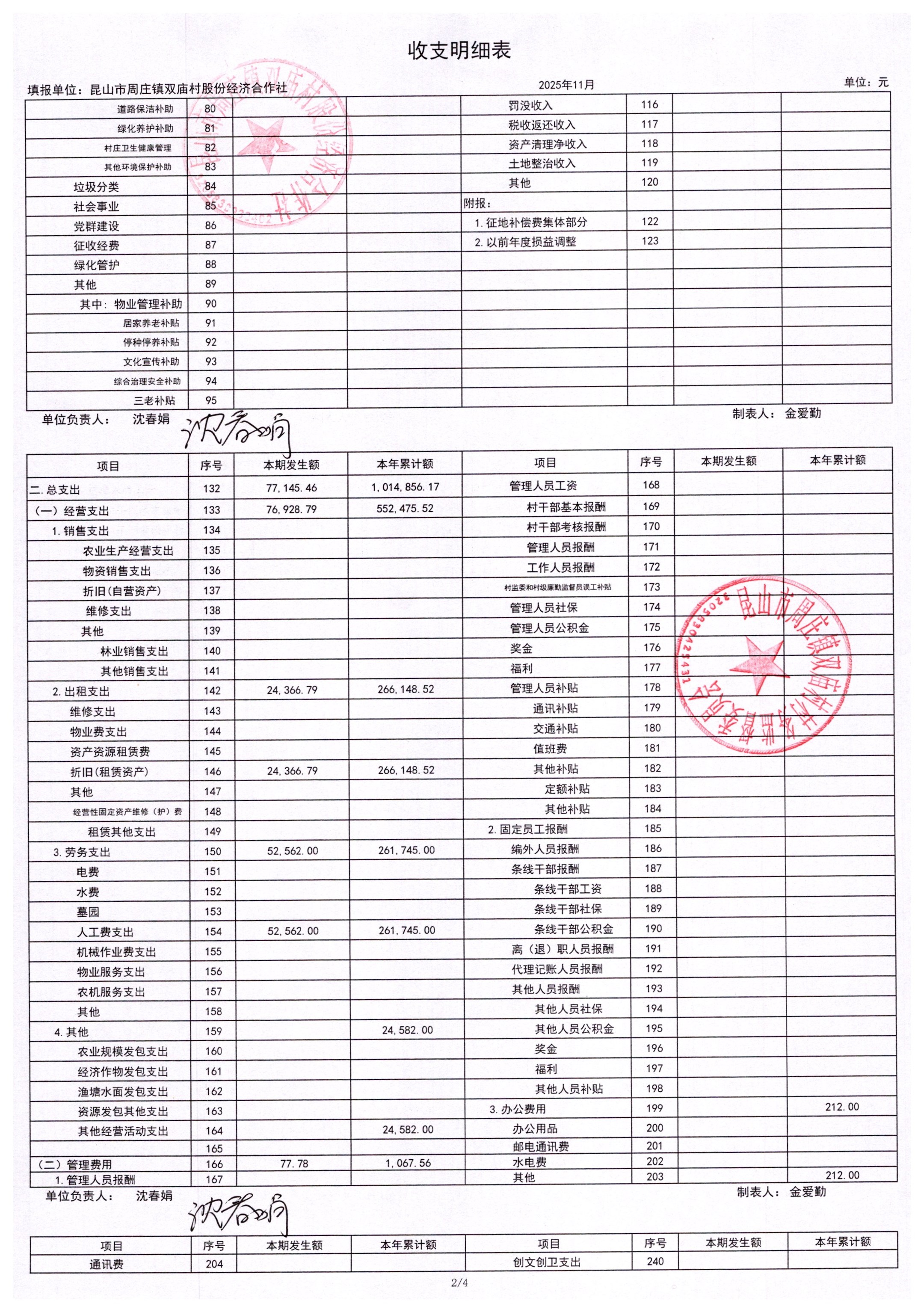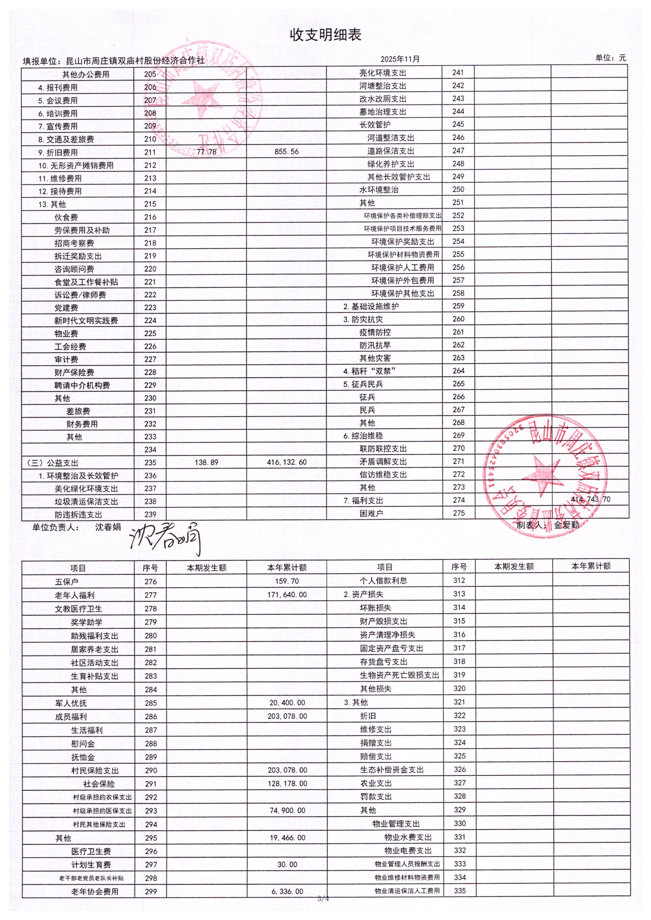 2025年11月财务公开-双庙村股份经济合作社财务公开