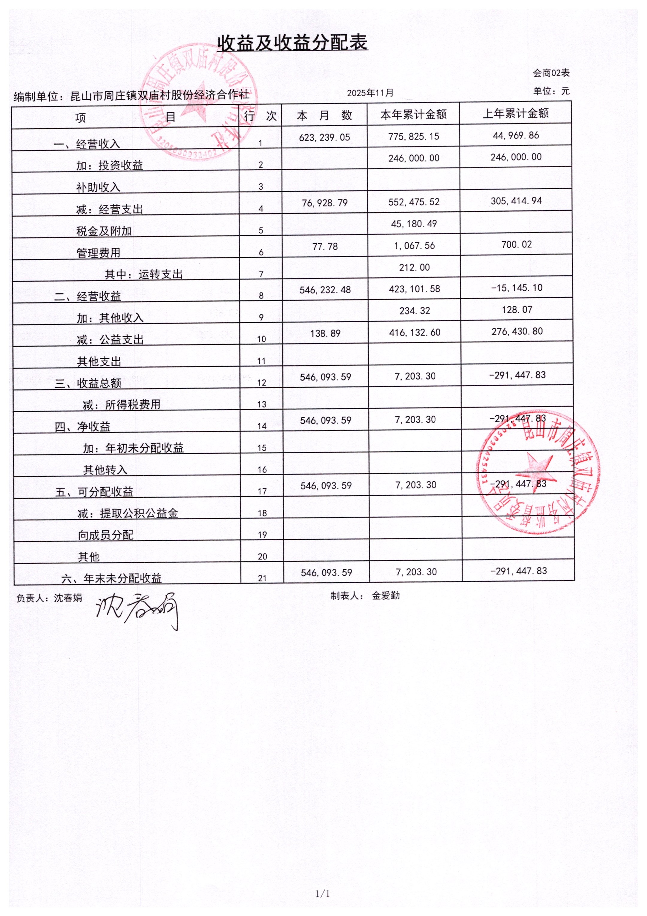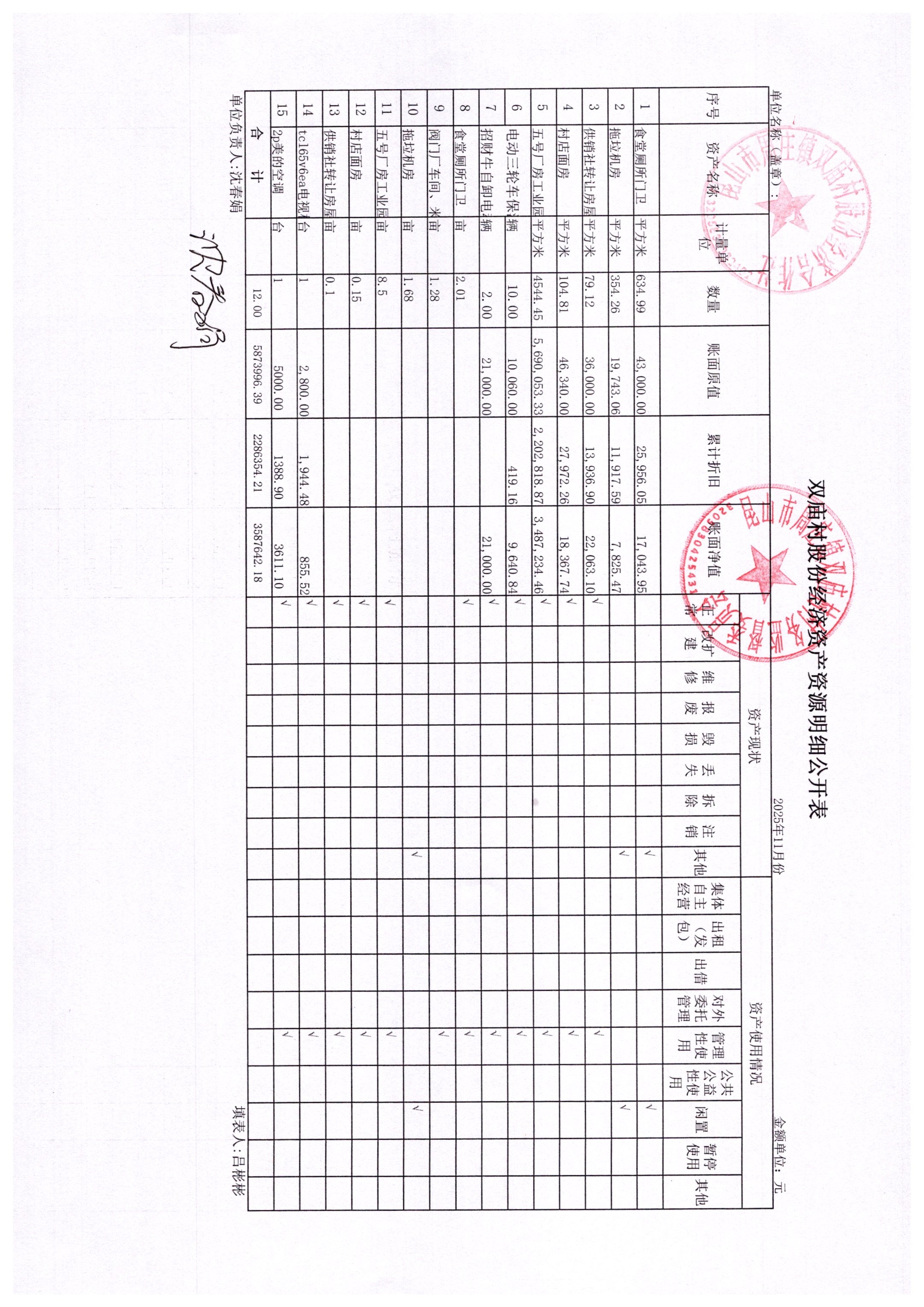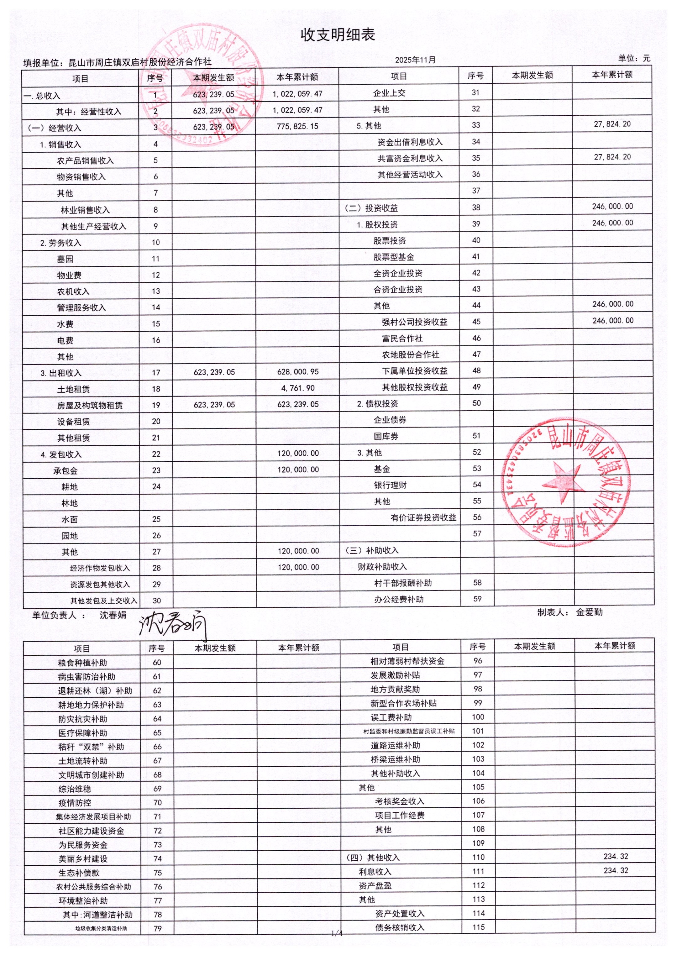 2025年11月财务公开-双庙村股份经济合作社财务公开