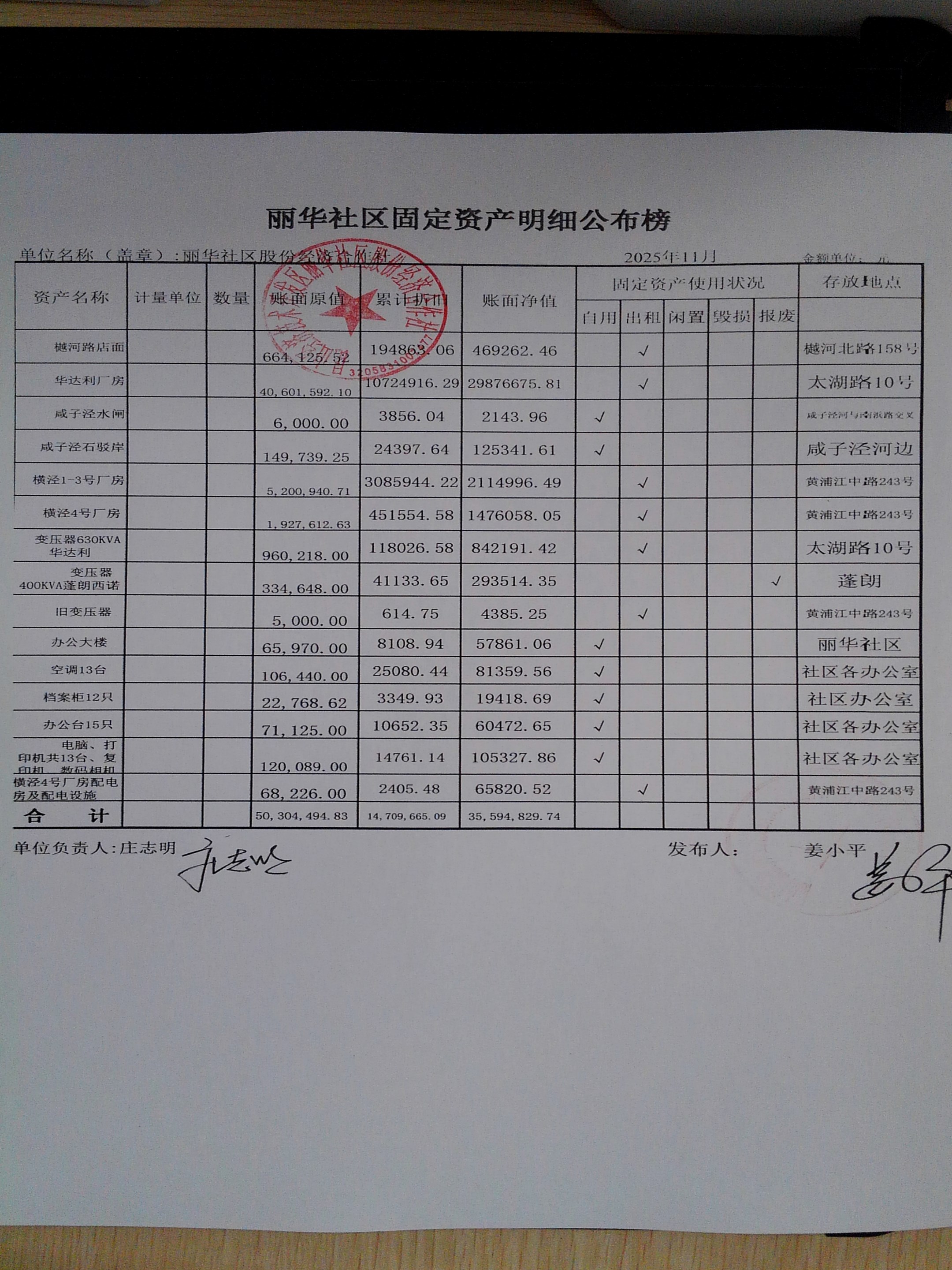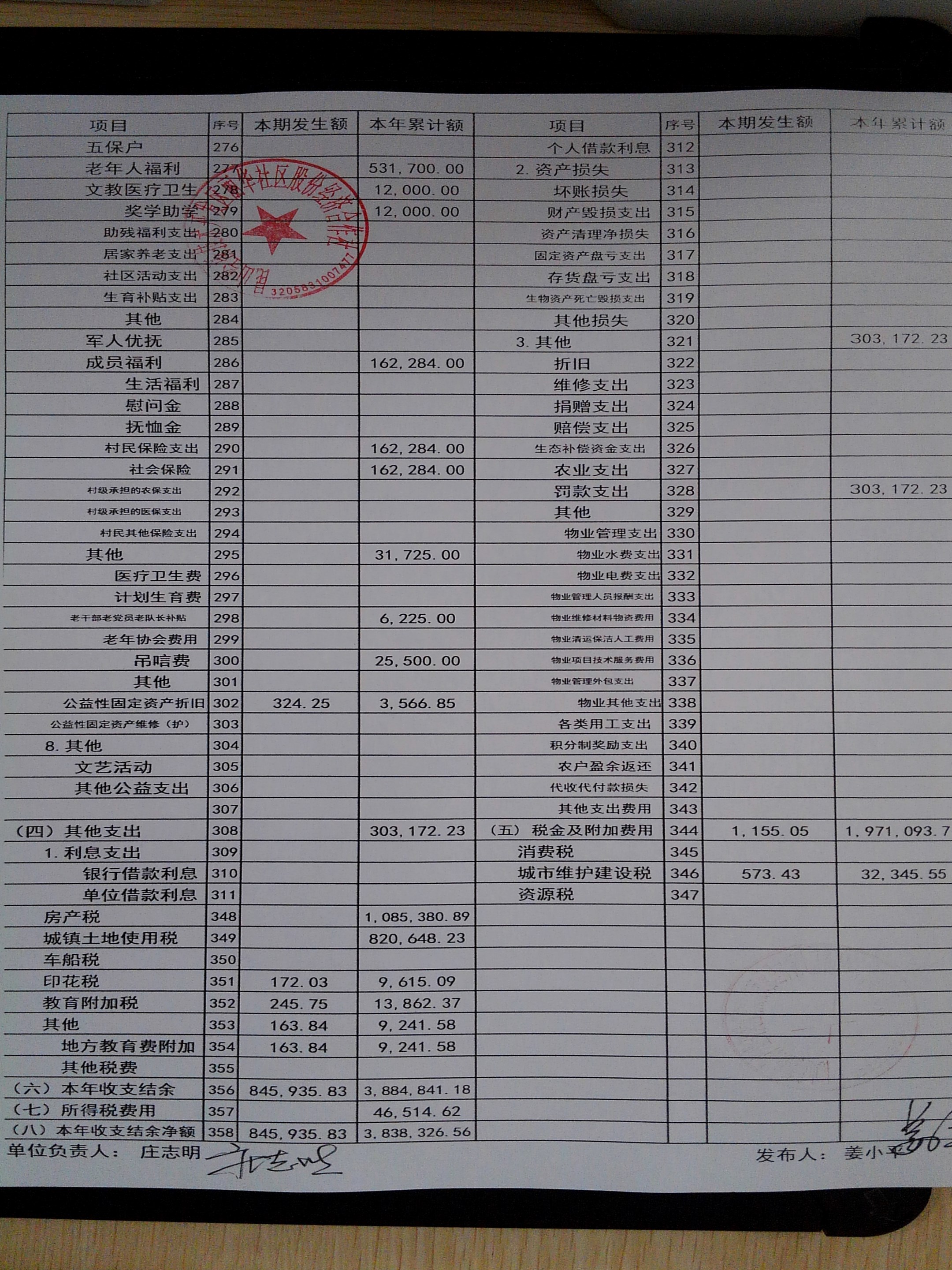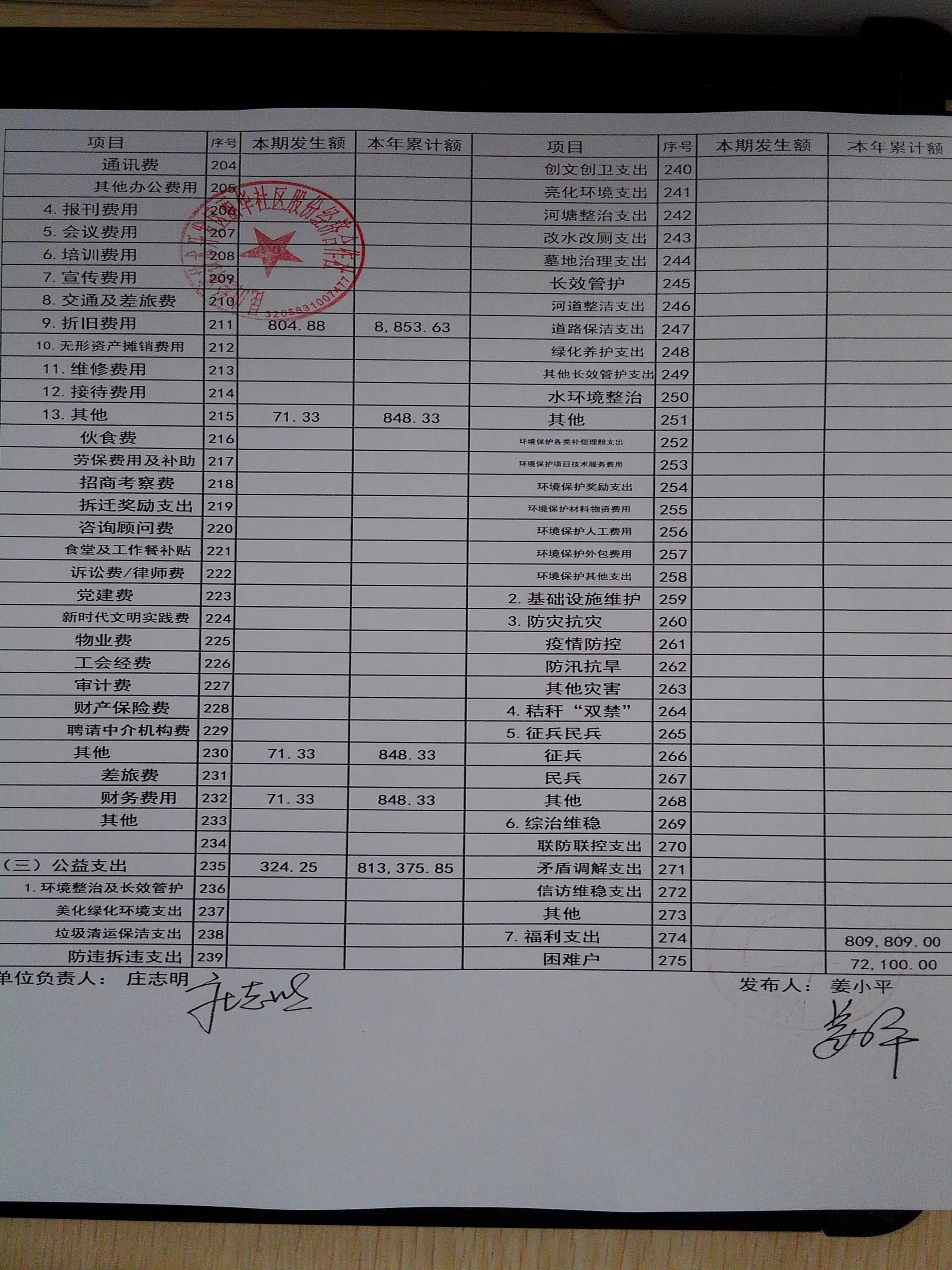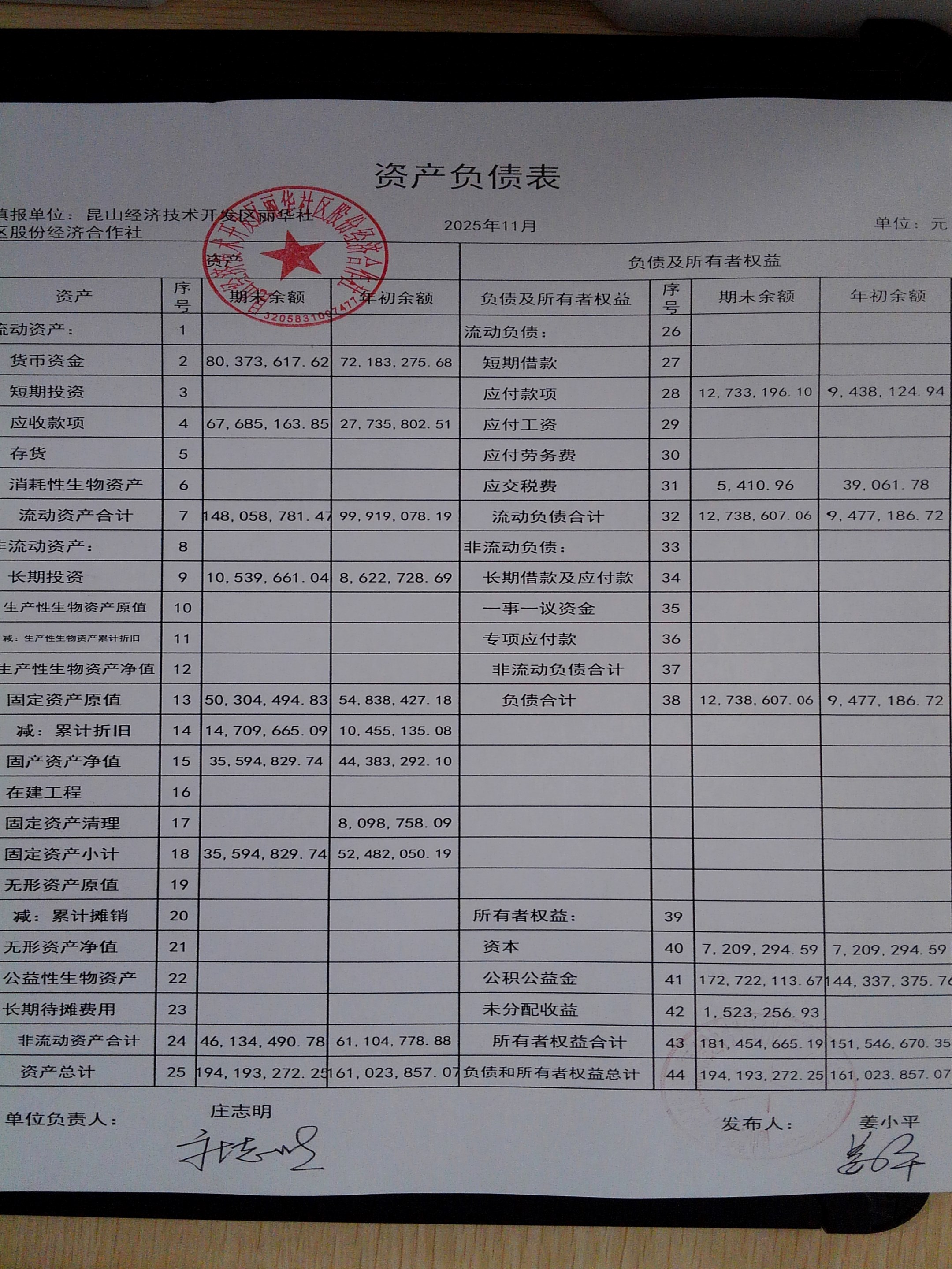 2025年11月份丽华社区股份经济合作社财务公开