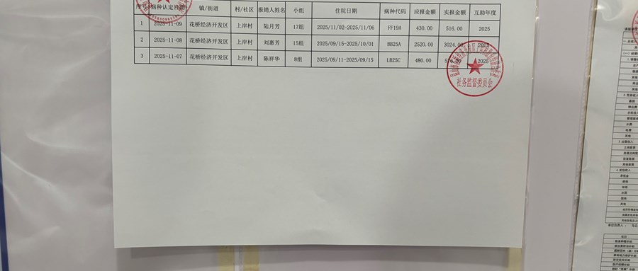 花桥经济开发区上岸村股份经济合作社2025年11月乡村医疗互助补助信息公示