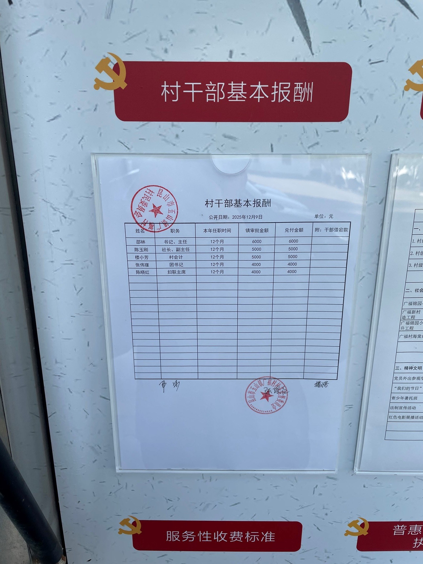 2025年村干部基本报酬12月(广福村)