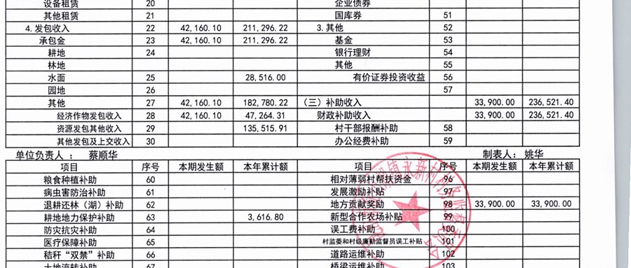 2025年11月永新村股份经济合作社财务公开