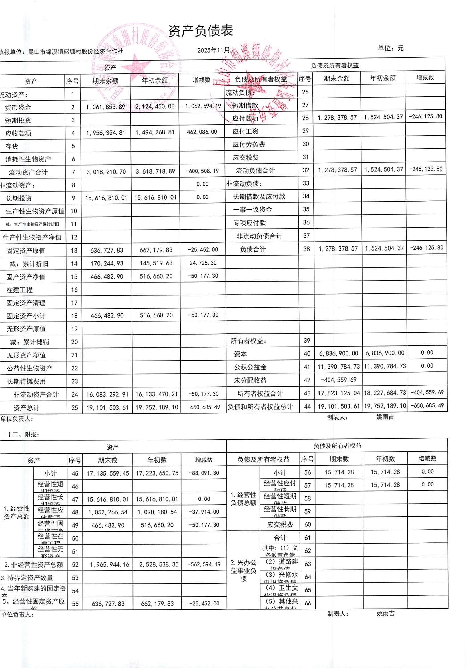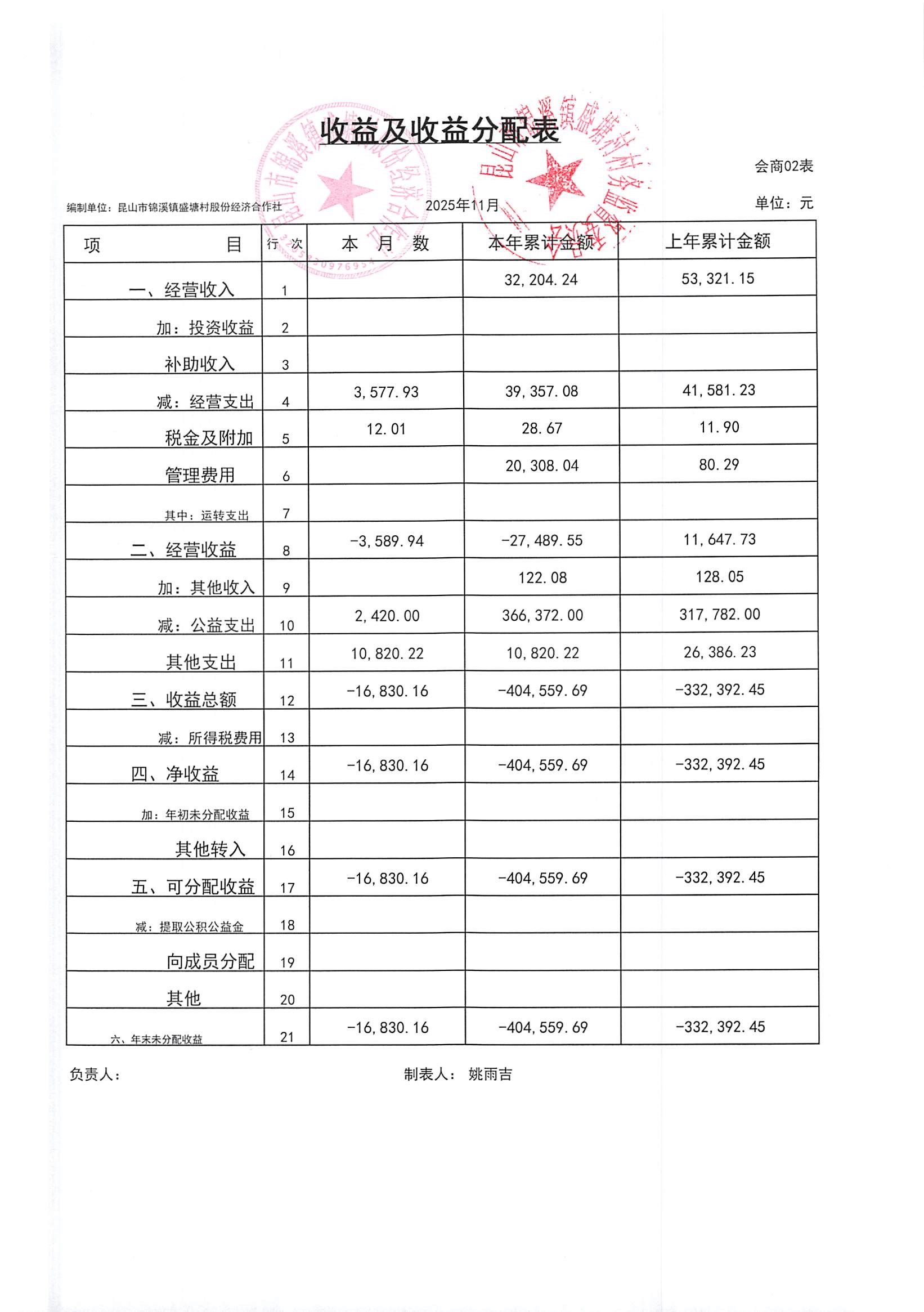 昆山市锦溪镇盛塘村2025年第四季度11月社区财务公开资料