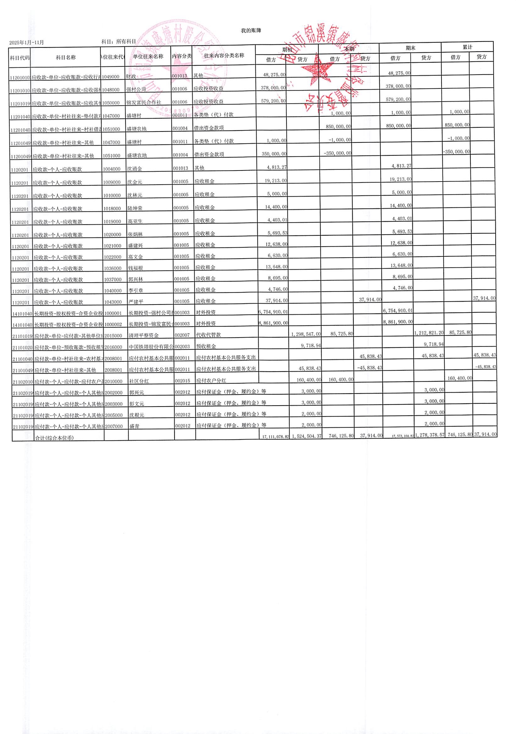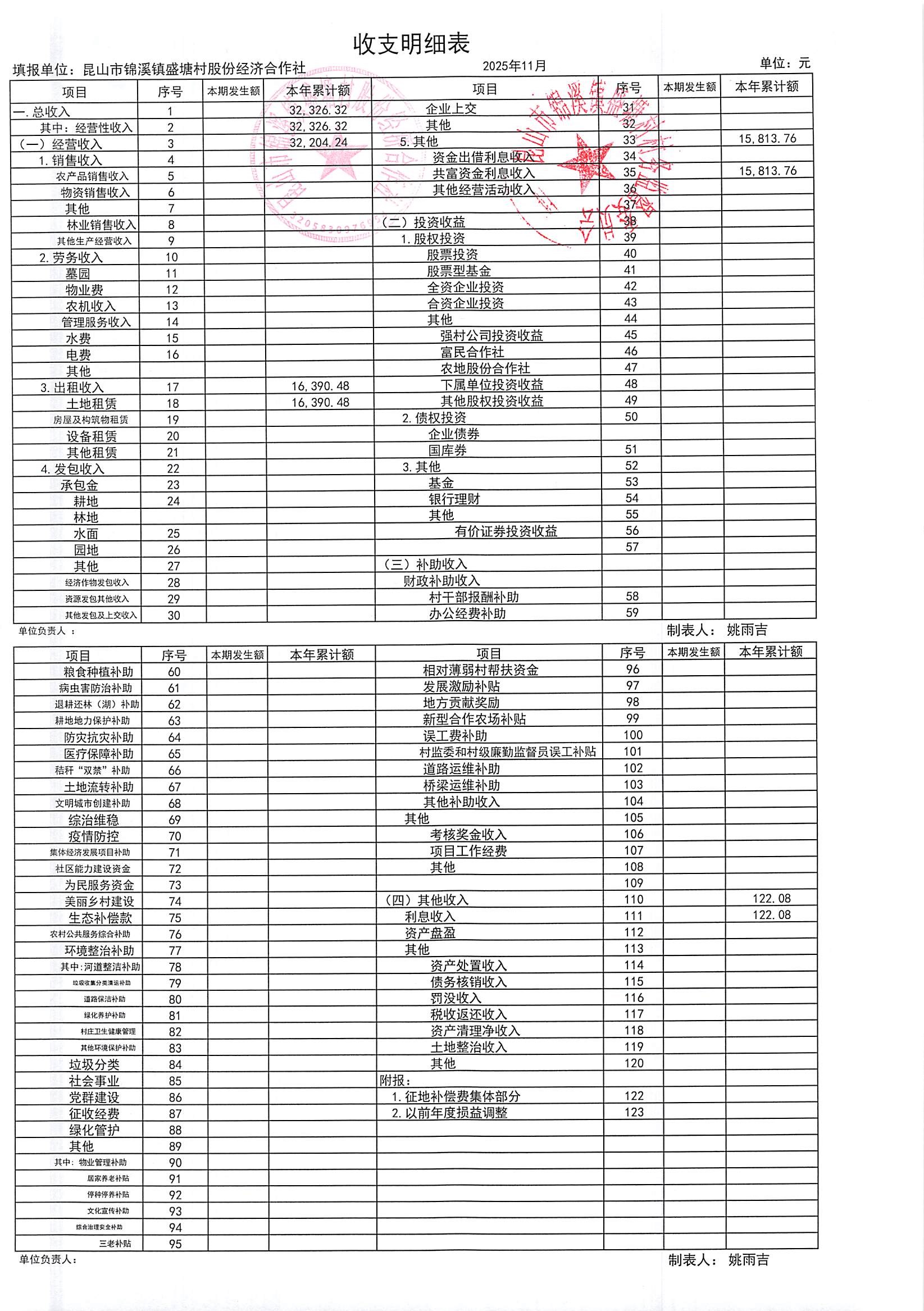 昆山锦溪镇盛塘村2025年第四季度11月社区财务公开资料