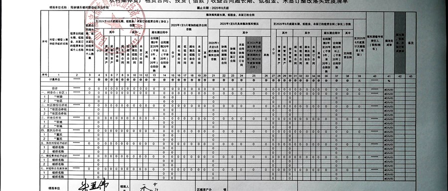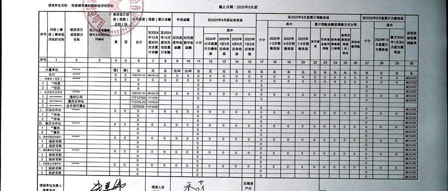2025年第三季度农村集体资产经济合同收缴进度调查表