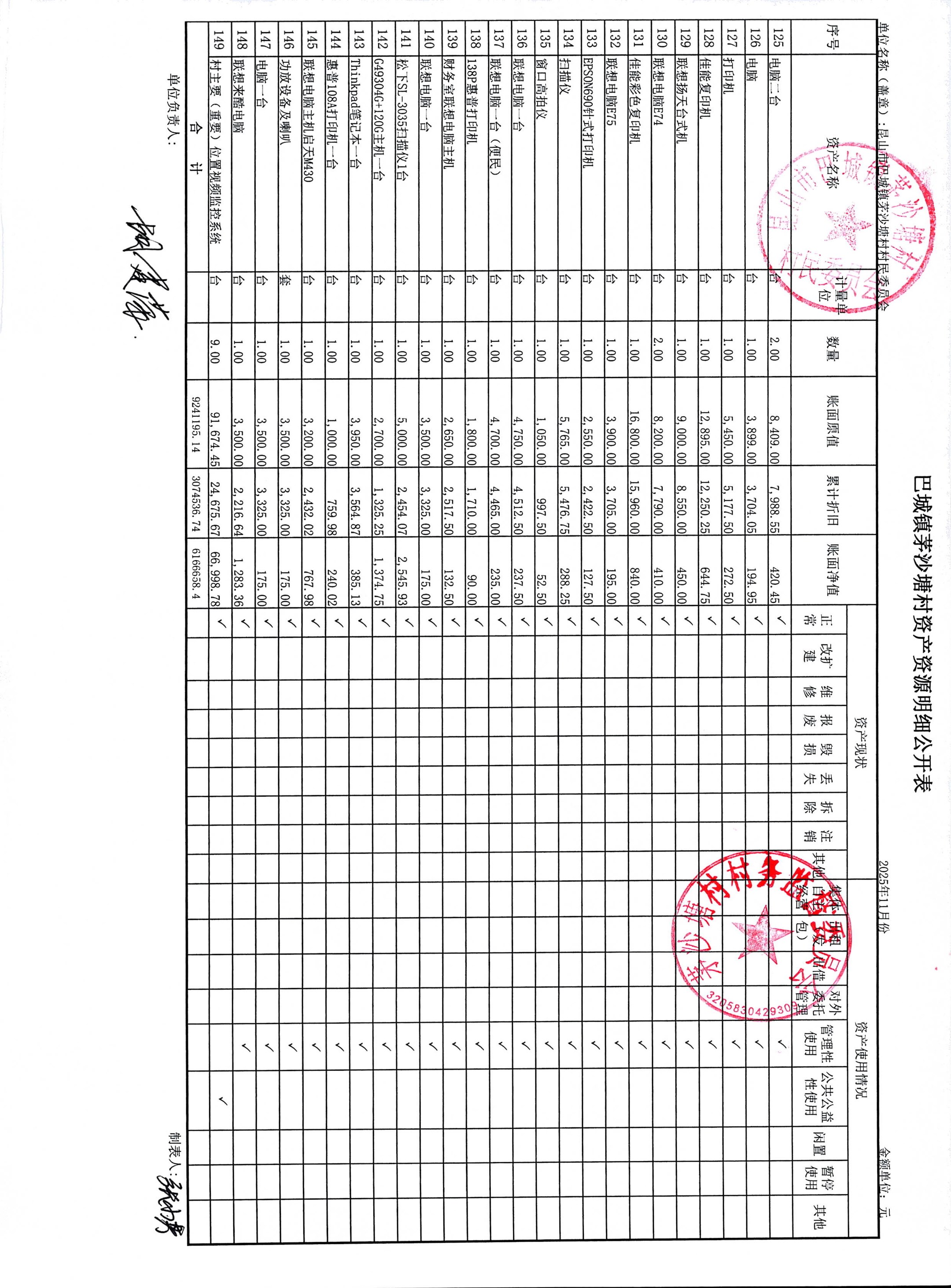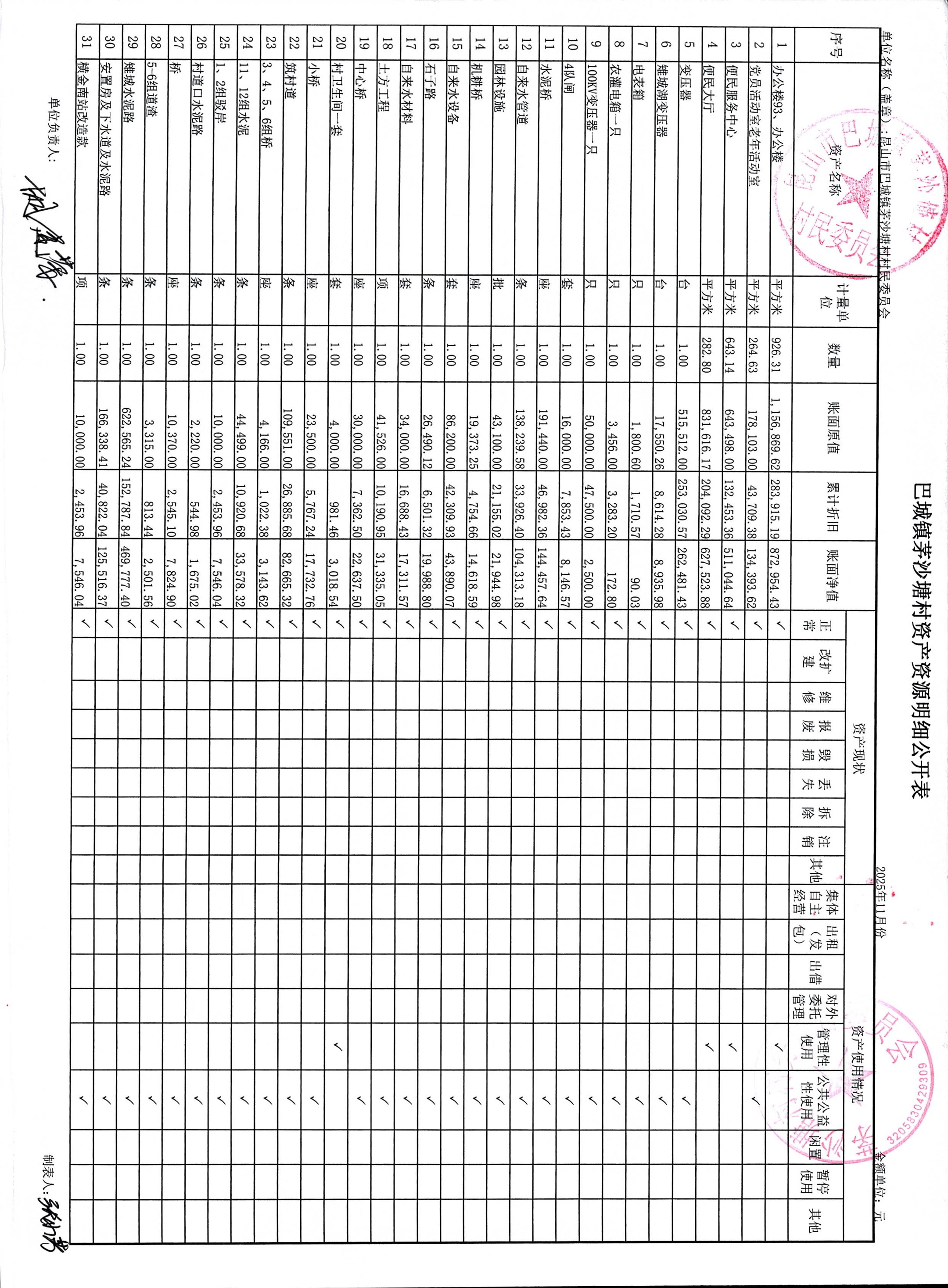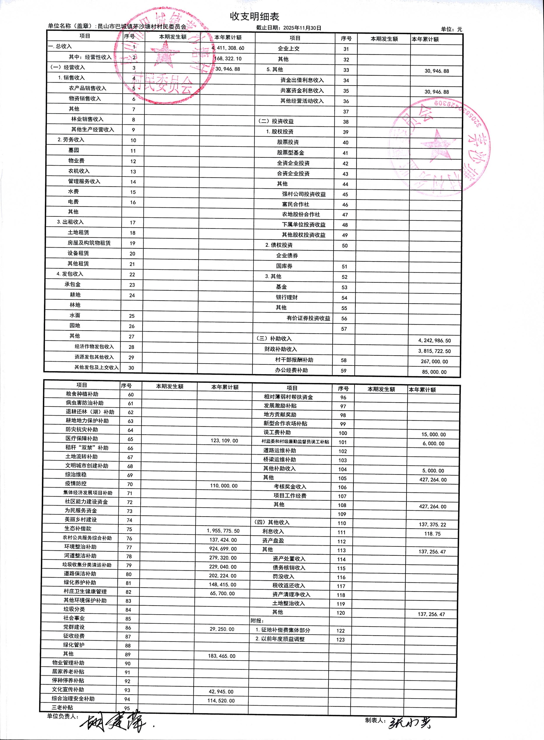 2025年12月份财务公开(村)