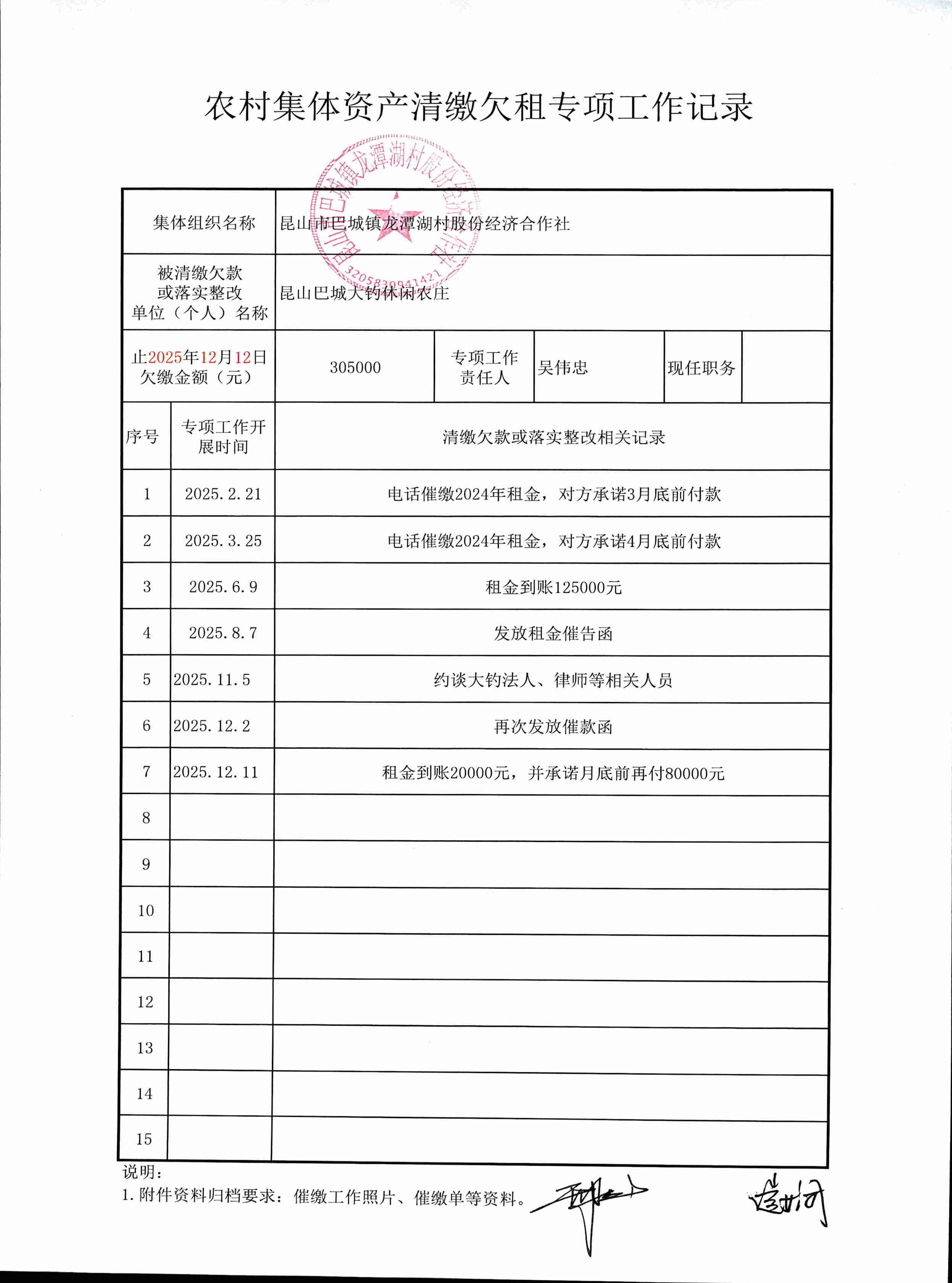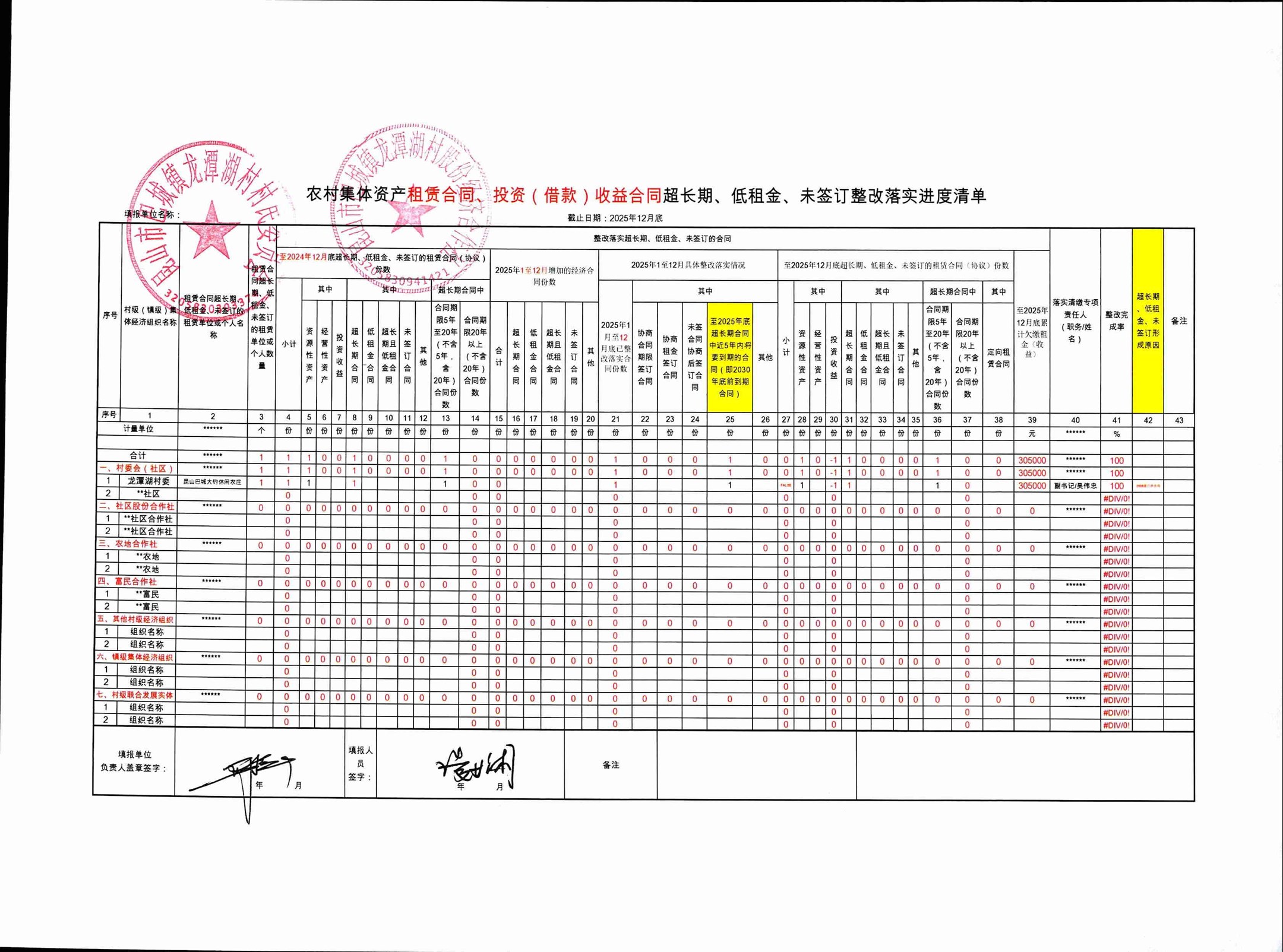 龙潭湖村农村集体资产经济合同收缴进度调查12月底