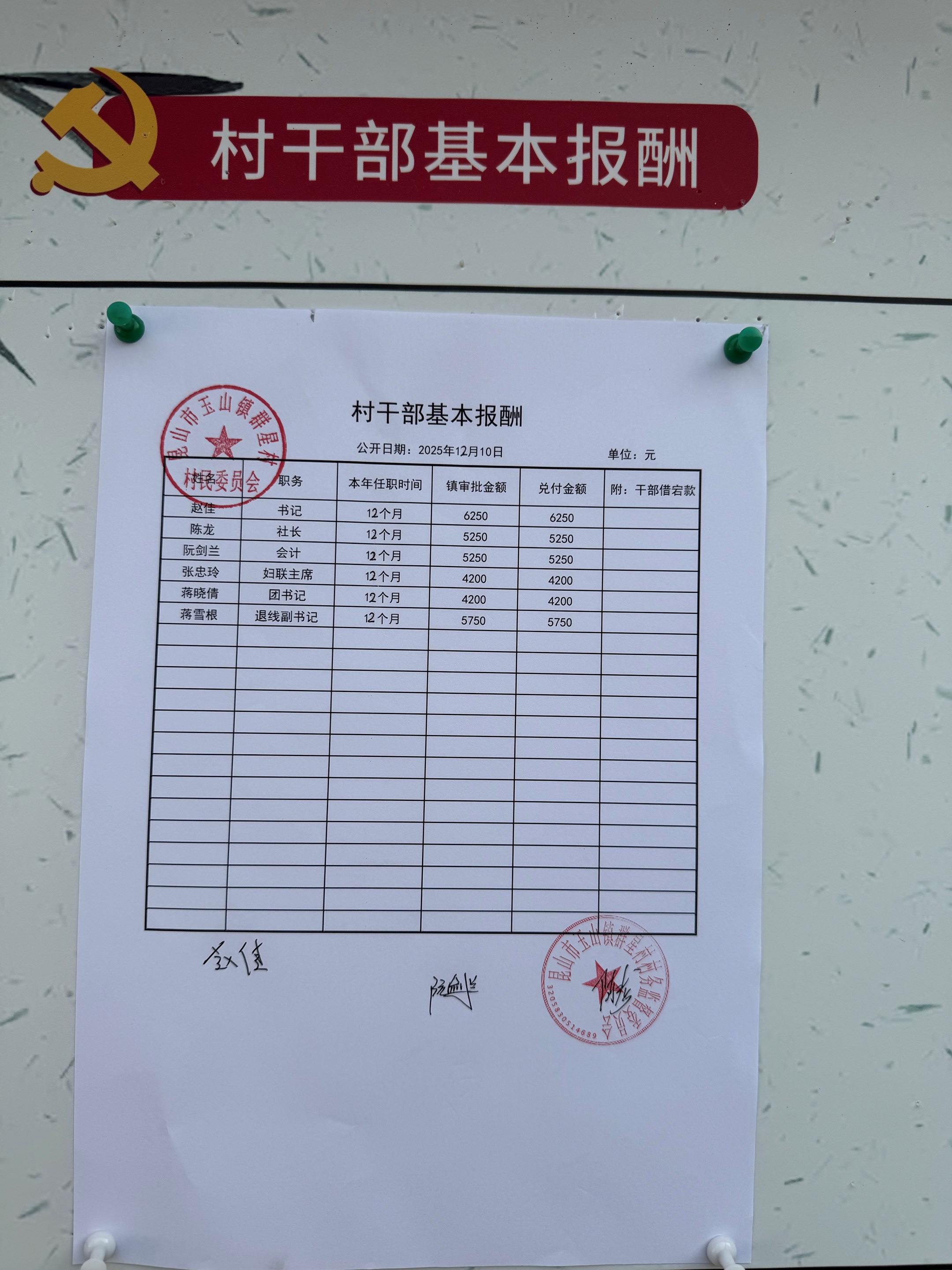 昆山高新区群星村2025年12月份公开村干部基本报酬信息公开图片