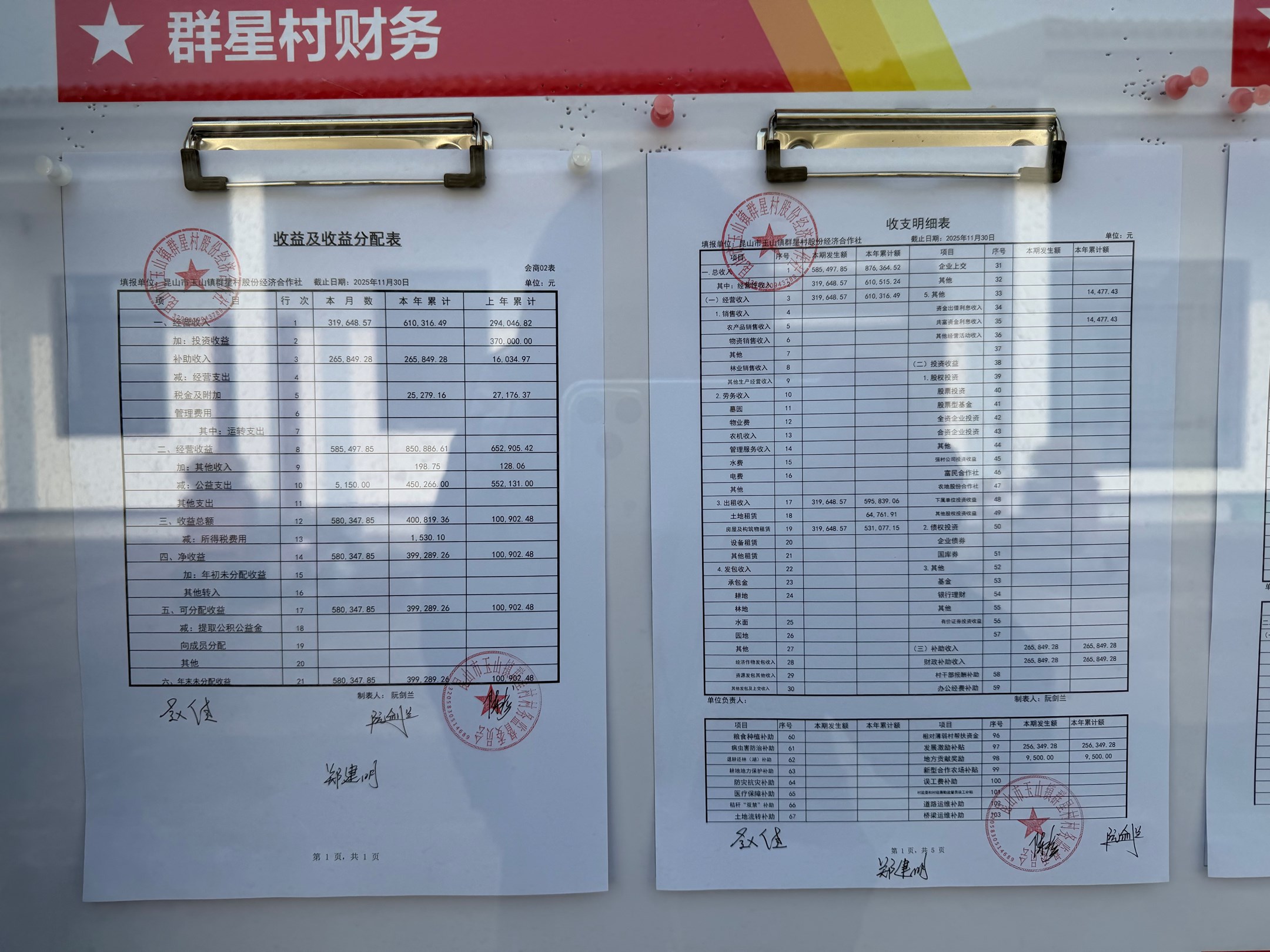 昆山高新区群星村2025年12月财务公开11月财务信息图片