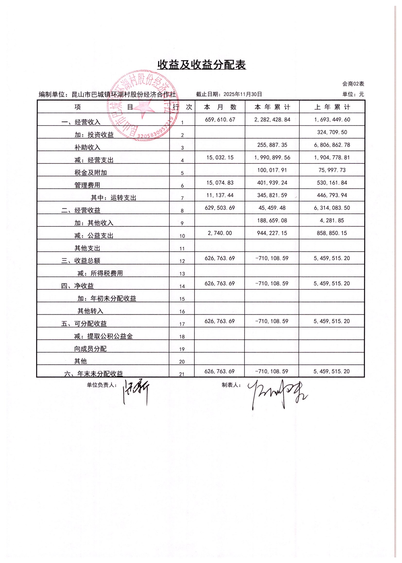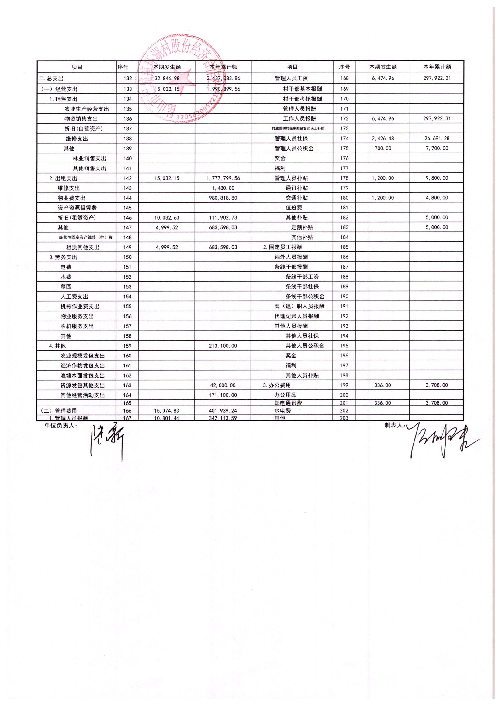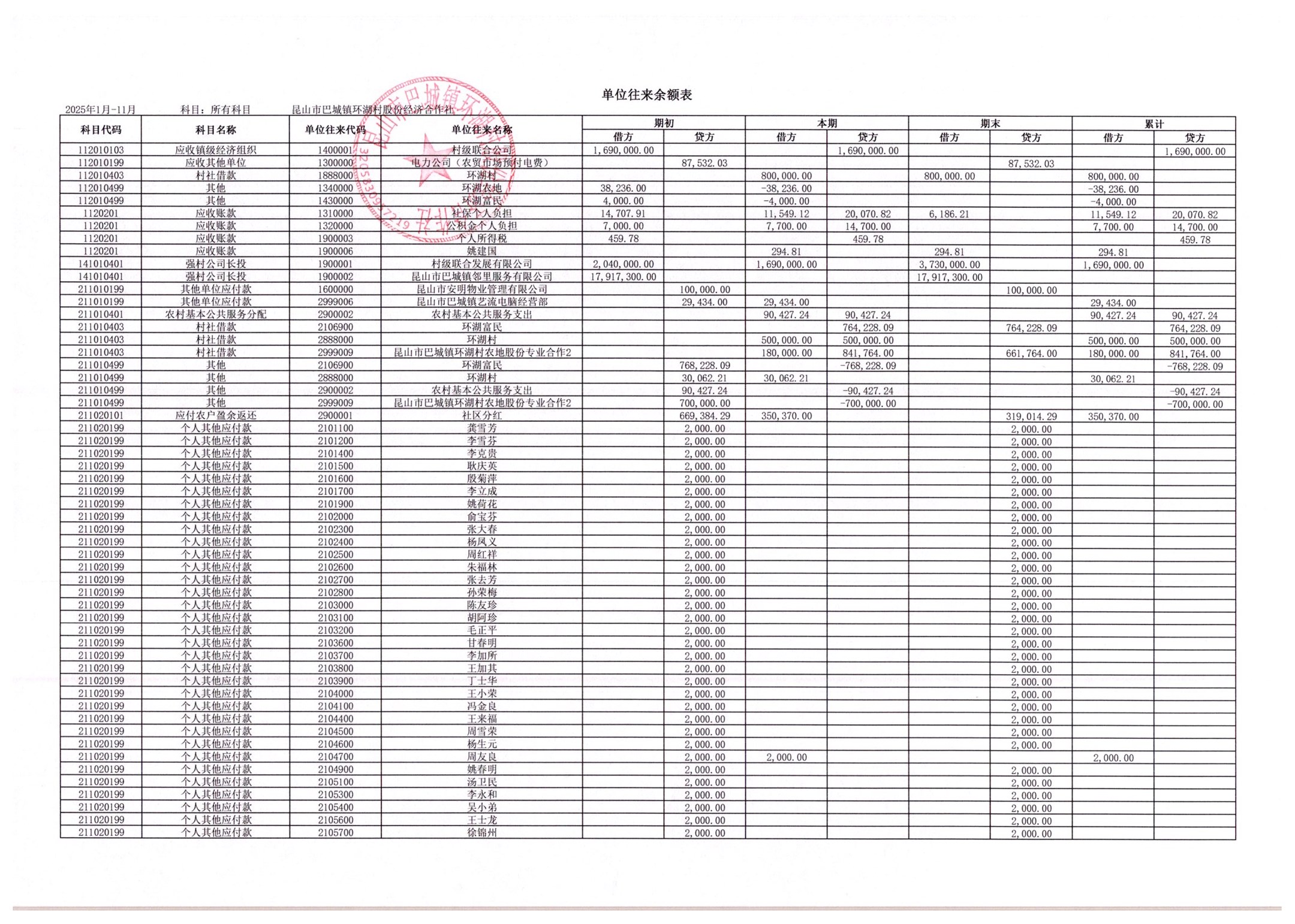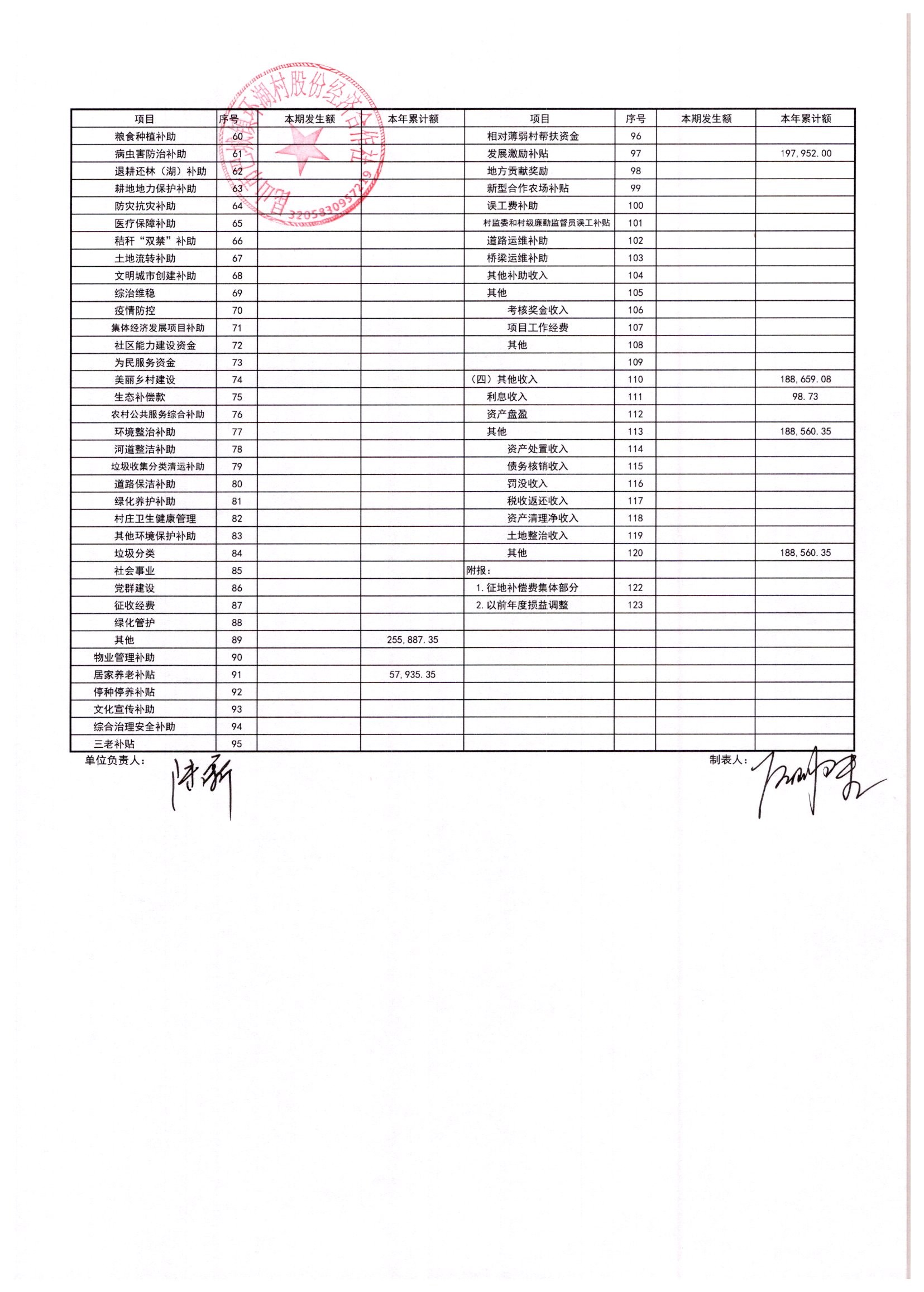 2025年11月环湖村股份经济合作社财务公开
