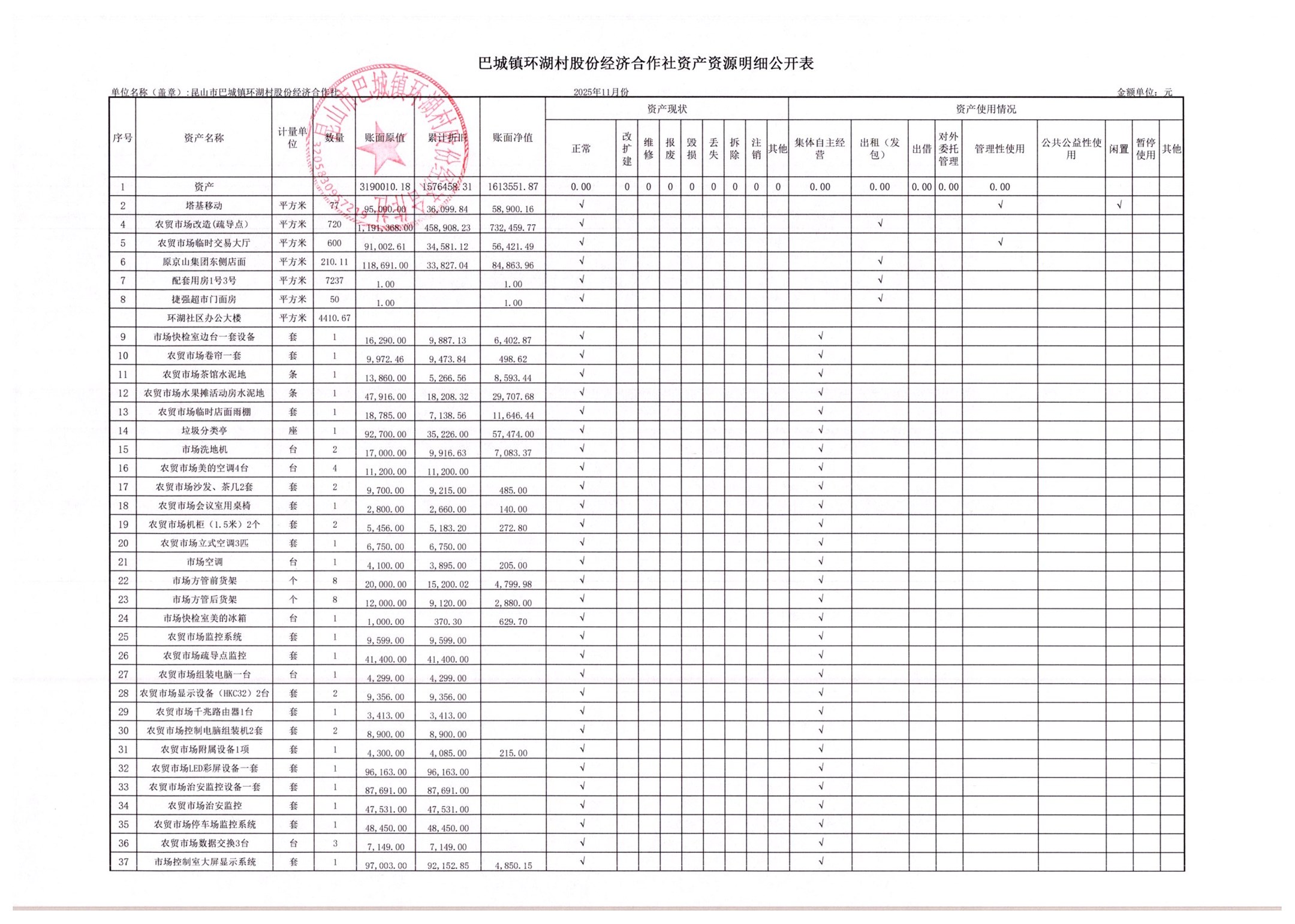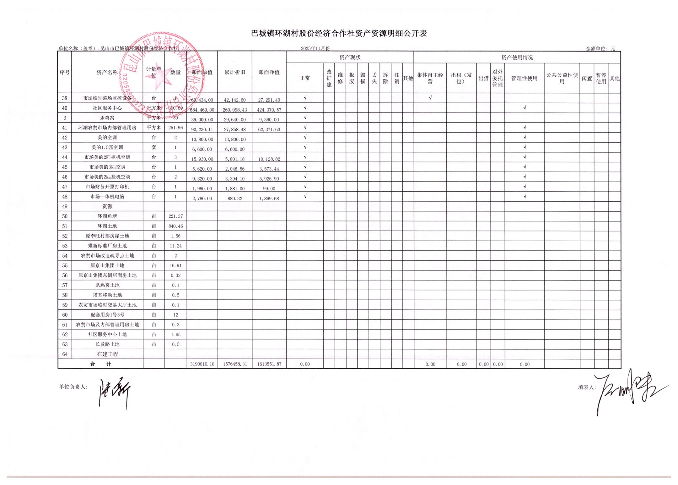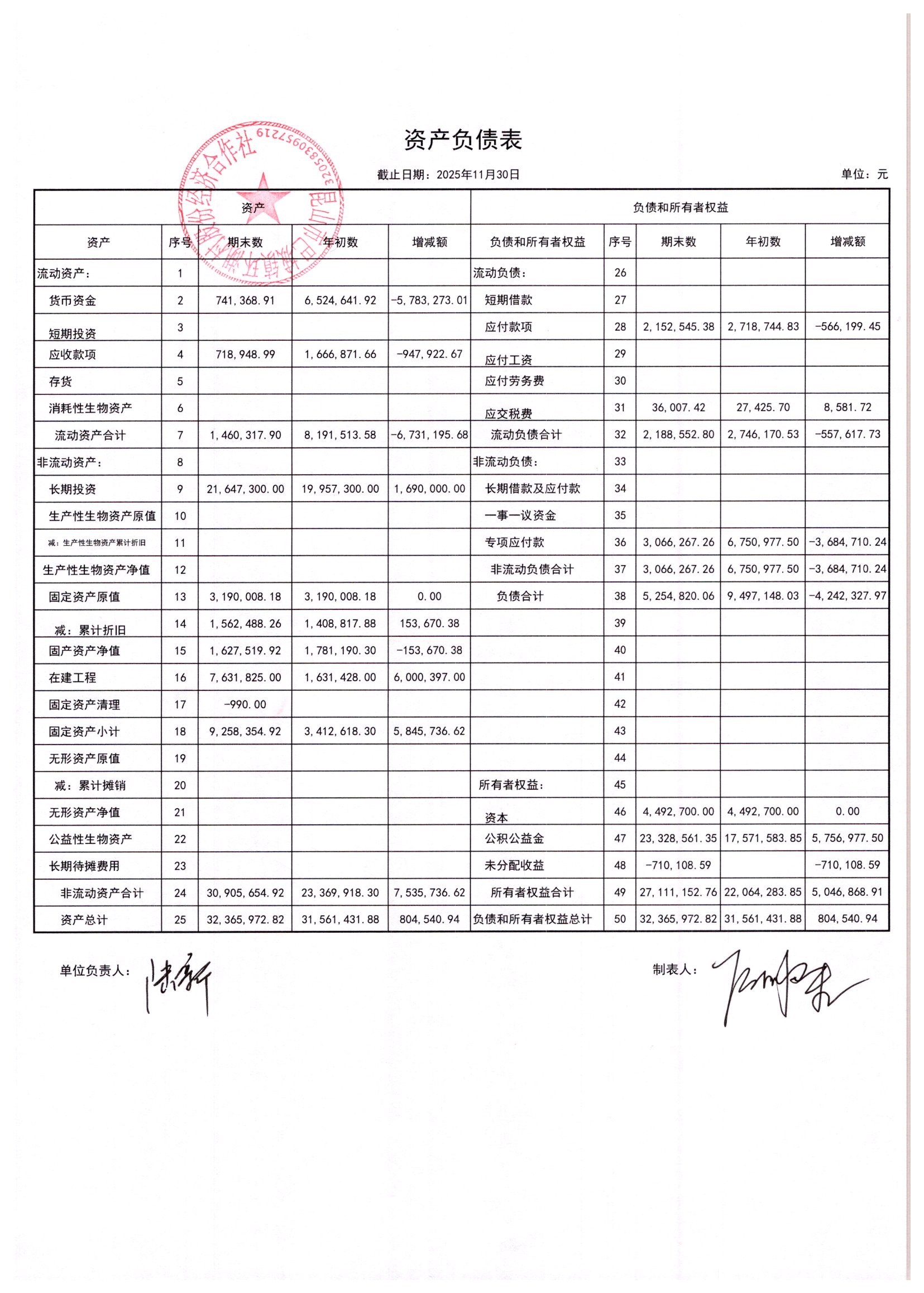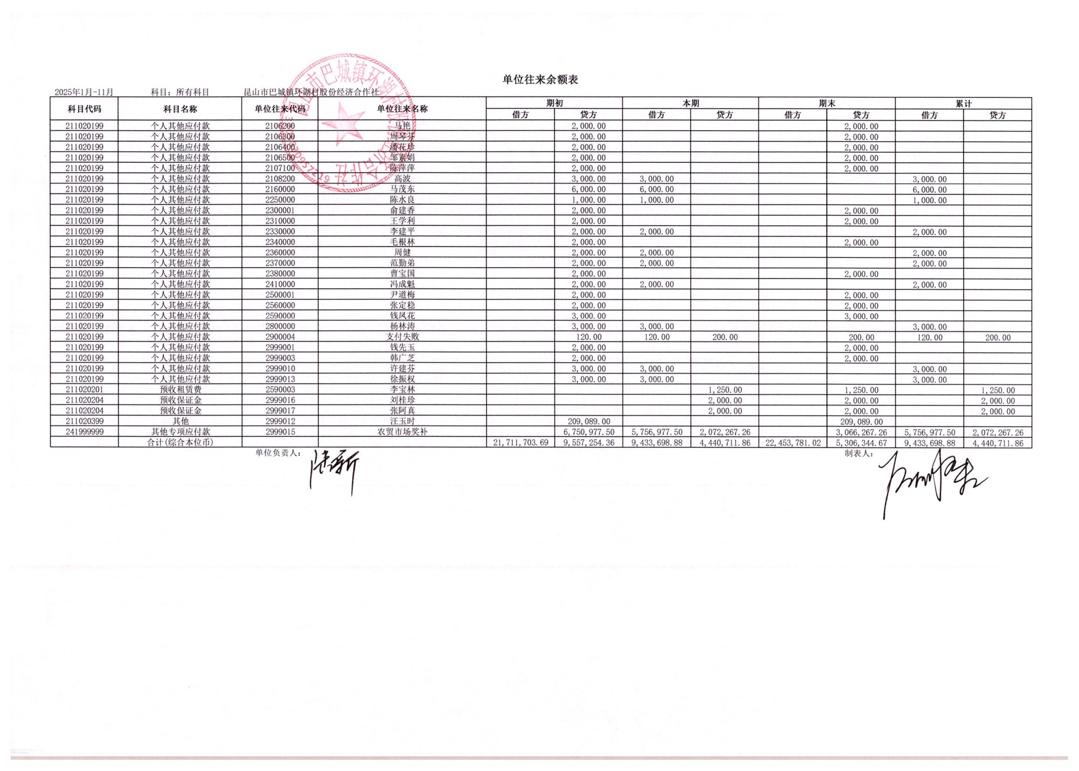 2025年11月环湖村股份经济合作社财务公开